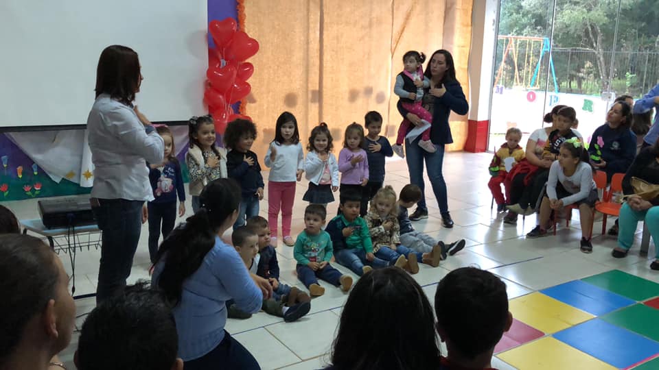 Na tarde de quinta-feira (09/05), a direção, professoras, funcionárias e as crianças receberam as mães para homenageá-las na EMEI Tia Braia. Os pequenos emocionaram suas mães com as homenagens prestadas e no final as presentearam com mimos.