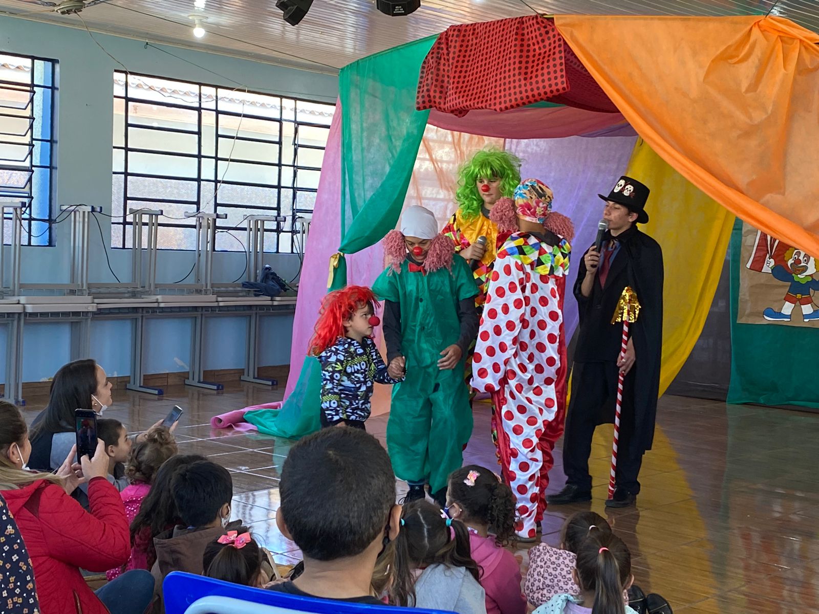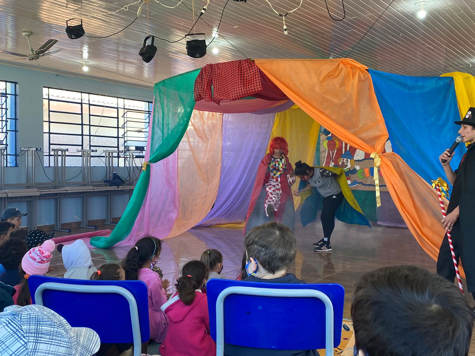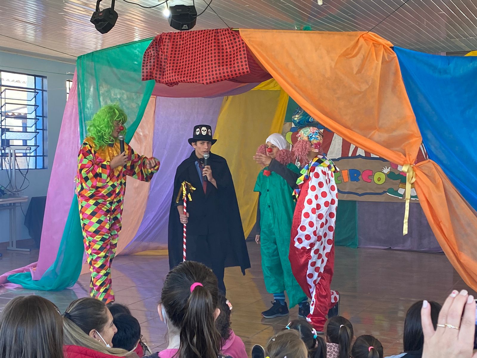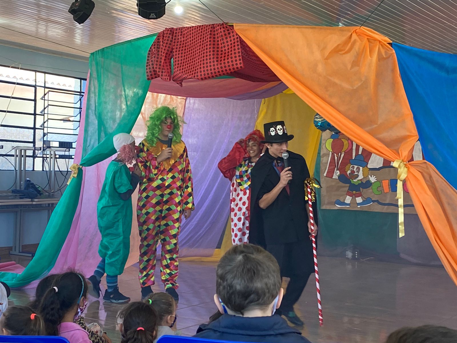 Nesta semana os estudantes do 8º Ano do Ensino Fundamental da EMEB Professor Tadeu Silveira, apresentaram o espetáculo “Circo Piruetas”, em alusão ao Dia do Circo – comemorado em 27 de março – para professores, colegas, autoridades locais, equipe da 23ª Coordenadoria Regional de Educação e estudantes de outras escolas.