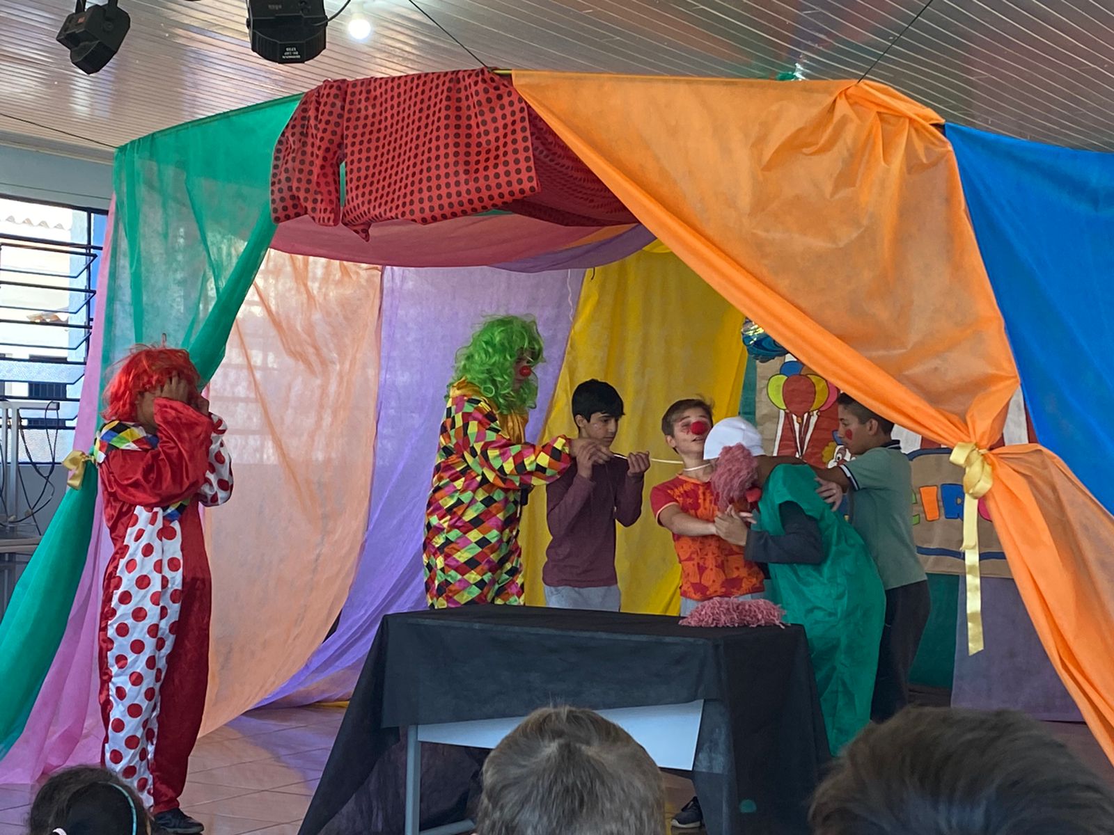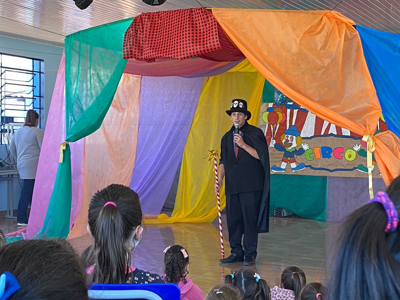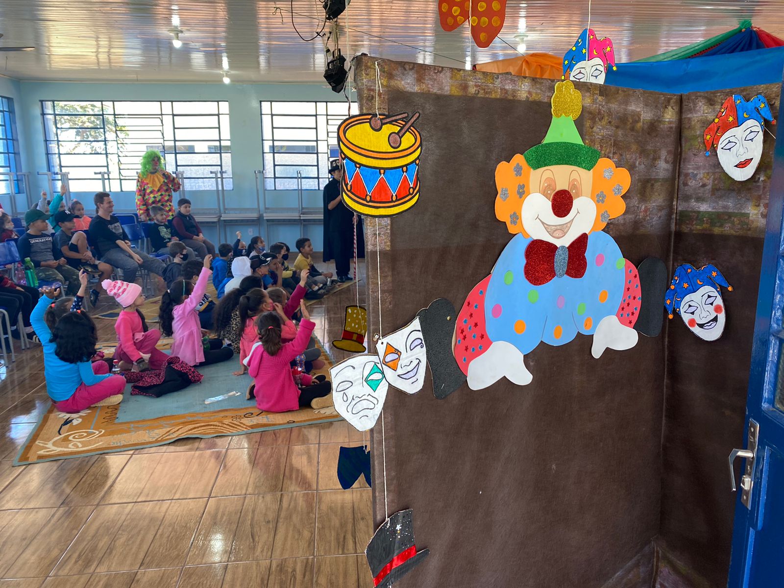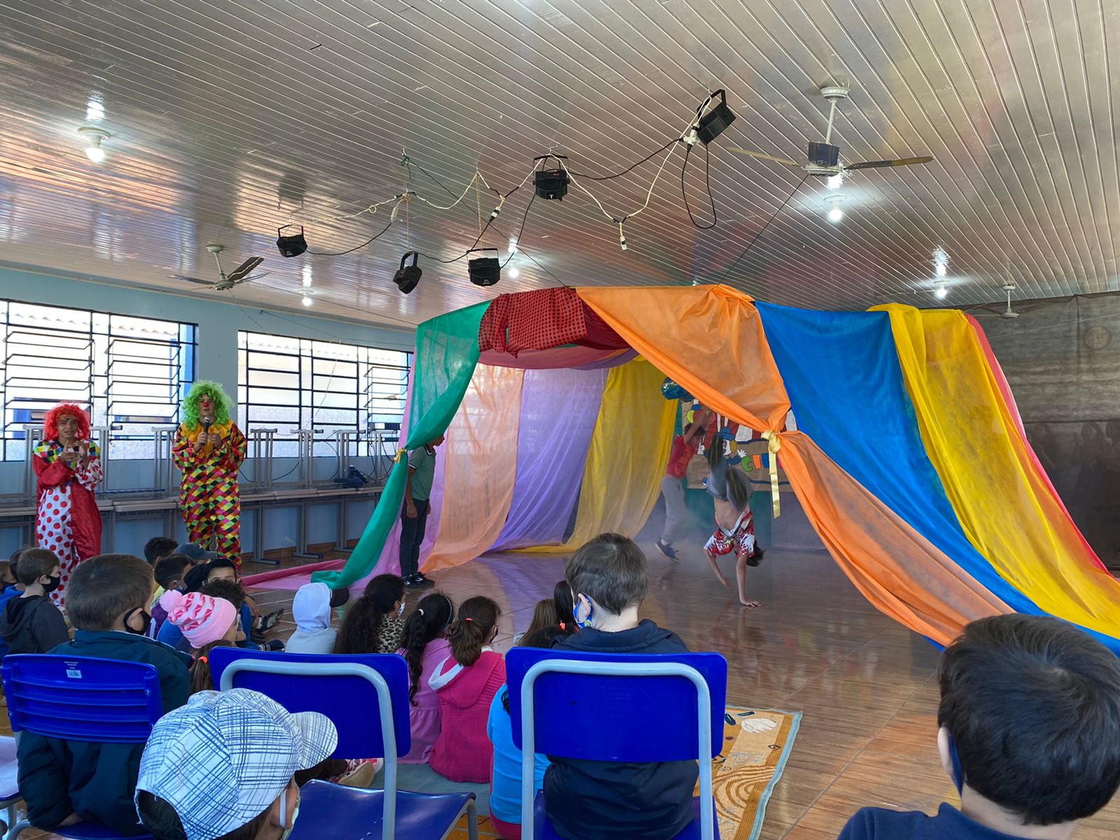 Nesta semana os estudantes do 8º Ano do Ensino Fundamental da EMEB Professor Tadeu Silveira, apresentaram o espetáculo “Circo Piruetas”, em alusão ao Dia do Circo – comemorado em 27 de março – para professores, colegas, autoridades locais, equipe da 23ª Coordenadoria Regional de Educação e estudantes de outras escolas.
