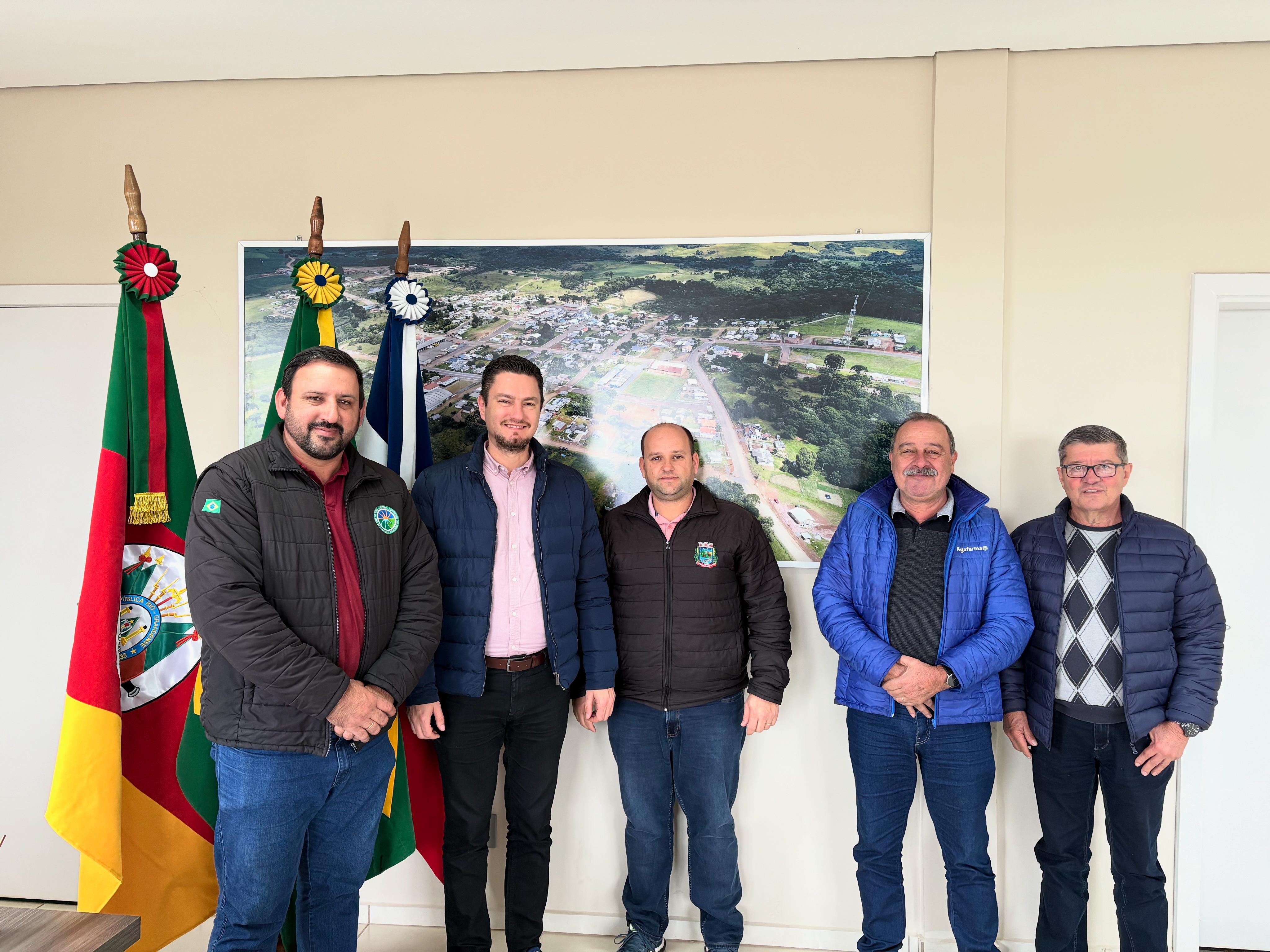 Nesta manhã, o Prefeito Municipal, José Robison Rodrigues Duarte, e o Secretário da Administração, Anderson de Jesus Costa, receberam em seu gabinete o ex-Presidente da FAMURS (Federação das Associações de Municípios do Rio Grande do Sul), Marcelo Arruda.
