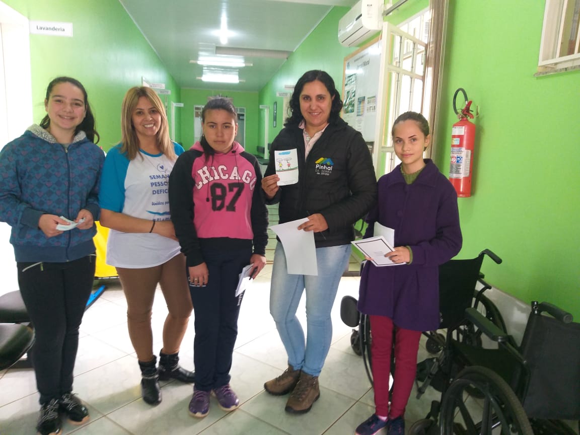 As atividades tiveram início na terça-feira (01/10), com palestras para os alunos da EEEM São Paulo de Tarso e EMEB Tadeu Silveira. Na ocasião o médico da Estratégia e Saúde da Família Sebastião Josino Rodrigues, as profissionais da APAE de Anita Garibaldi, psicóloga Juliana Silva, e pedagoga Rosimery Vieira Geherke, e a assistente social de Pinhal da Serra Cristina Costa, proferiram sobre a necessidade de inclusão sem distinção, falando sobre as dificuldades de acessibilidade e explicando os diversos tipos de deficiências, além do relato de vida do deficiente visual pinhalense Daniel Mendes.