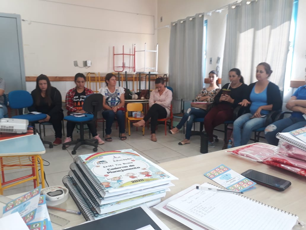 A retomada das atividades da EMEI Tia Braia foi marcada pela formação das professoras e monitoras na última terça-feira (04/02), ministrada pela professora Adriana Almeida em conjunto com a Coordenação Pedagógica, com o tema “Trabalhando com Projetos Pedagógicos na Educação Infantil”.