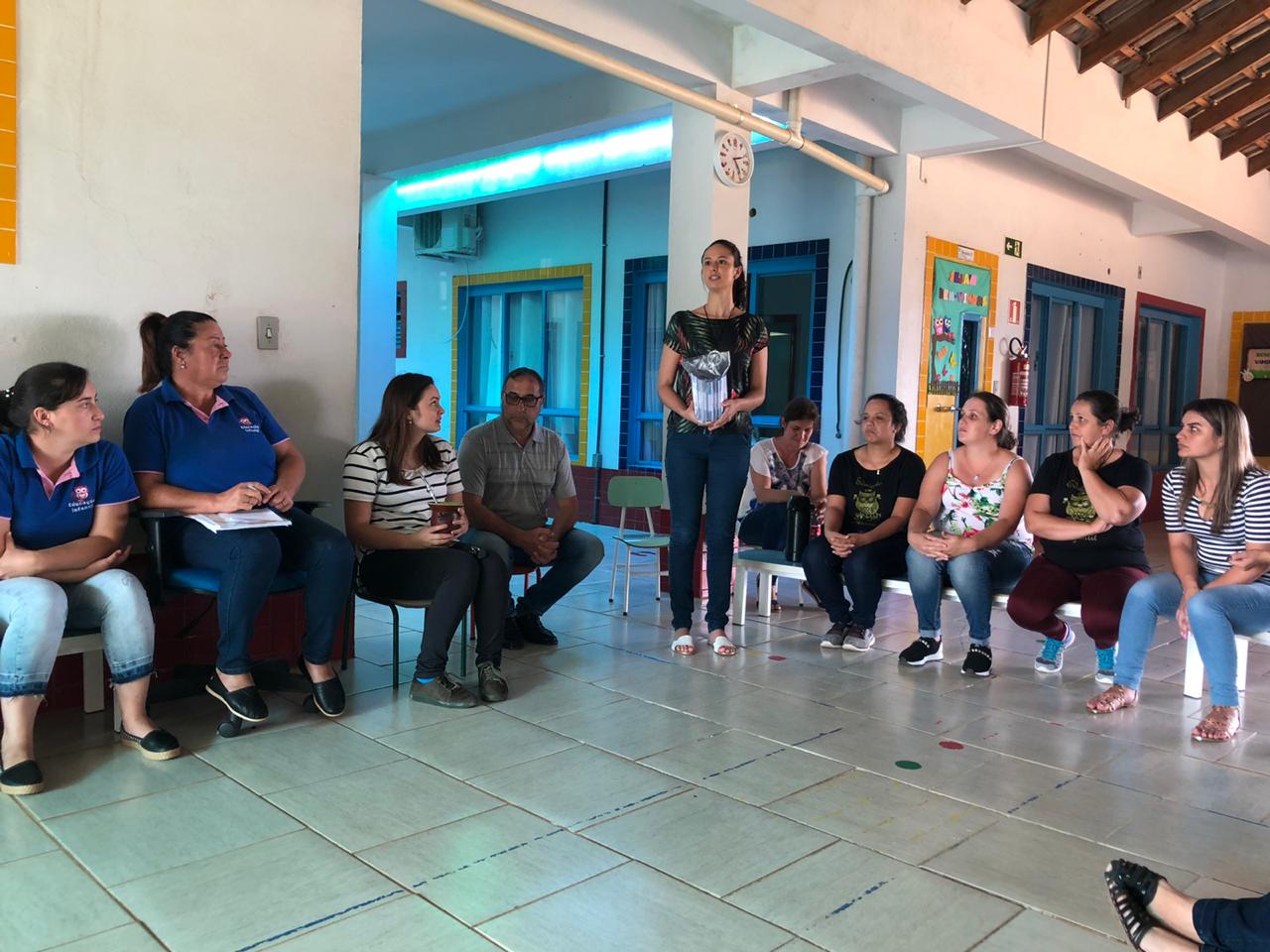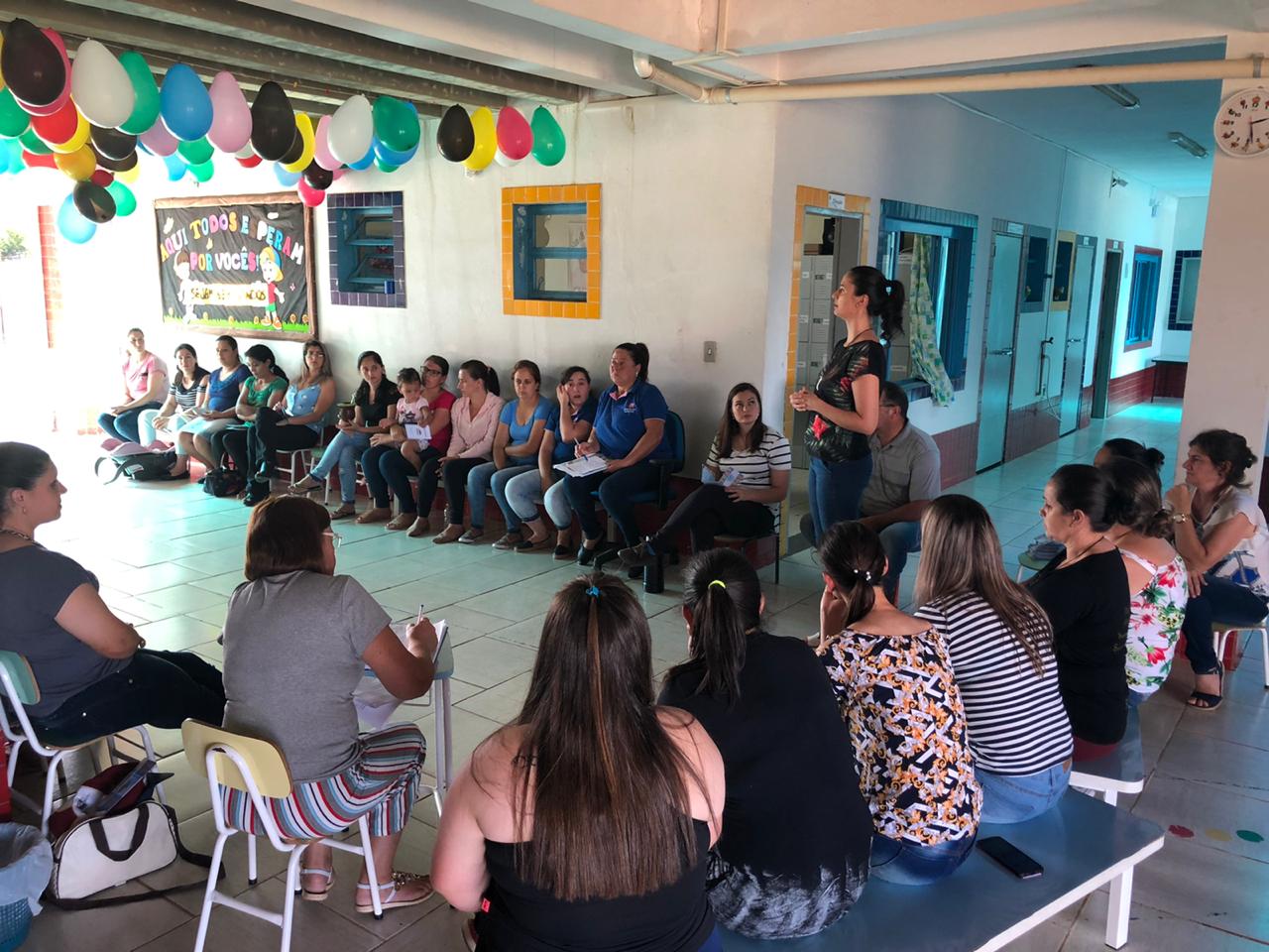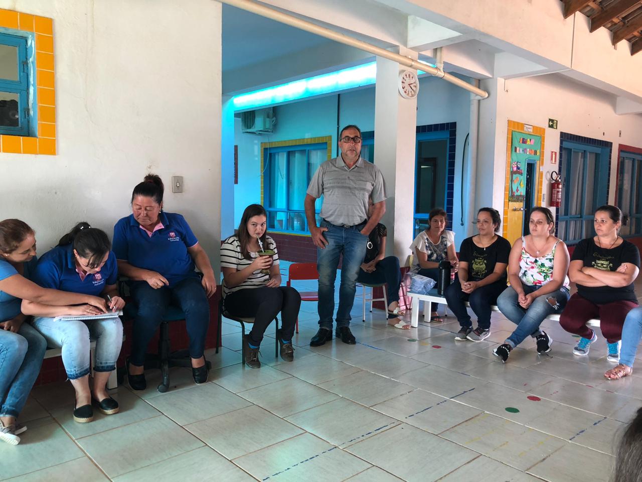 No período da tarde, os pais e responsáveis pelas crianças participaram da primeira reunião, organizada pela Secretaria de Educação e pela Equipe Diretiva da escola, onde puderam conversar com as professoras e monitoras das turmas.