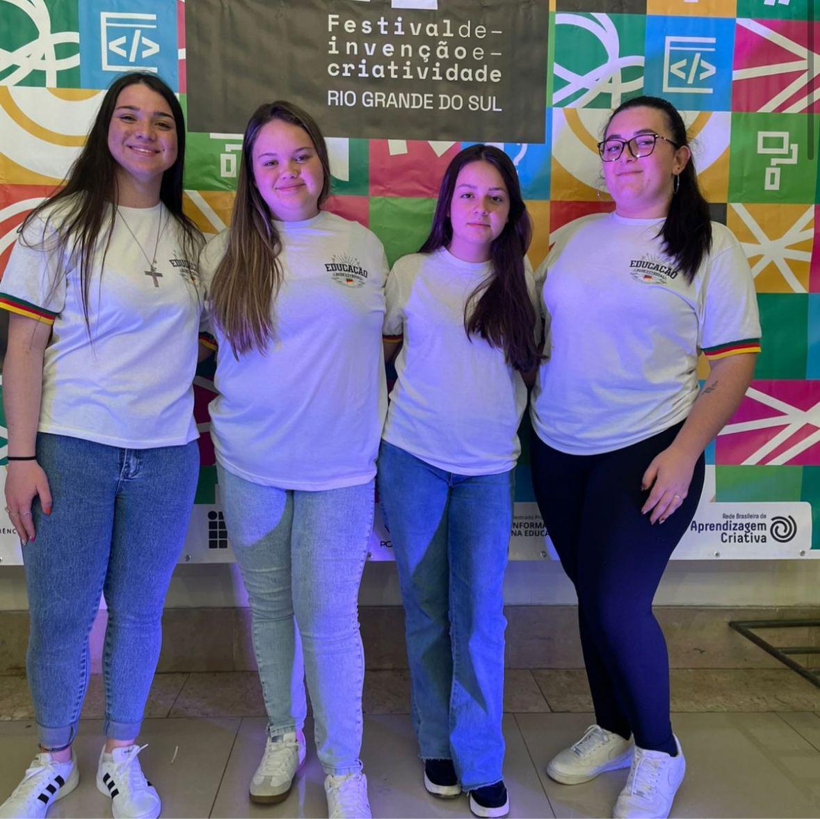 Hoje, alunas da Escola Estadual de Ensino Médio estarão representando a instituição em dois projetos no FIC - Festival de Inovação e Criatividade, em Porto Alegre. Os projetos selecionados são “Cultivando um Futuro Melhor”, desenvolvido pela turma 191 sob orientação das professoras Elisiane e Giovana, e “ReCiclaGames”, orientado pelas professoras Noeli Albuquerque e Giovana Picolo.