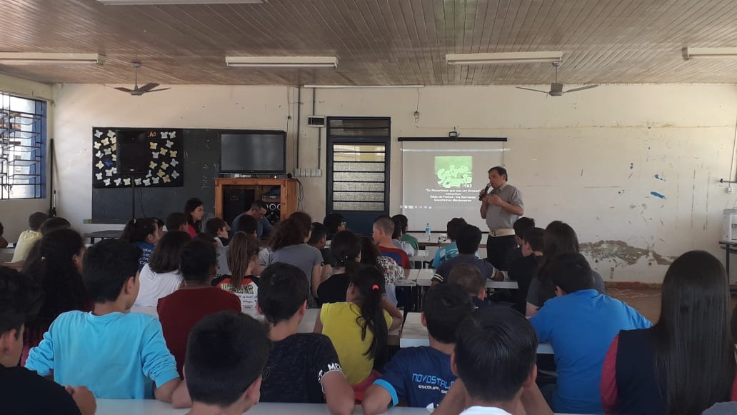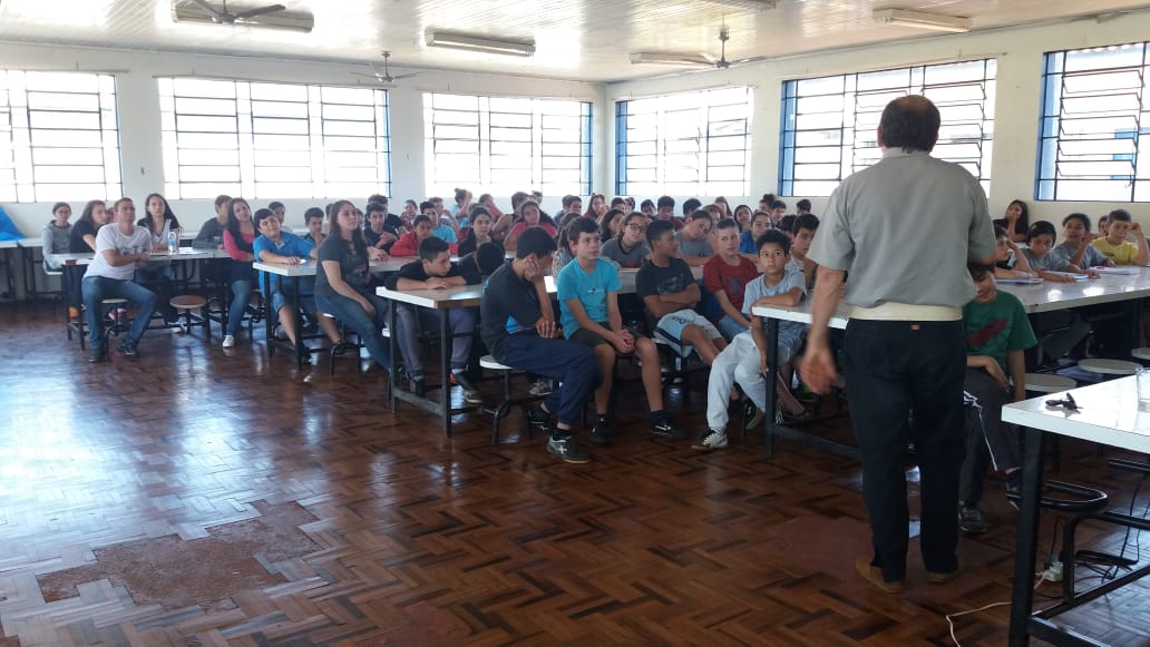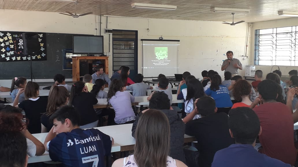 Na tarde de segunda-feira (09/09), a Escola Professor Tadeu Silveira recebeu o professor e escritor Ajadil Costa com a palestra “A Origem da Semana Farroupilha no Rio Grande do Sul”, tendo como público os alunos dos Anos Finais da escola.