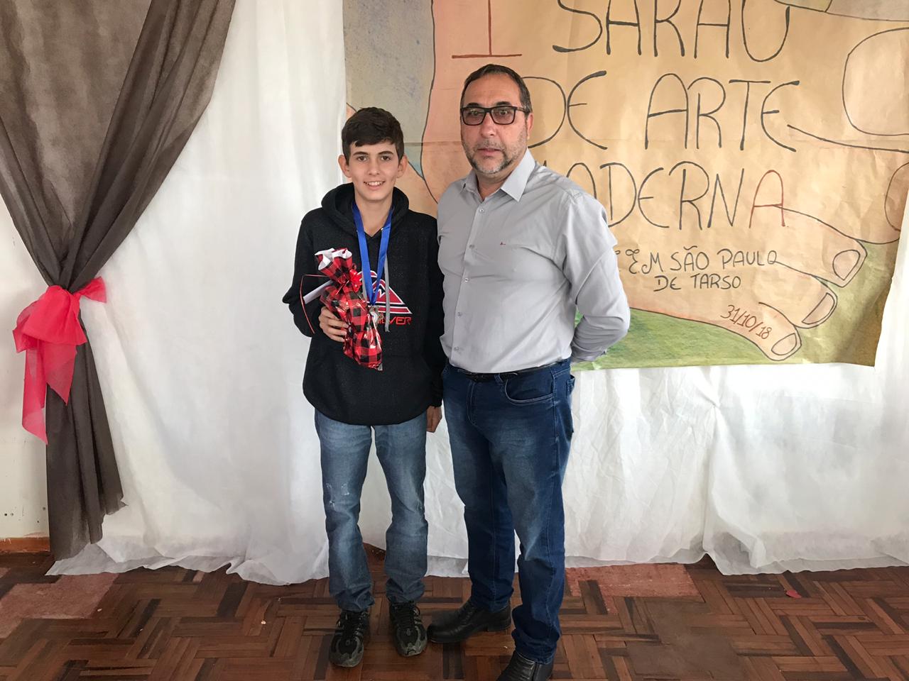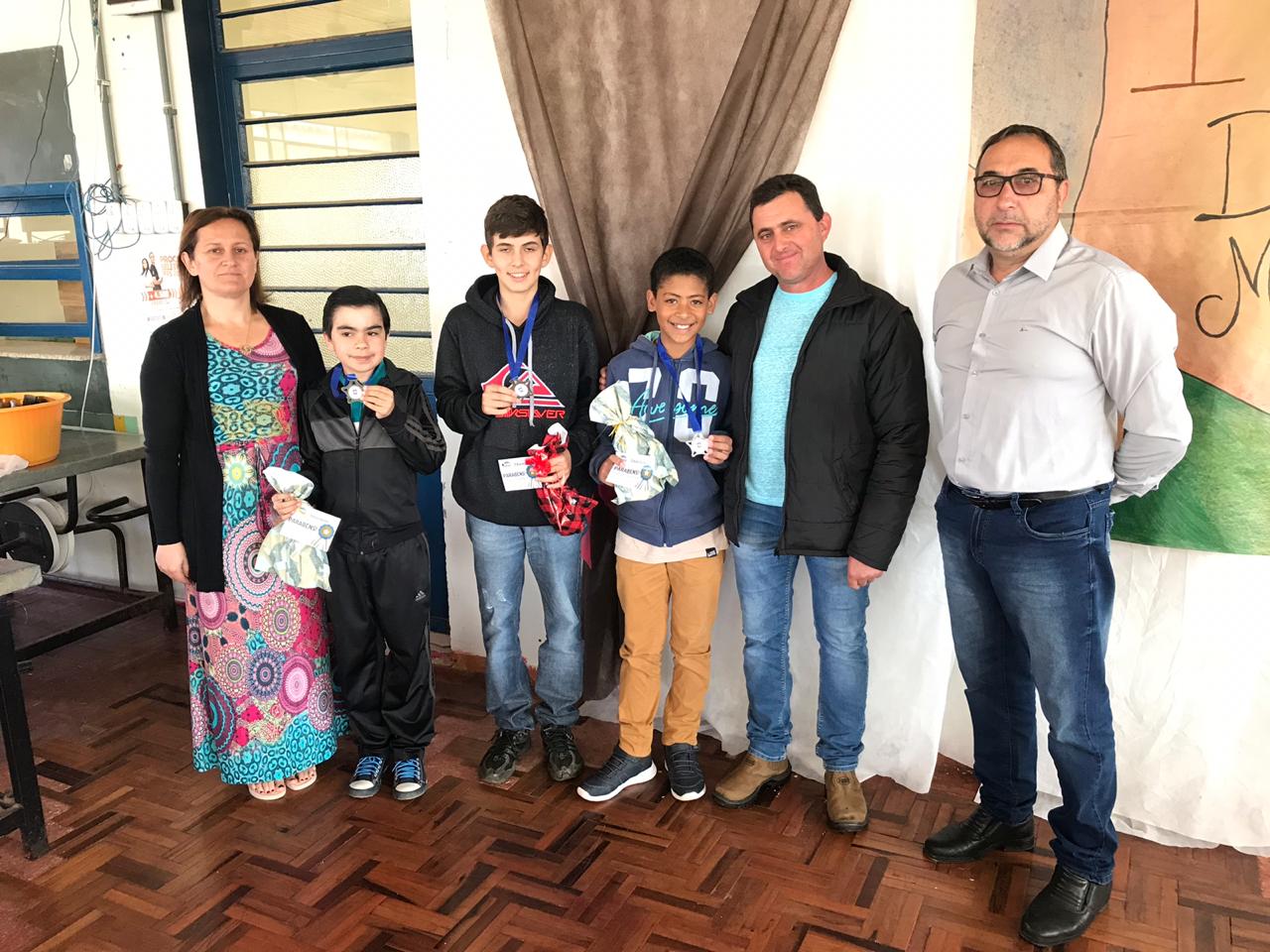Três alunos da Escola Municipal Professor Tadeu Silveira foram destaque e receberam, além do certificado de participação, medalhas da UCS e um brinde oferecido pela Secretaria Municipal de Educação. Os premiados foram: Kaynan Almeida Rachid, medalha de bronze, nas provas de 6º Ano, Pitágoras Costa Alves, medalha de prata na prova de 6º Ano e Vinícius Teixeira Birck, medalha de bronze na prova de 8º Ano.