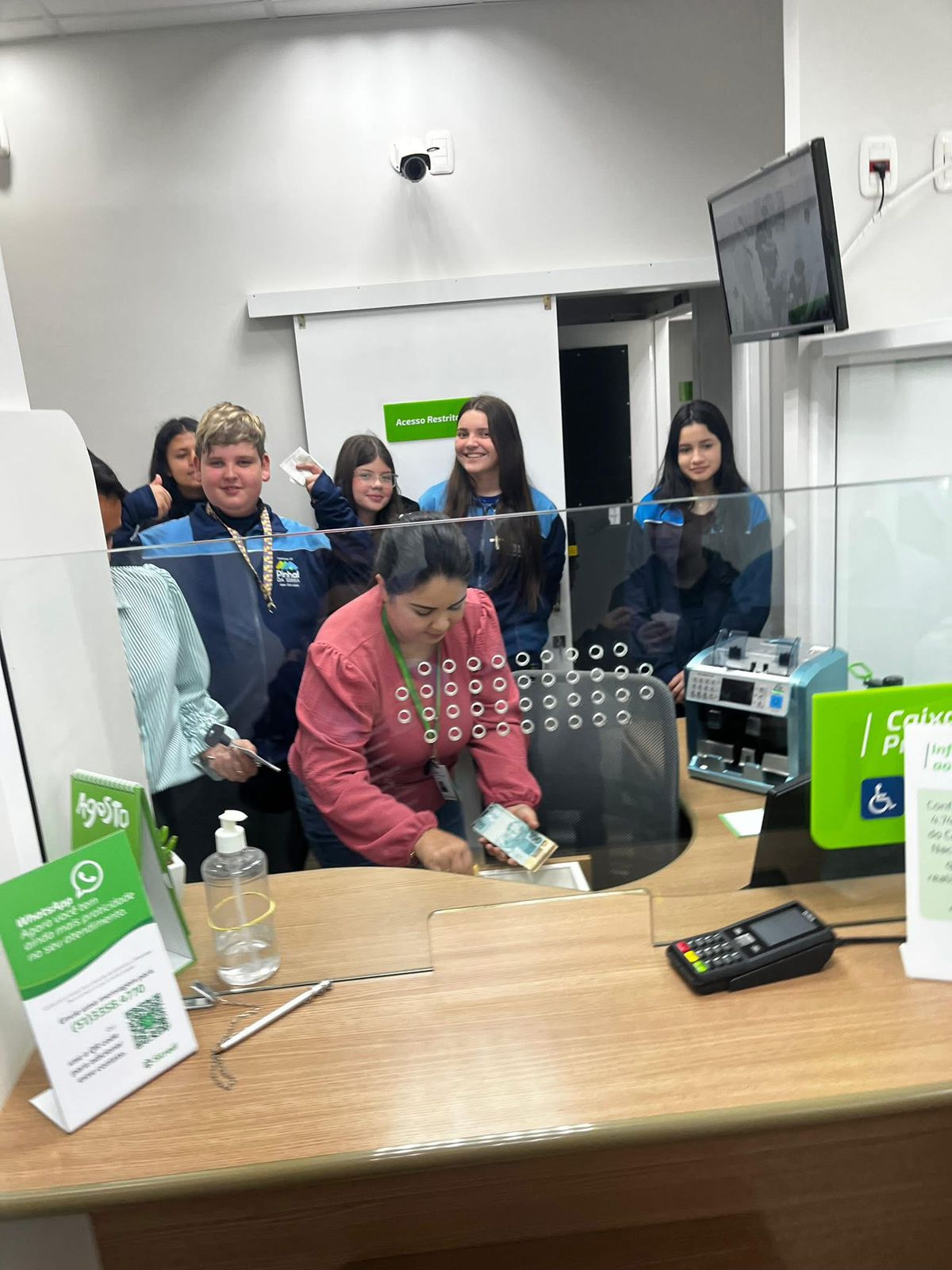 A visita despertou curiosidade e entusiasmo entre os estudantes, que puderam fazer perguntas, interagir com os colaboradores e entender melhor como o dinheiro circula e é administrado dentro de uma instituição financeira.