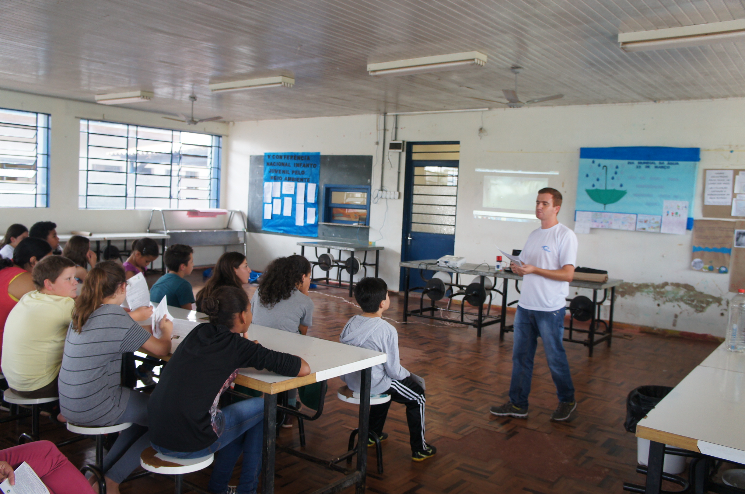 Na quinta-feira (29/03) foi realizada a V Conferência Nacional Infantojuvenil pelo Meio Ambiente (CNIJMA) no salão de atos da Escola São Paulo de Tarso. O tema deste ano é " Vamos Cuidar do Brasil, Cuidando das Águas".