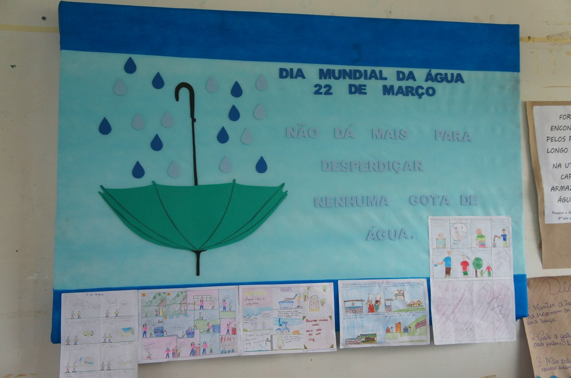 Durante o mês de março, alunos da EMEB Professor Tadeu Silveira desenvolveram trabalhos e pesquisas voltadas ao meio ambiente e a água. Foram realizadas palestras com profissionais da Emater e da Vigilância Sanitária do Município, que trouxeram algumas informações sobre a conscientização no uso da água.