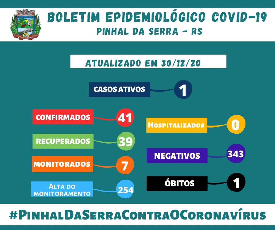 Atualização do boletim epidemiológico na data de hoje - 30/12/2020.