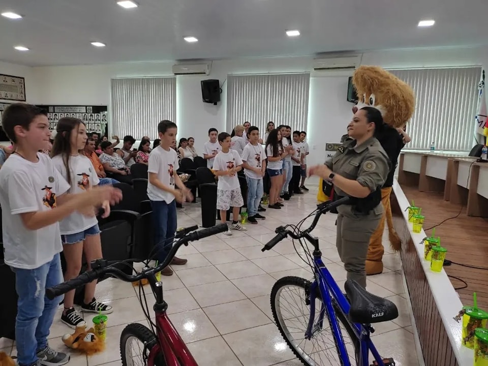 Durante a formatura foram entregues os certificados e brindes aos formandos e premiadas as duas melhores redações com bicicletas, sendo os ganhadores Kauany Gobetti e Richard Ryan Lima dos Santos.