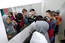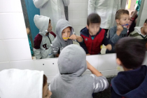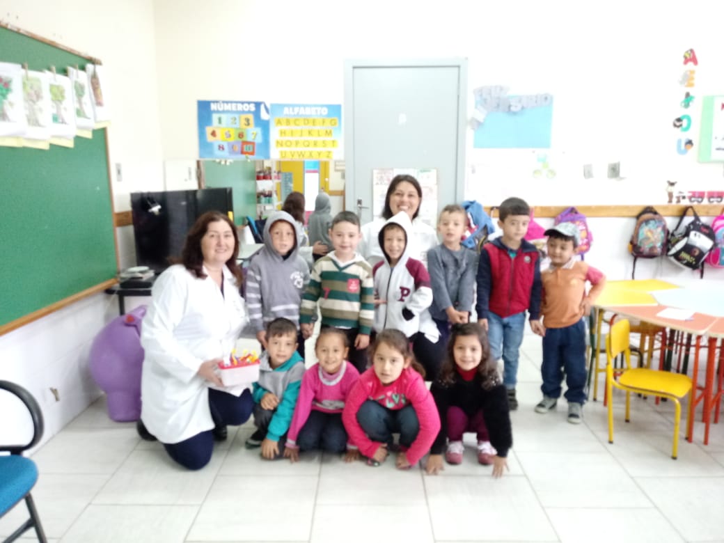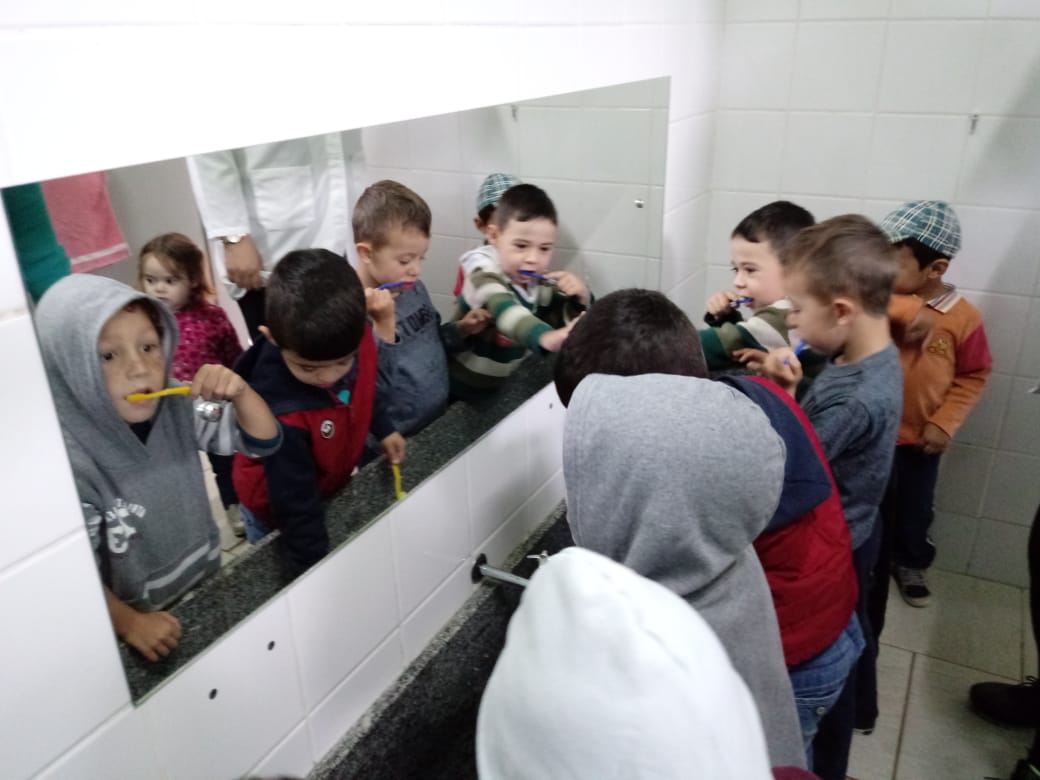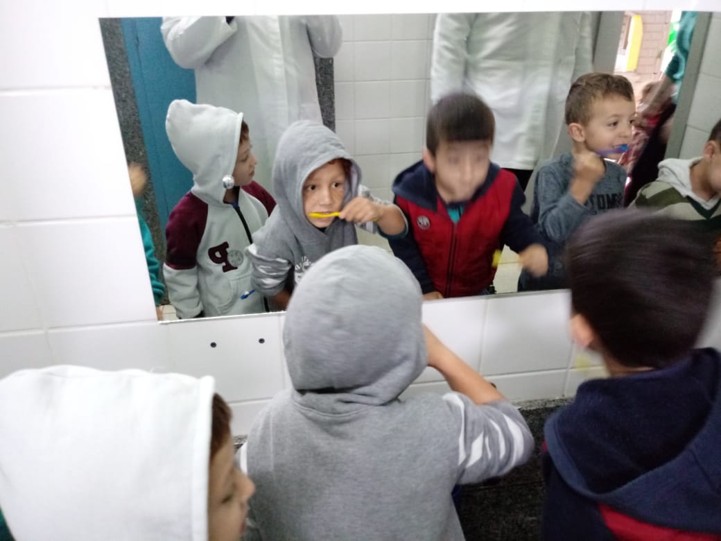 Diariamente as professoras acompanham as escovações e um dia da semana tem a supervisão das profissionais da saúde, ajudando dessa forma na prevenção de doenças bucais, como por exemplo, a cárie.