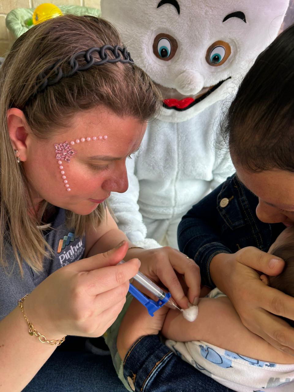 Durante todo o dia, as crianças desfrutaram de brinquedos infláveis, doces e brindes, além de garantir a proteção da saúde através da vacinação.