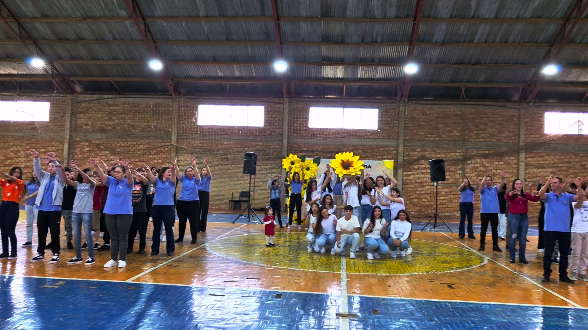 A apresentação dos alunos dos anos finais da EMEB Professor Tadeu Silveira foi um destaque, com uma emocionante apresentação de canto e coreografia ao som da música "Girassol". Professores, estagiários e monitores se uniram aos alunos, criando um momento especial.
