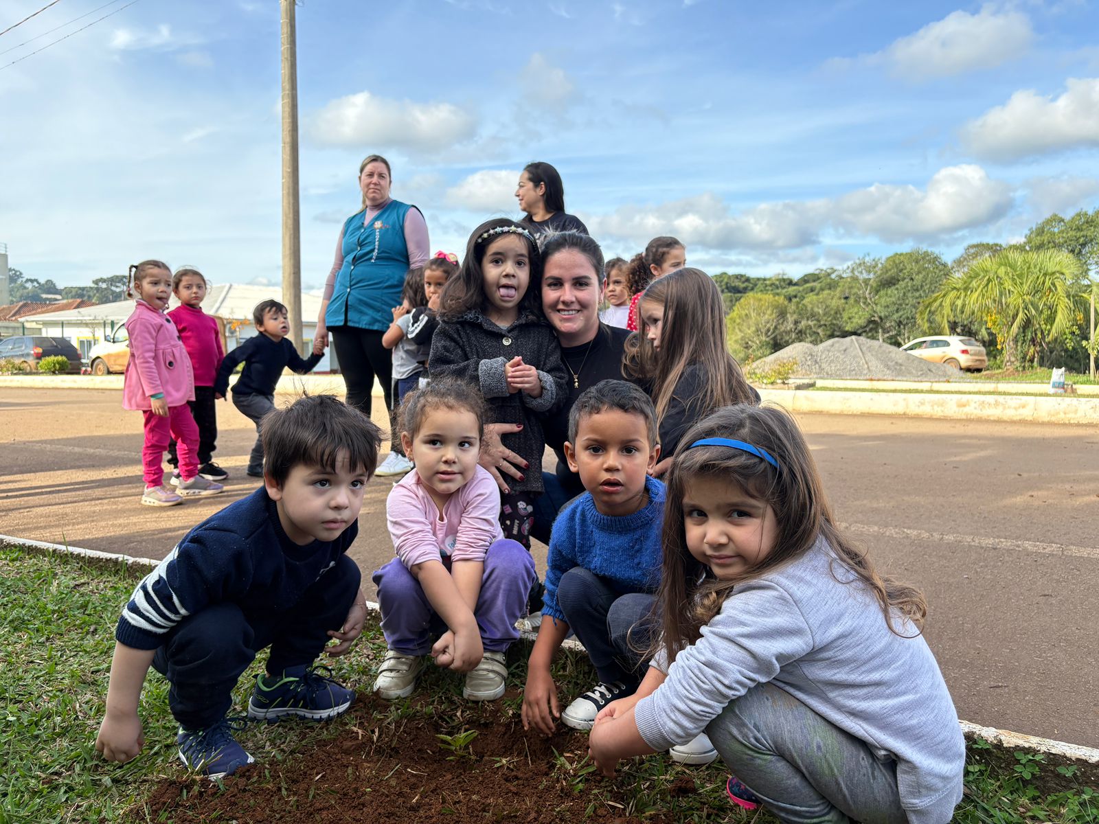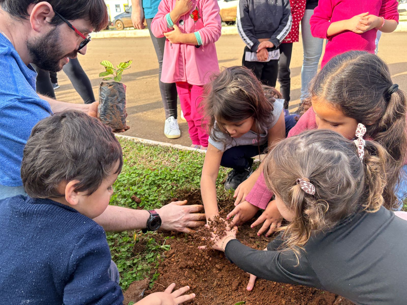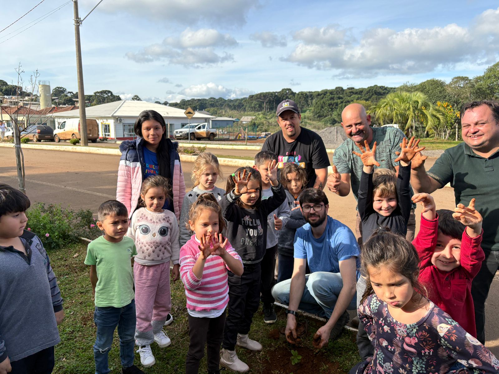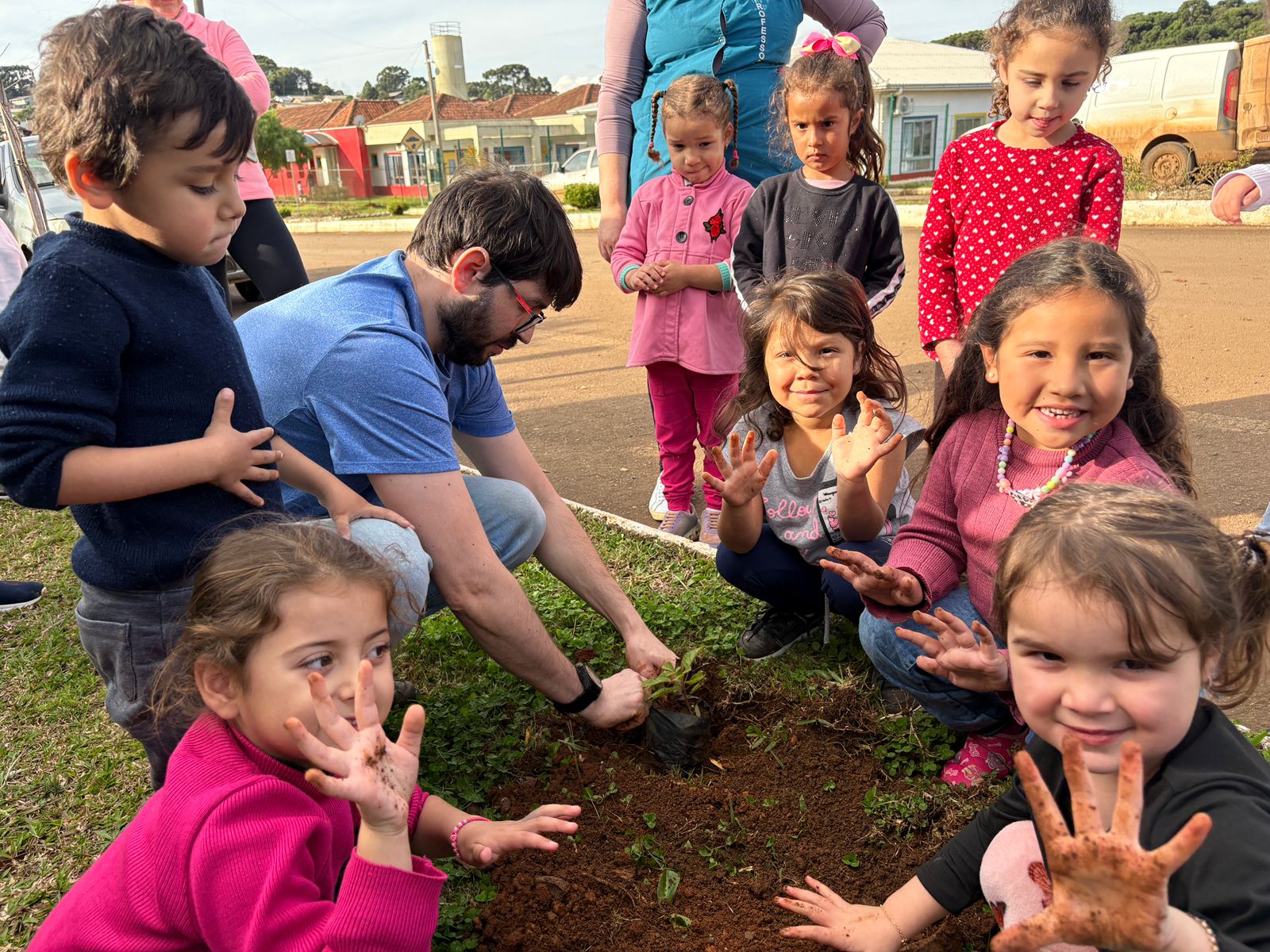 A ação contou com a participação da Secretária de Educação, Alessandra Gonçalves da Costa, do secretário de Agricultura, Paulo Claudemir Duarte, do fiscal ambiental Giovane da Rosa e do analista ambiental Gelson Neto, que ofereceram apoio e orientação às crianças durante as atividades. Os alunos da EMEB Professor Tadeu Silveira e da EMEI Tia Braia foram os principais protagonistas da ação, realizando o plantio de árvores nativas e ornamentais na praça municipal e em canteiros próximos a creche.