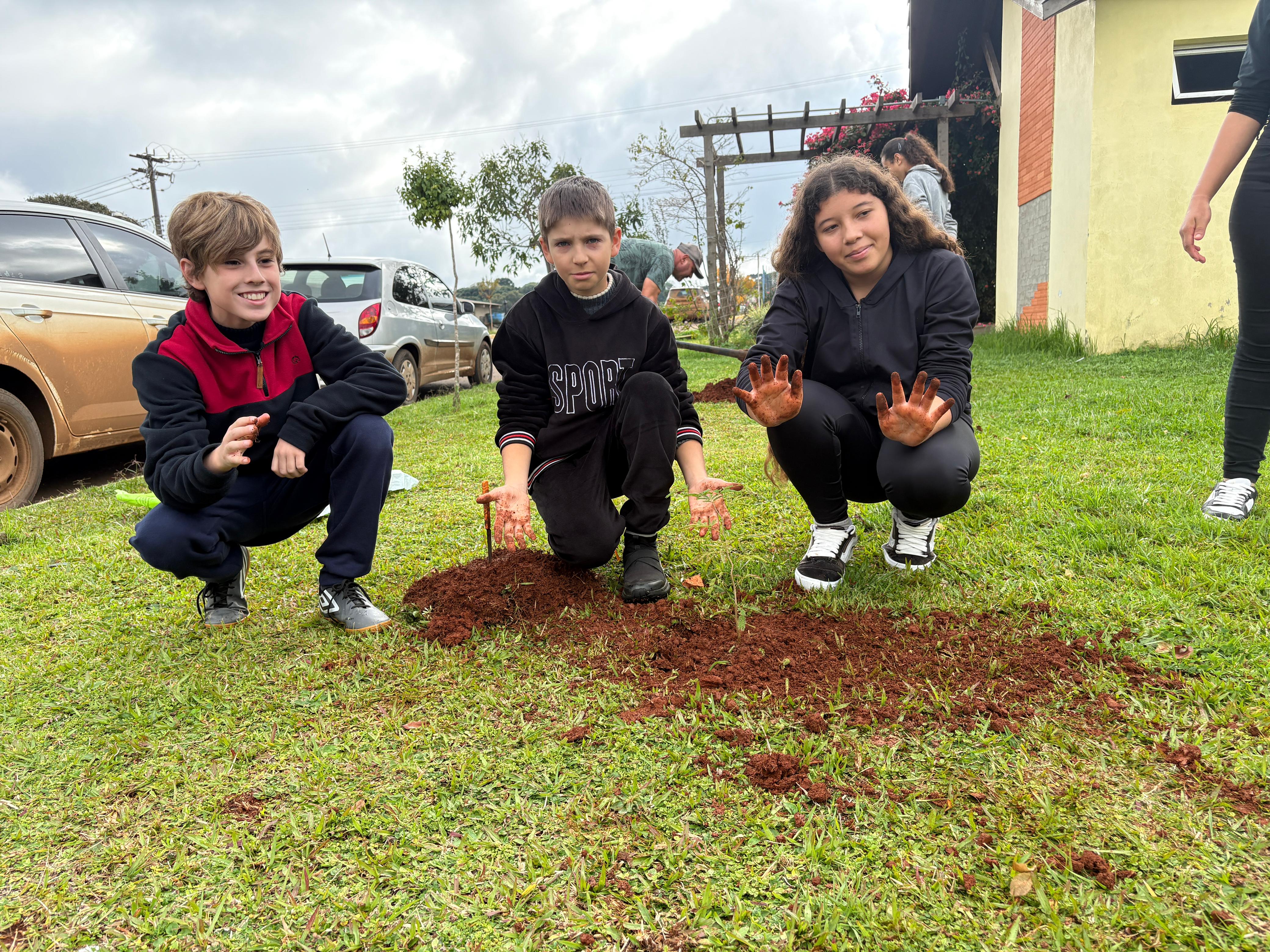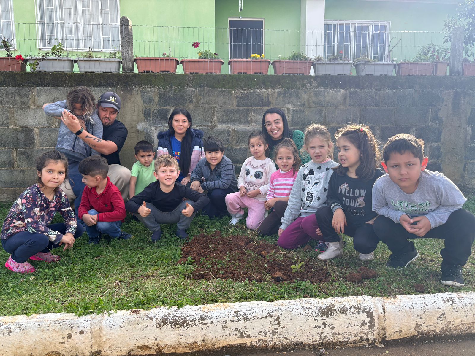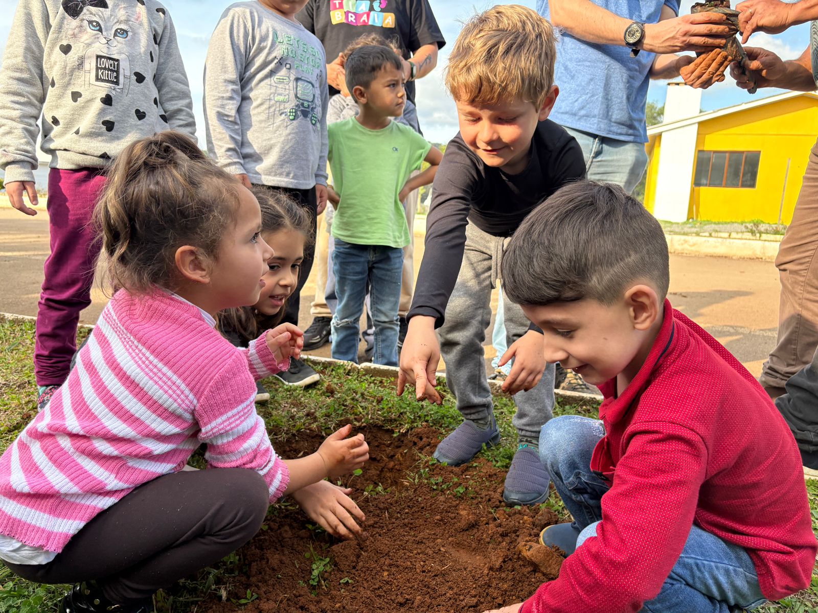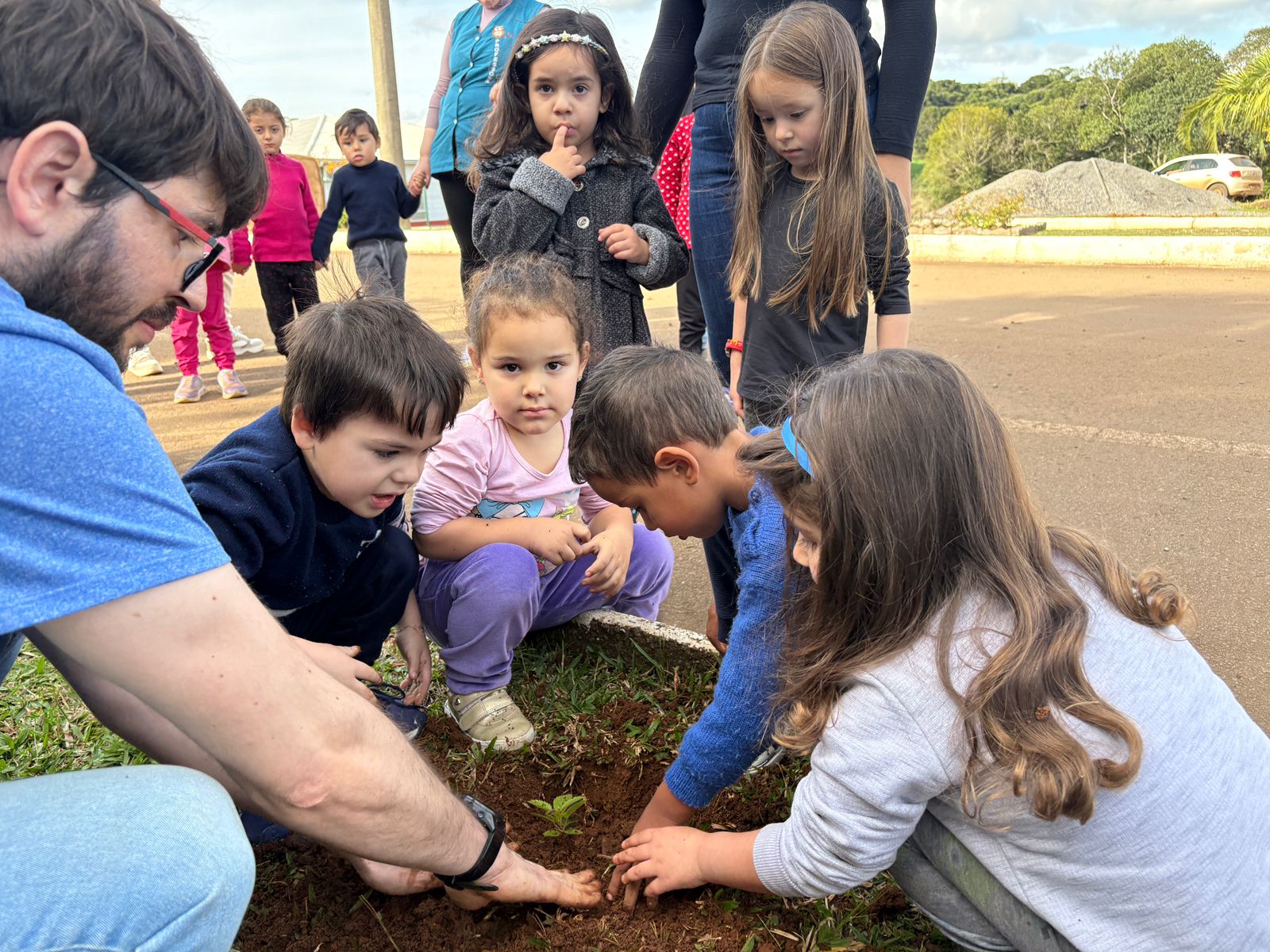 A ação contou com a participação da Secretária de Educação, Alessandra Gonçalves da Costa, do secretário de Agricultura, Paulo Claudemir Duarte, do fiscal ambiental Giovane da Rosa e do analista ambiental Gelson Neto, que ofereceram apoio e orientação às crianças durante as atividades. Os alunos da EMEB Professor Tadeu Silveira e da EMEI Tia Braia foram os principais protagonistas da ação, realizando o plantio de árvores nativas e ornamentais na praça municipal e em canteiros próximos a creche.