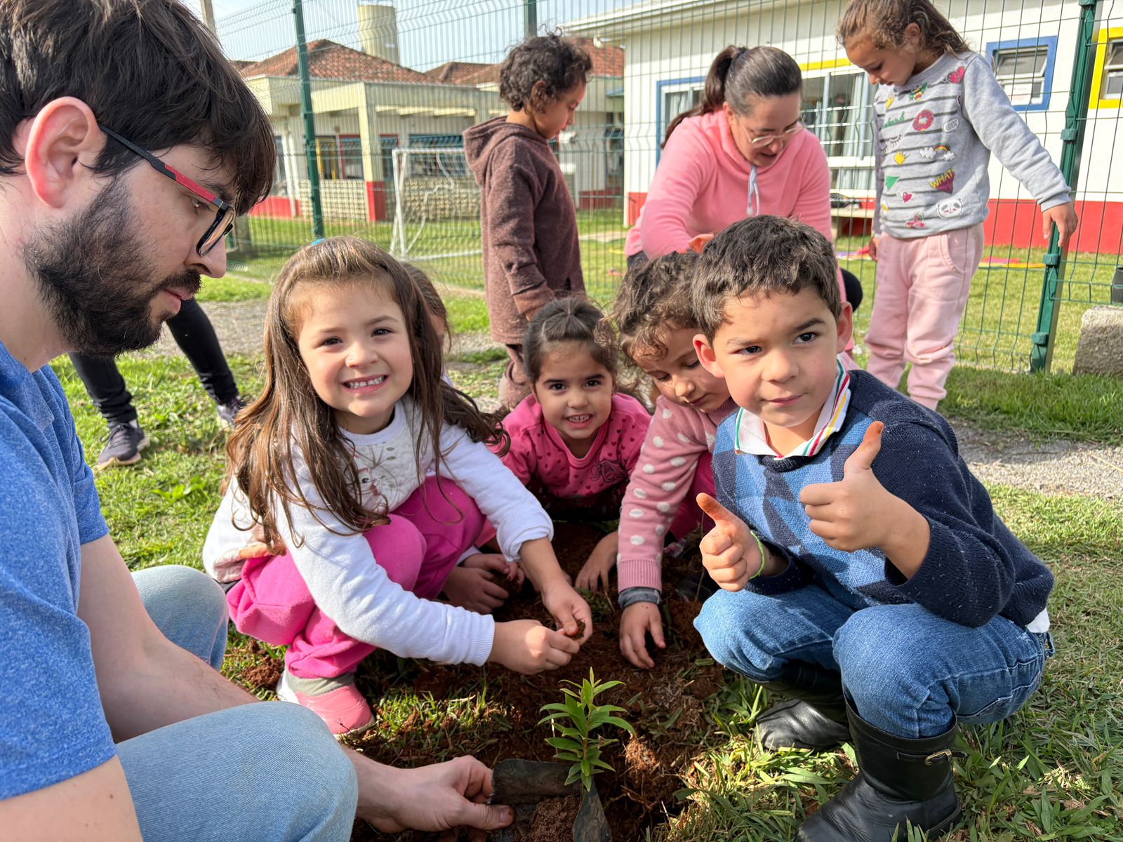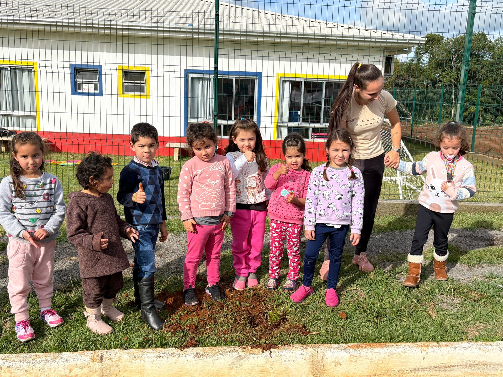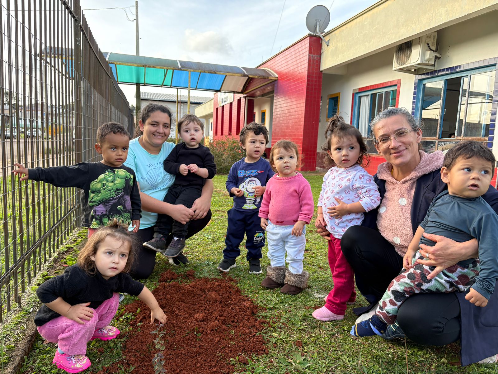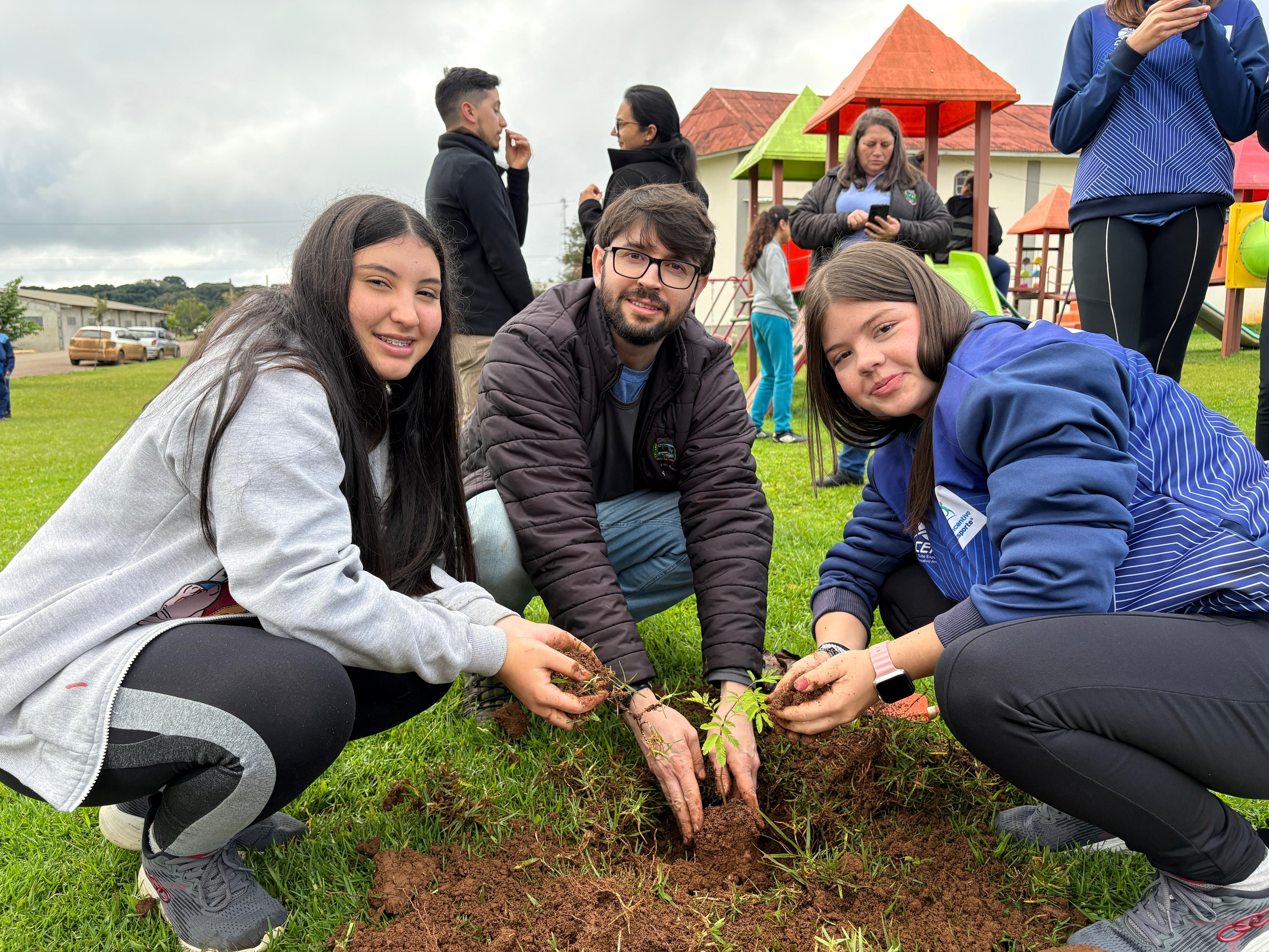 A ação contou com a participação da Secretária de Educação, Alessandra Gonçalves da Costa, do secretário de Agricultura, Paulo Claudemir Duarte, do fiscal ambiental Giovane da Rosa e do analista ambiental Gelson Neto, que ofereceram apoio e orientação às crianças durante as atividades. Os alunos da EMEB Professor Tadeu Silveira e da EMEI Tia Braia foram os principais protagonistas da ação, realizando o plantio de árvores nativas e ornamentais na praça municipal e em canteiros próximos a creche.