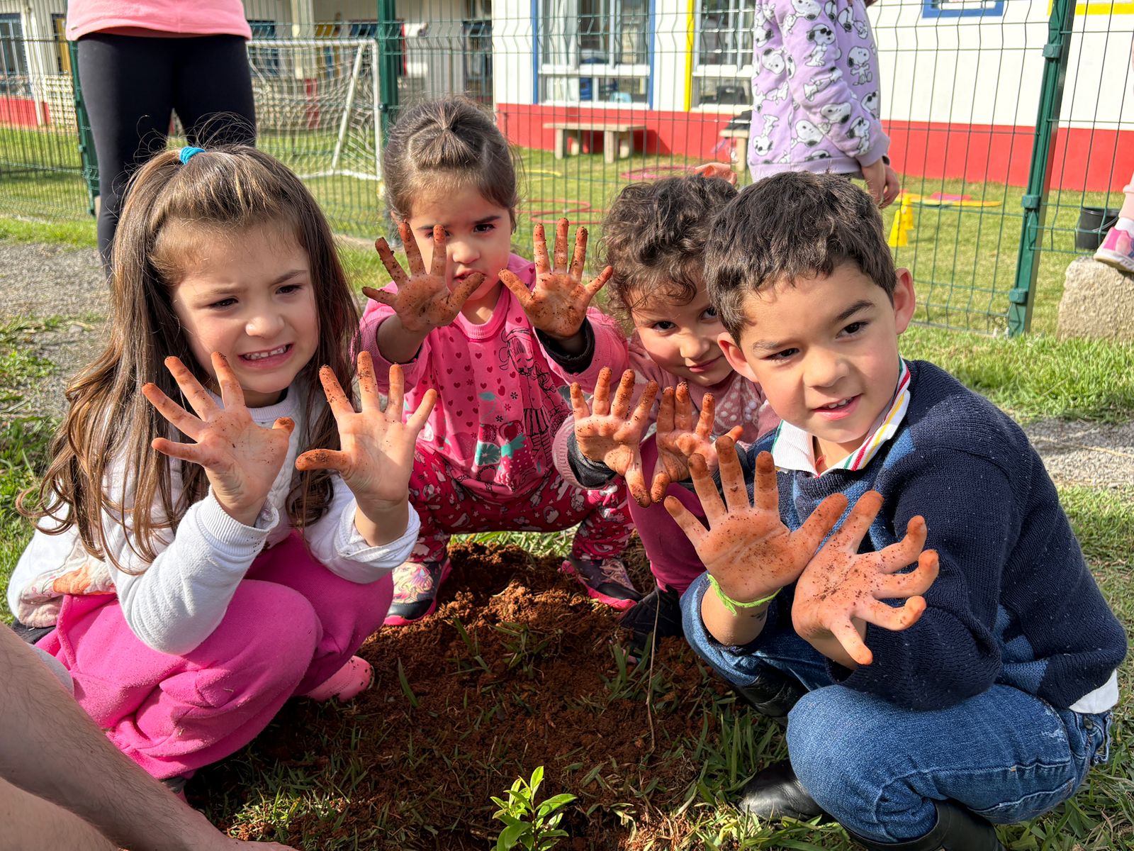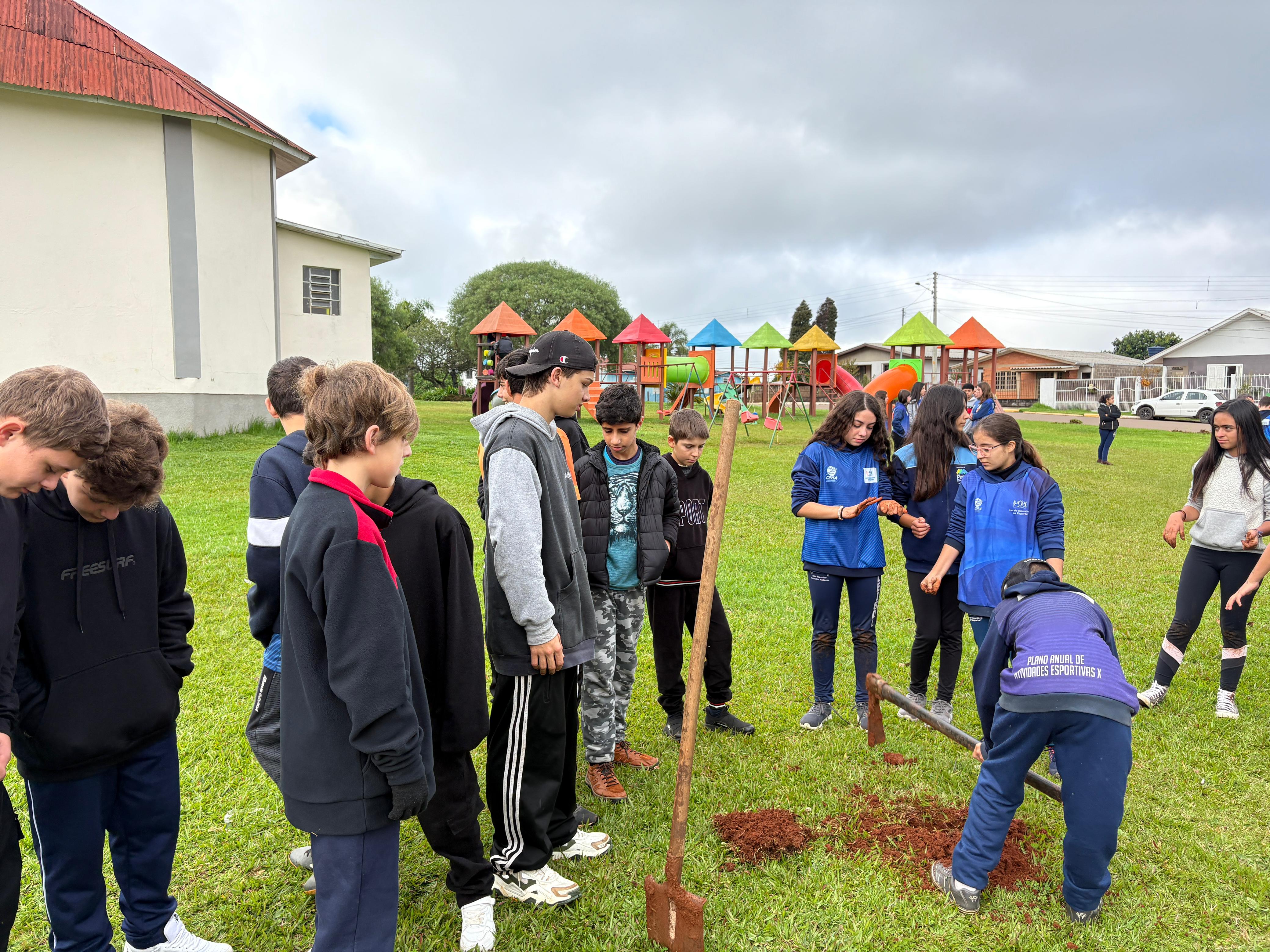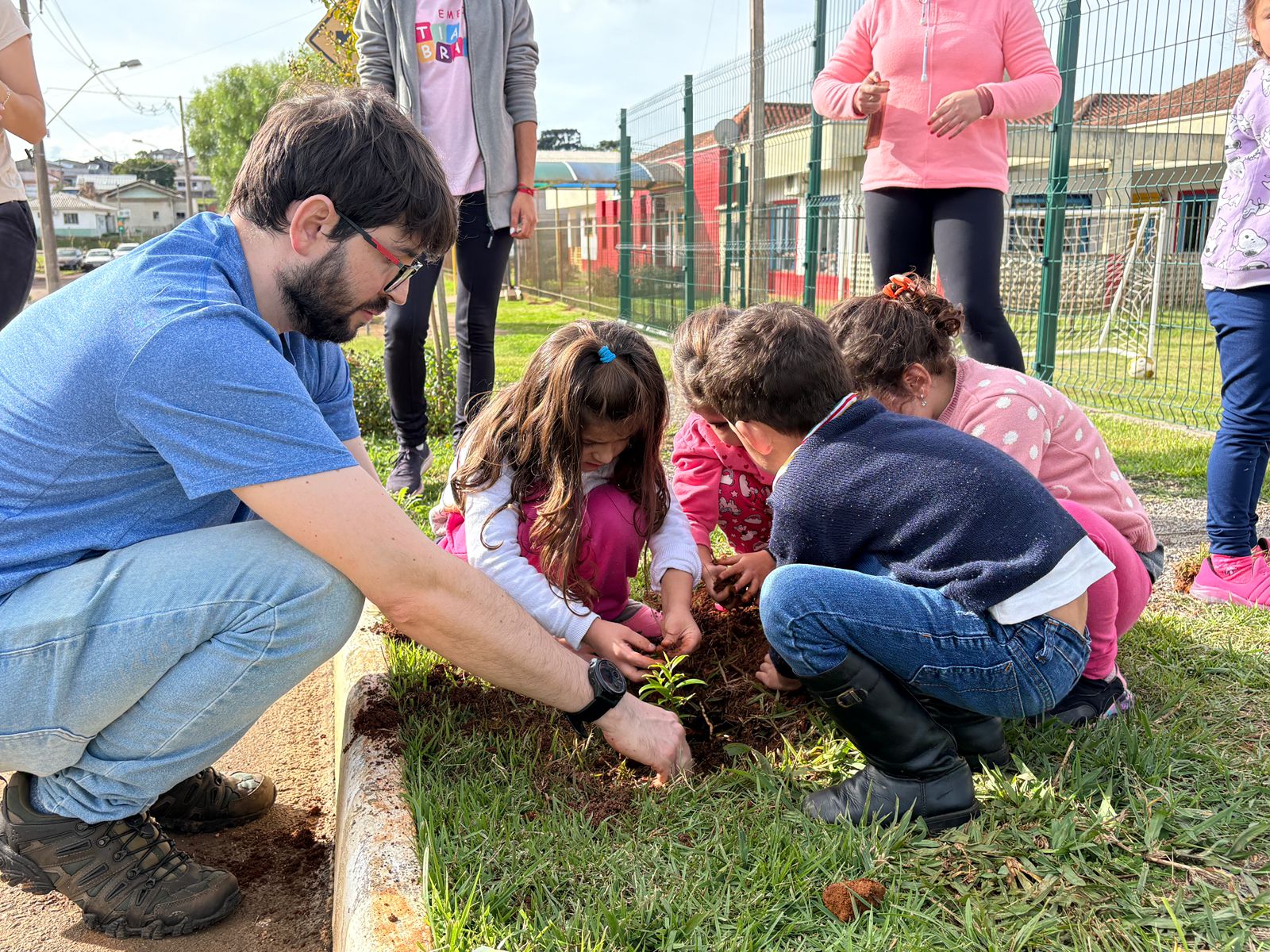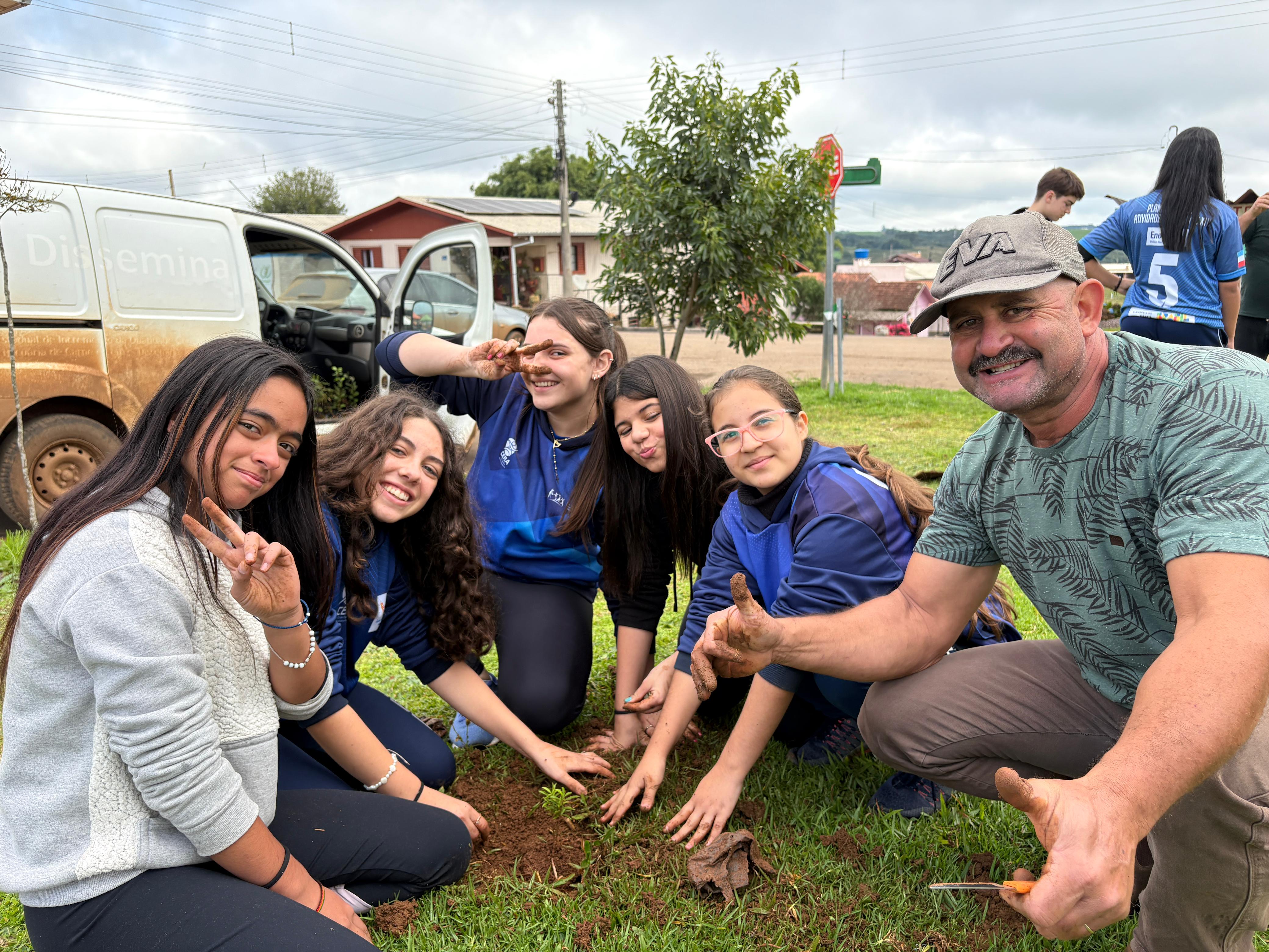 A ação contou com a participação da Secretária de Educação, Alessandra Gonçalves da Costa, do secretário de Agricultura, Paulo Claudemir Duarte, do fiscal ambiental Giovane da Rosa e do analista ambiental Gelson Neto, que ofereceram apoio e orientação às crianças durante as atividades. Os alunos da EMEB Professor Tadeu Silveira e da EMEI Tia Braia foram os principais protagonistas da ação, realizando o plantio de árvores nativas e ornamentais na praça municipal e em canteiros próximos a creche.