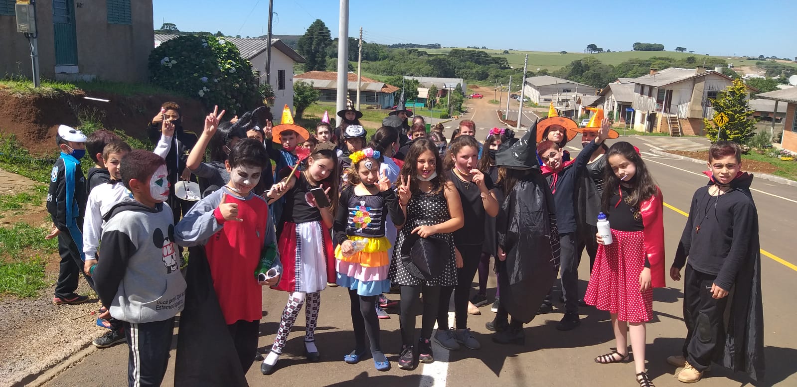 Bruxas, super-heróis, fadas, vampiros e diversos monstrinhos fizeram a festa de Halloween nas Escolas Municipais de Pinhal da Serra, na última semana. A atividade reuniu estudantes, professores, monitores e funcionários, numa confraternização repleta de Doces ou Travessuras, que também serviu como ferramenta do ensino de inglês para as turmas.