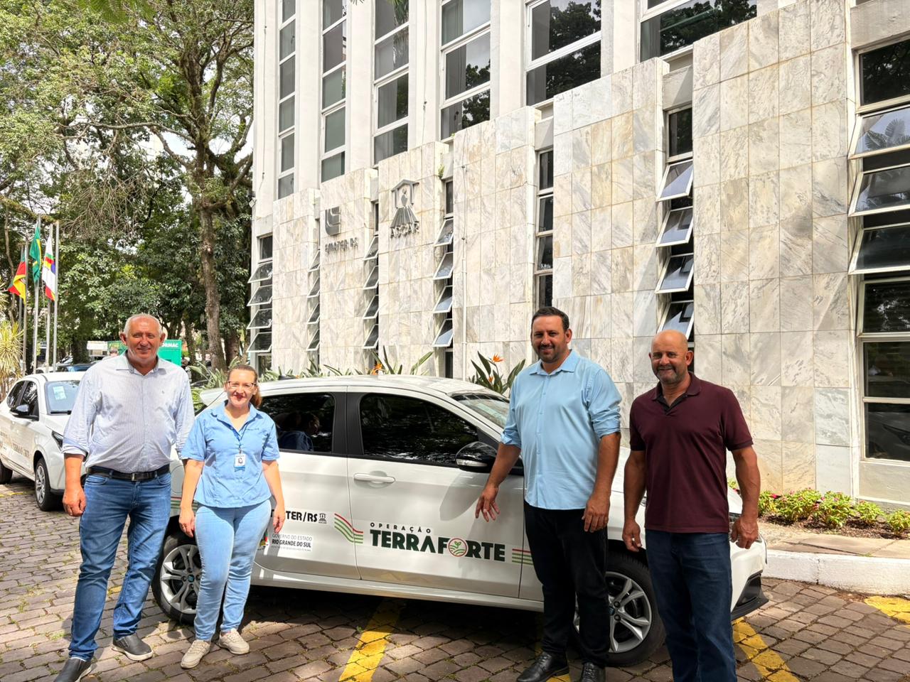 Na tarde de terça-feira, 3 de fevereiro, autoridades municipais de Pinhal da Serra estiveram em Porto Alegre para participar da solenidade de entrega de veículos do Programa Operação Terra Forte, promovido pelo Governo do Estado, por meio da Secretaria de Desenvolvimento Rural (SDR).