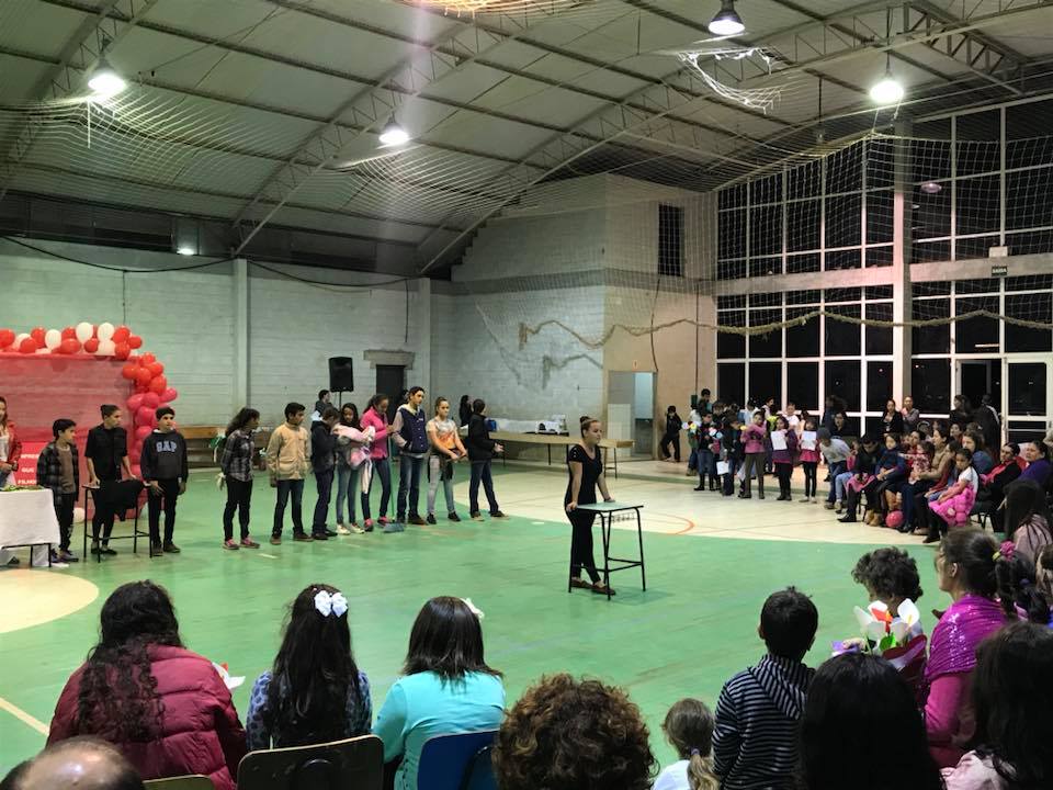 Na noite de sexta-feira (11/05), a direção, professores, funcionários e os alunos receberam as mães no Ginásio Municipal para homenageá-las.