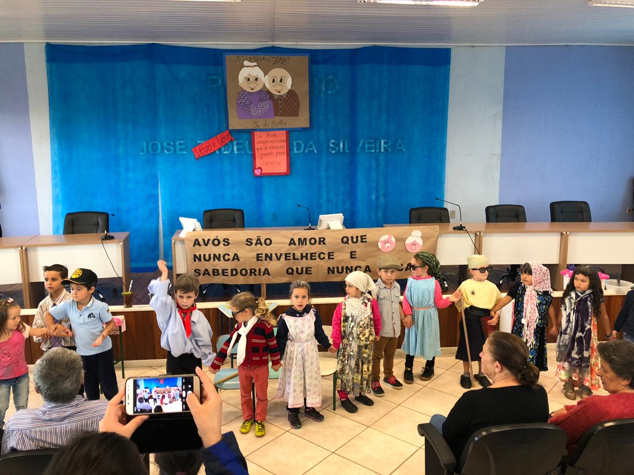 As turmas de Pré-Escola receberam as vovós e os vovôs pela parte da tarde, na Câmara de Vereadores na última terça-feira (23/07). As turmas de Creche receberam os avós na escola, na tarde de quarta-feira (24/07). Além de lindas apresentações desenvolvidas pelas crianças, ao final todos desfrutaram de um delicioso lanche.