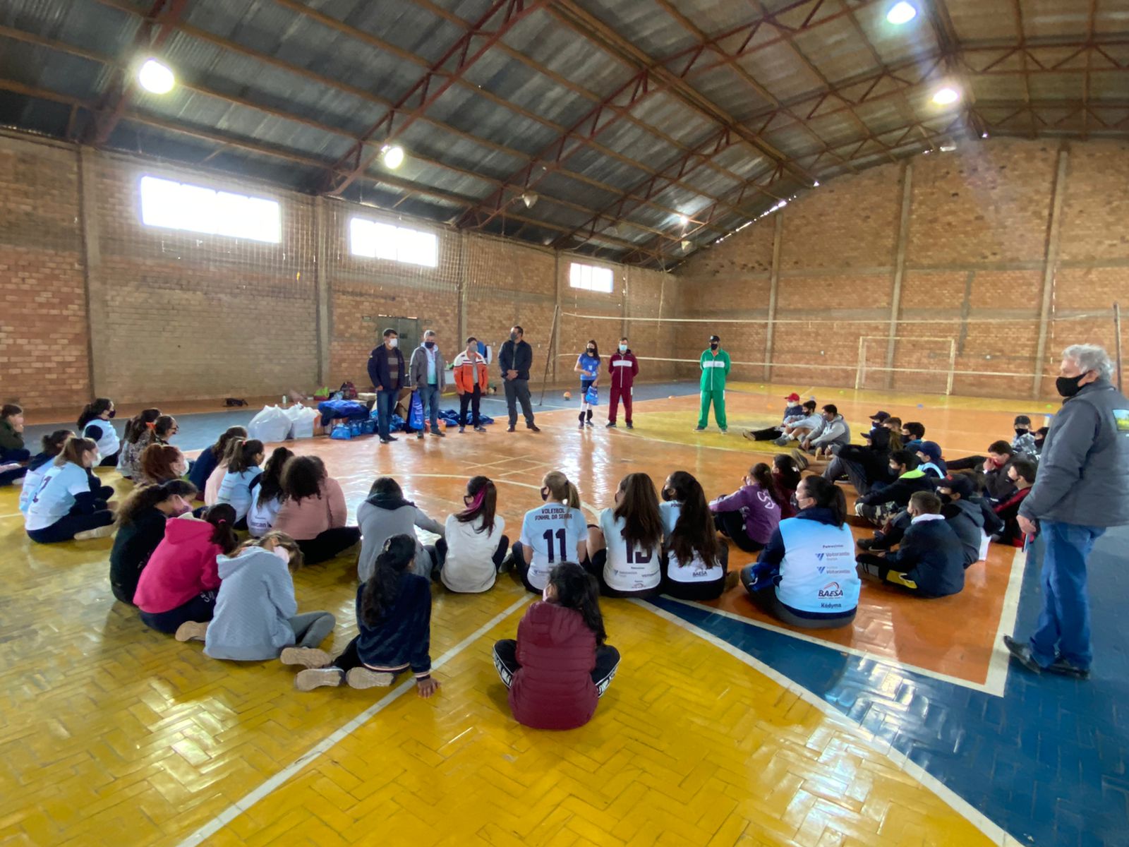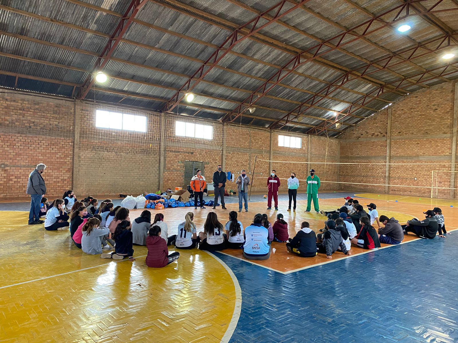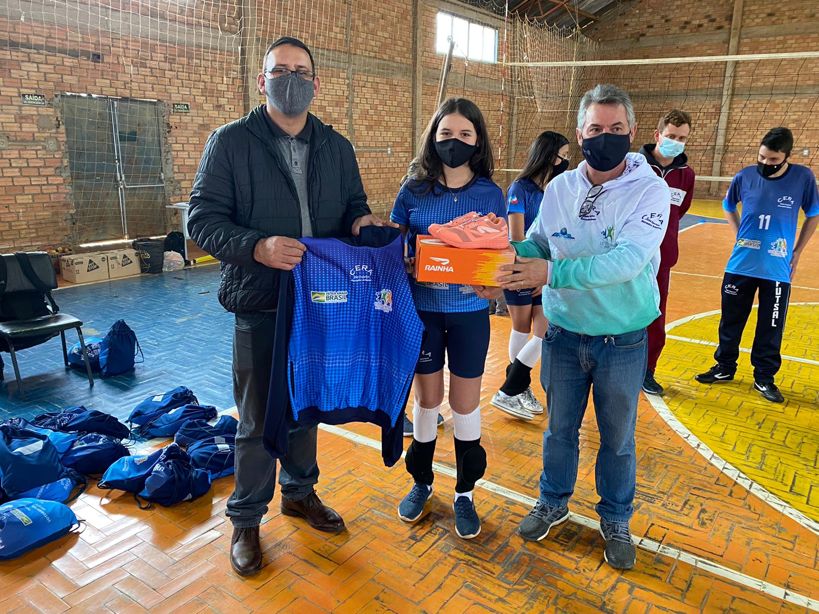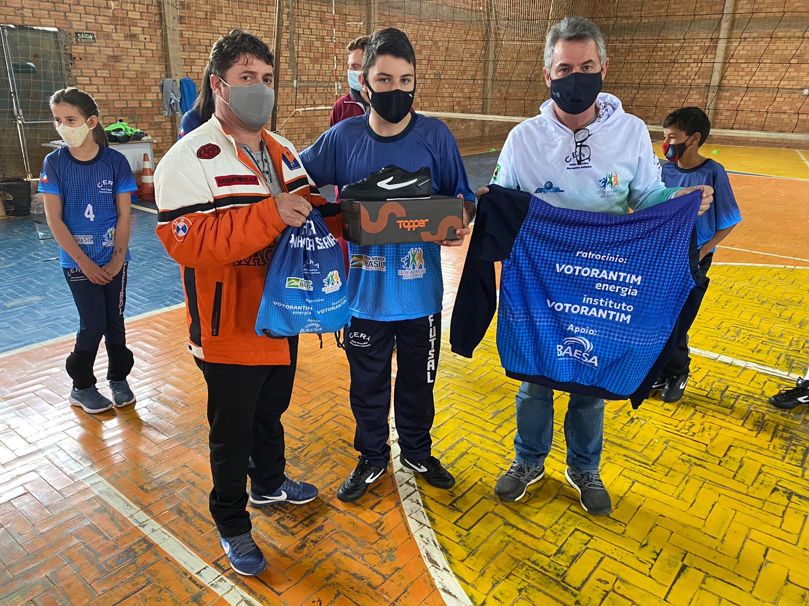 Neste ano, o projeto Plano Anual de Atividades Esportivas, executado pelo Clube Esportivo Recreativo Anitense (CERA), está sendo desenvolvido no modelo híbrido, que combina atividades presenciais com o uso de ferramentas tecnológicas, possibilitando o revezamento de alunos em aulas presenciais e remotas. Hoje, no município de Pinhal da Serra, ocorreu a entrega dos materiais esportivos e uniformes para os 50 alunos participantes do projeto, que desenvolvem atividades nas modalidades de futsal e voleibol.