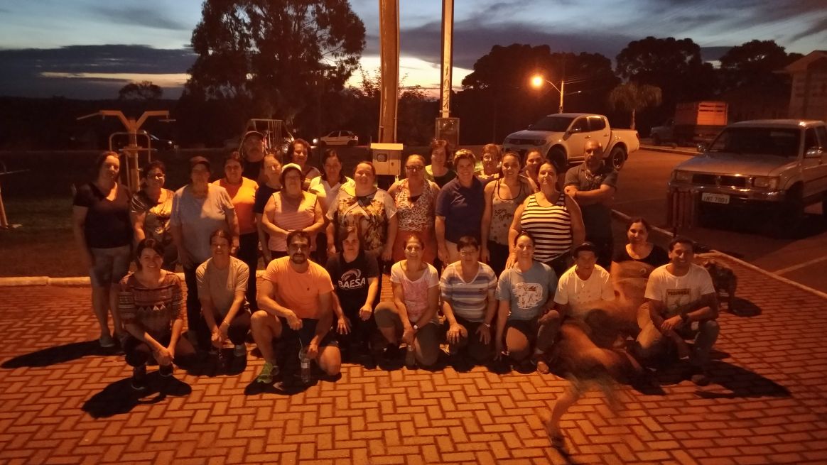 A concentração foi na Praça Central às 17:30min iniciando com alongamentos e uma conversa sobre a alimentação saudável, após foi feita uma caminhada com duração de 30 minutos e a finalização foi realizada com a fisioterapeuta Ivanete Casarin.