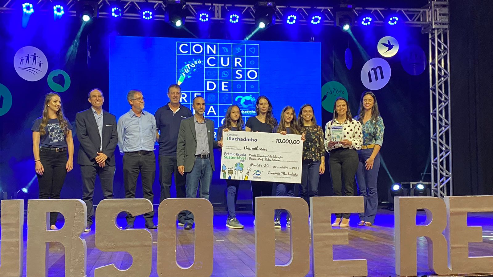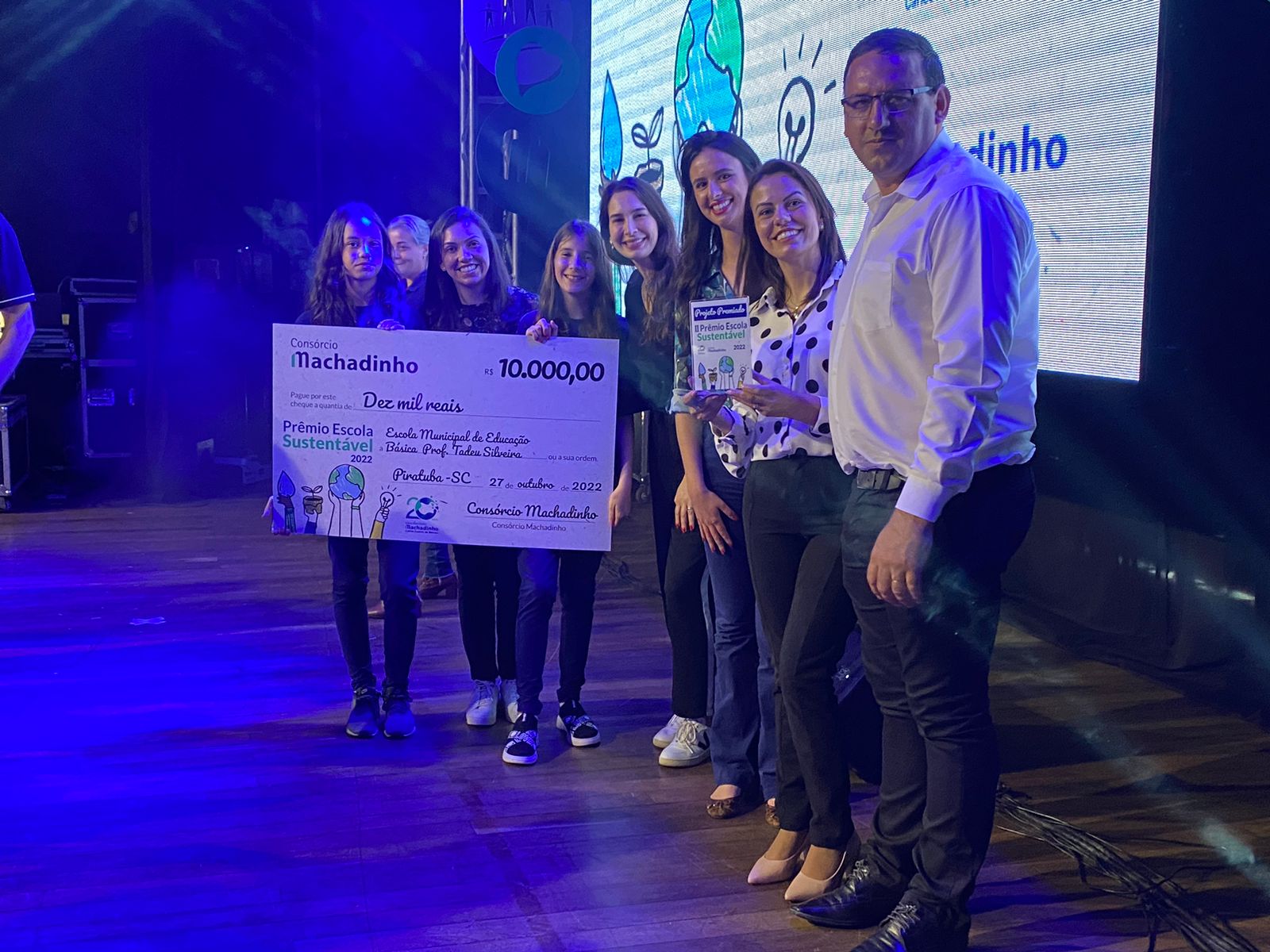 Na última quinta-feira (27/10) a EMEB professor Tadeu Silveira foi premiada com o valor de R$10.000,00 (Dez mil reais) no II Prêmio Escola Sustentável, organizado pelo Consórcio Machadinho na cidade de Piratuba/SC. O projeto “Educação ambiental e hábitos alimentares saudáveis: nutrindo ações de sustentabilidade” concorreu com 50 projetos inscritos pelos municípios de área de abrangência da Usina Machadinho.