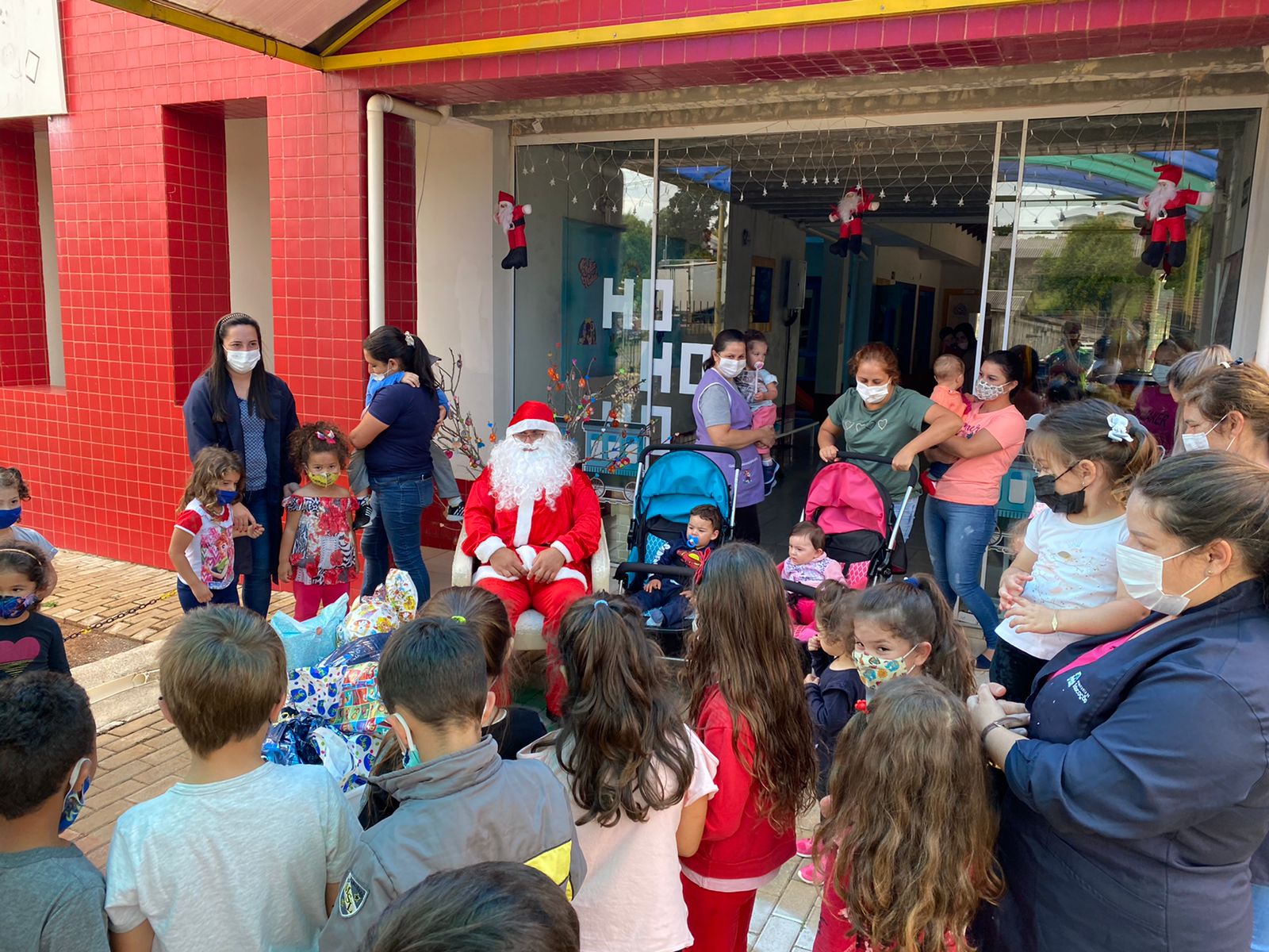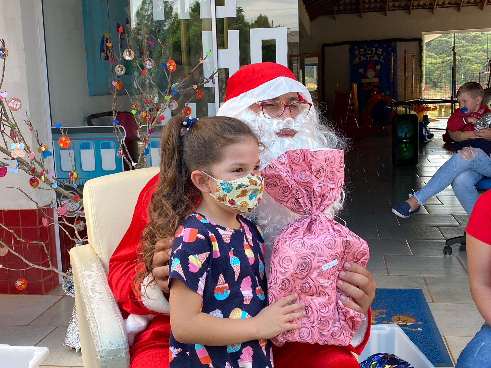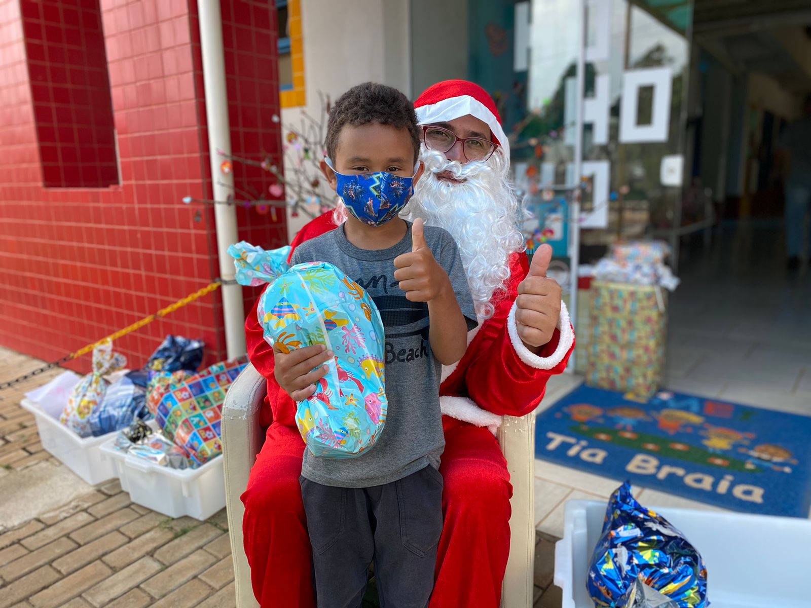 As crianças da EMEI Tia Braia receberam a visita do Papai Noel que entregou os presentes recebidos por meio das cartinhas de natal. Já os estudantes do ensino fundamental participaram de atividades recreativas, dança, passeio no parque arqueológico com piquenique e jogos interséries.