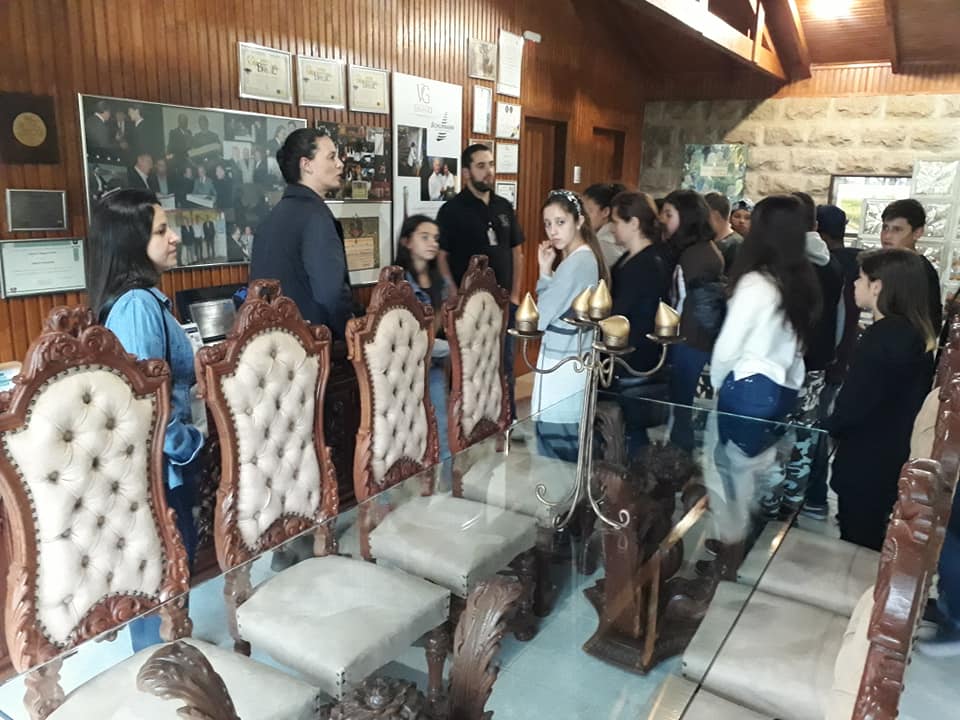 O passeio iniciou com um vídeo institucional sobre a cidade, depois seguiu com uma visita à praça central, onde está o Monumento da Imbuia, a Igreja Matriz e a Locomóvel, uma máquina a vapor automotora utilizada para corte de madeiras.