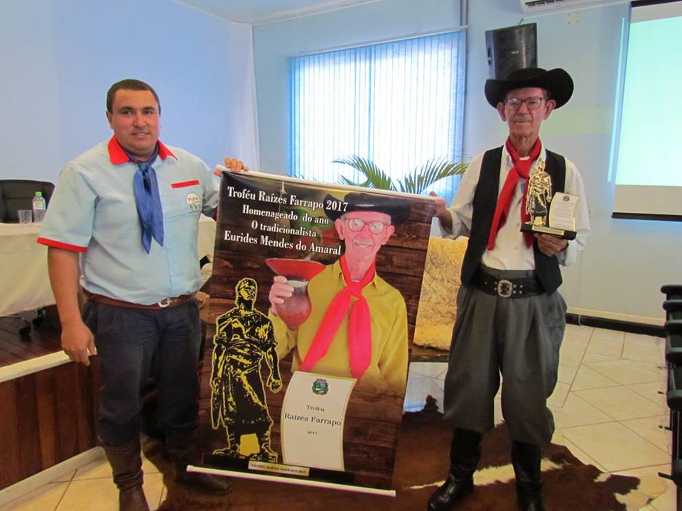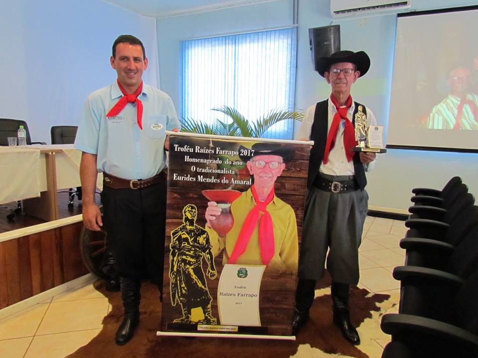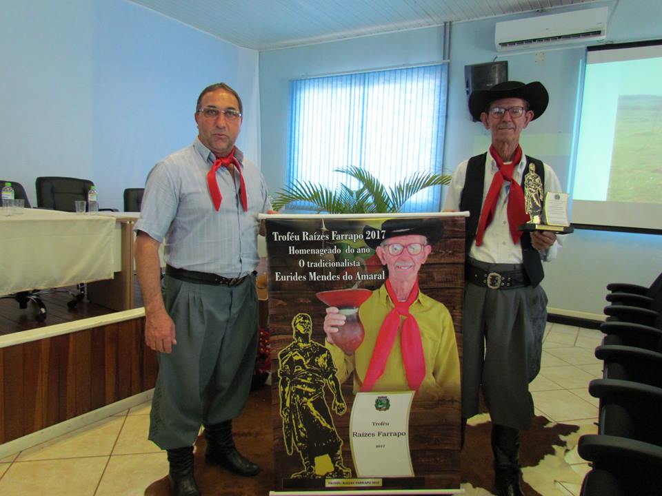 Em sessão solene que aconteceu na quarta-feira, 20/09, data magma do gaúcho, os vereadores concederam o Troféu Raízes Farrapo ao tradicionalista Eurides Mendes do Amaral, popular Nene.