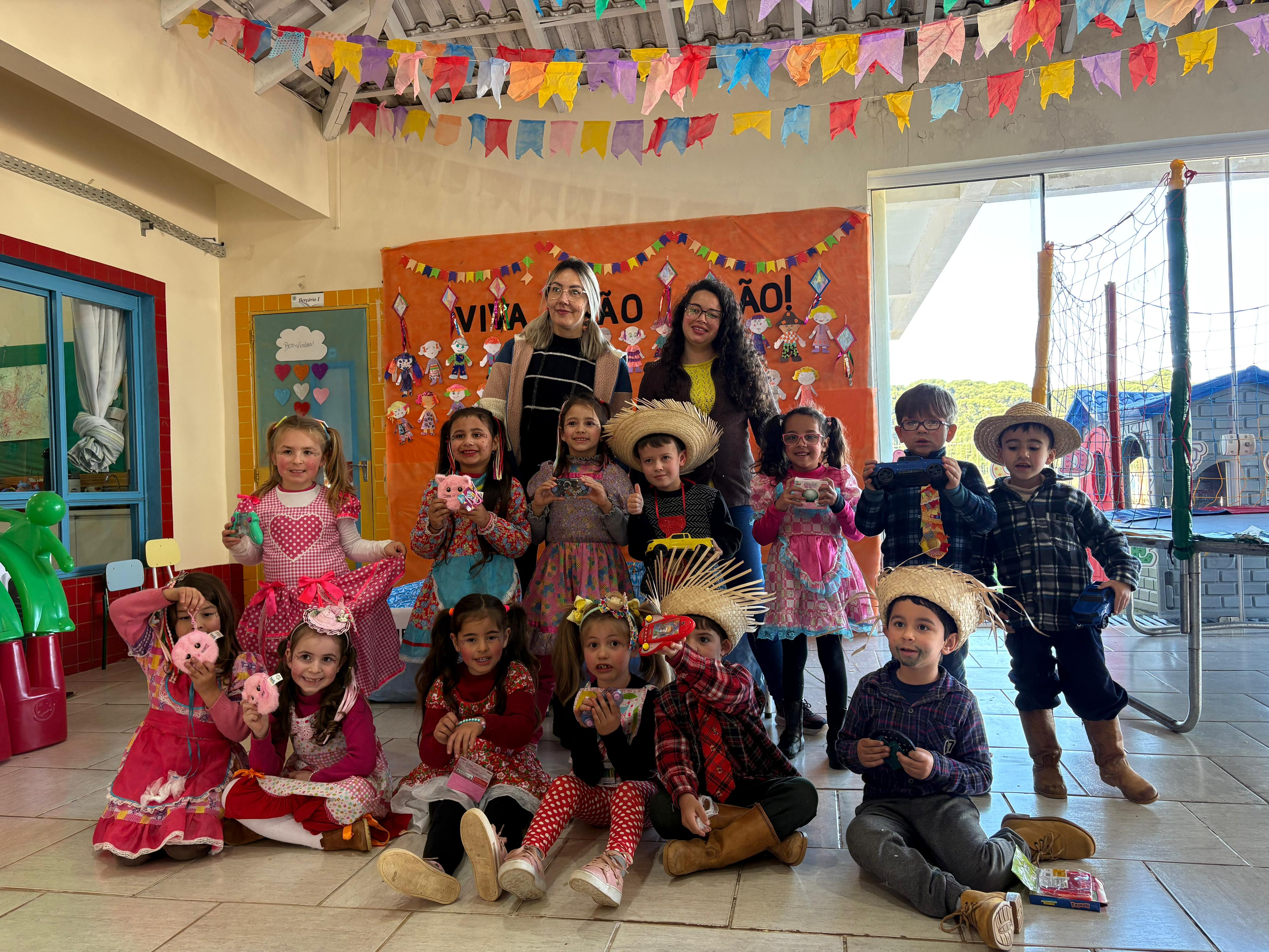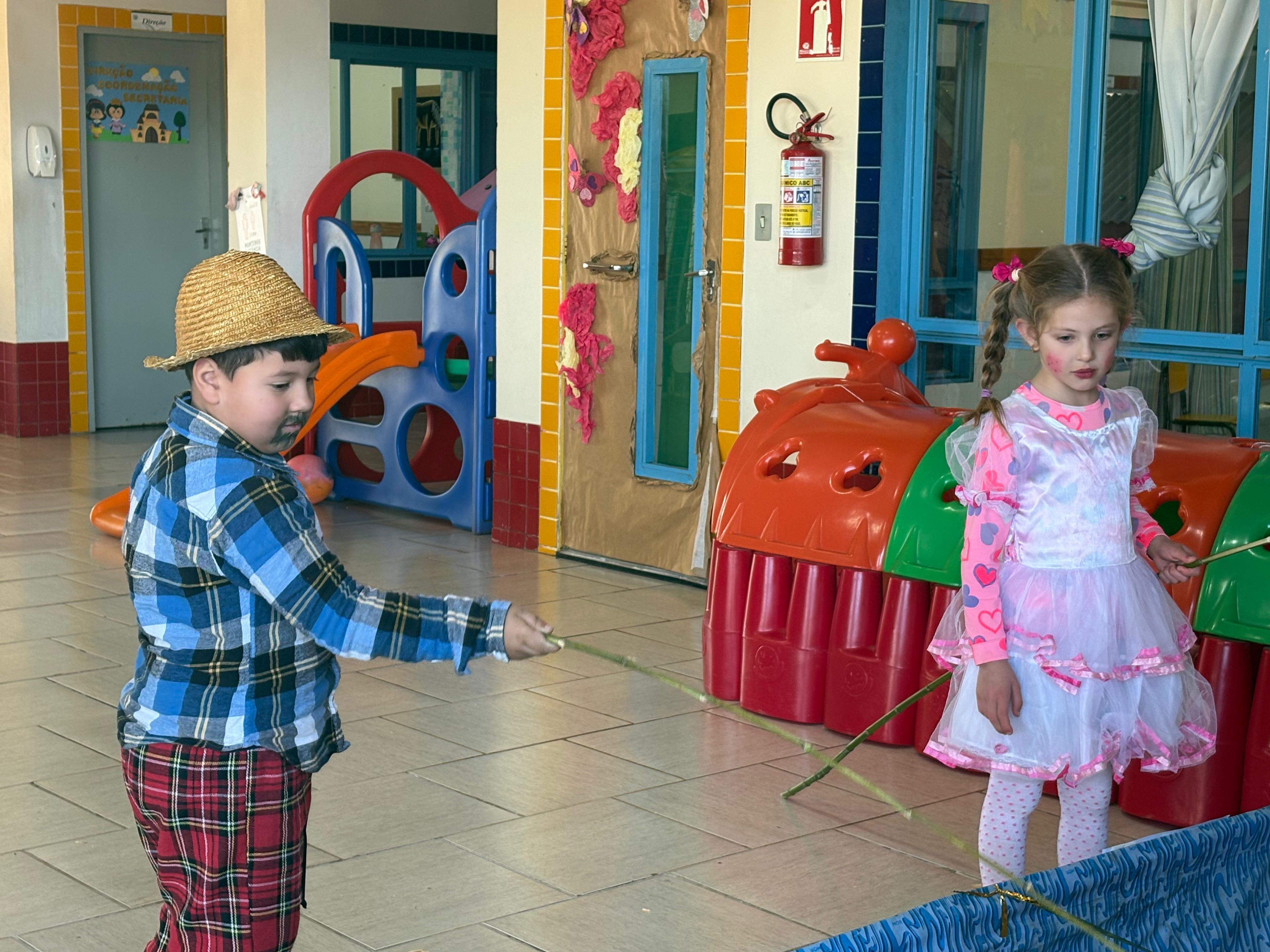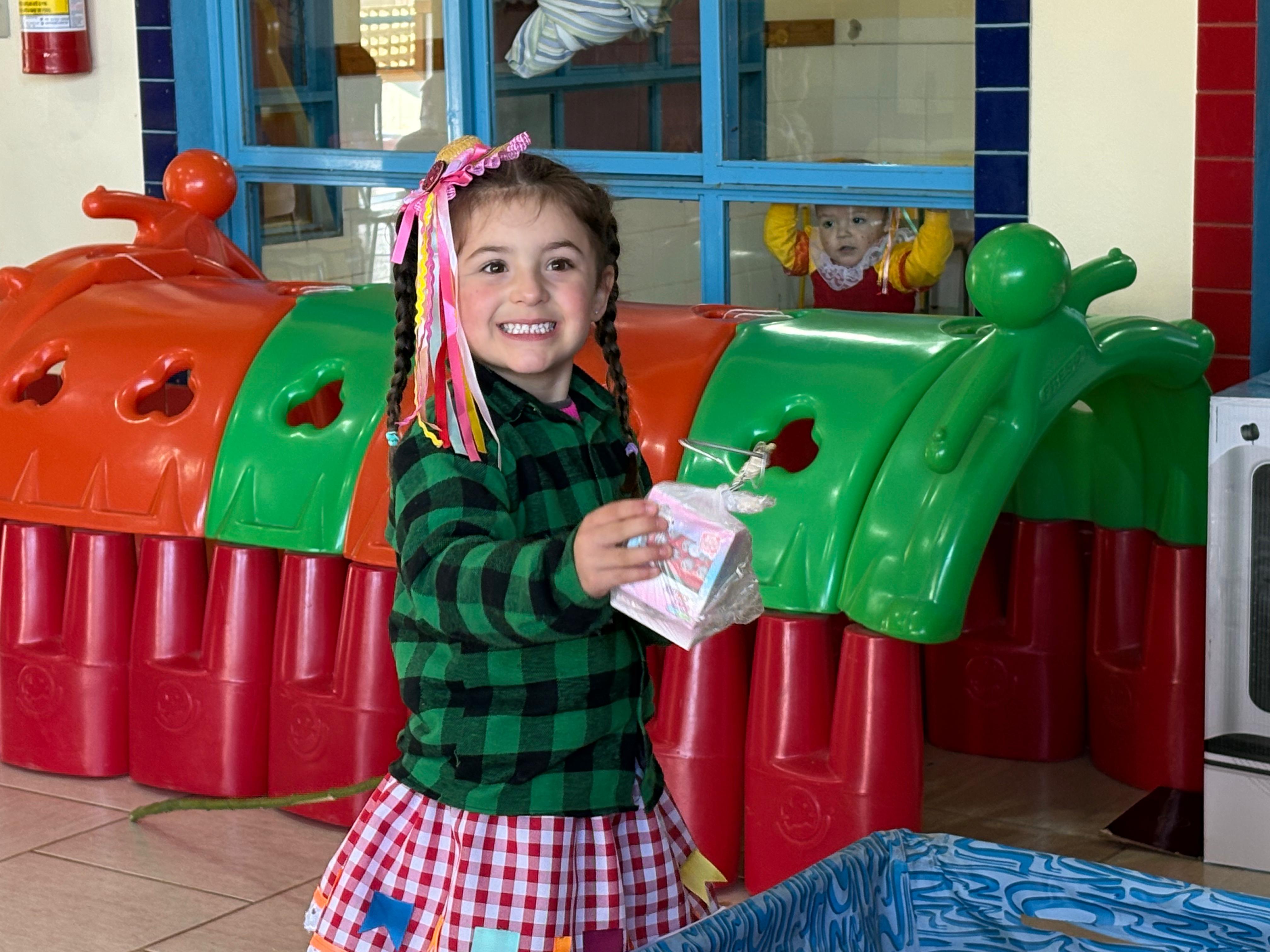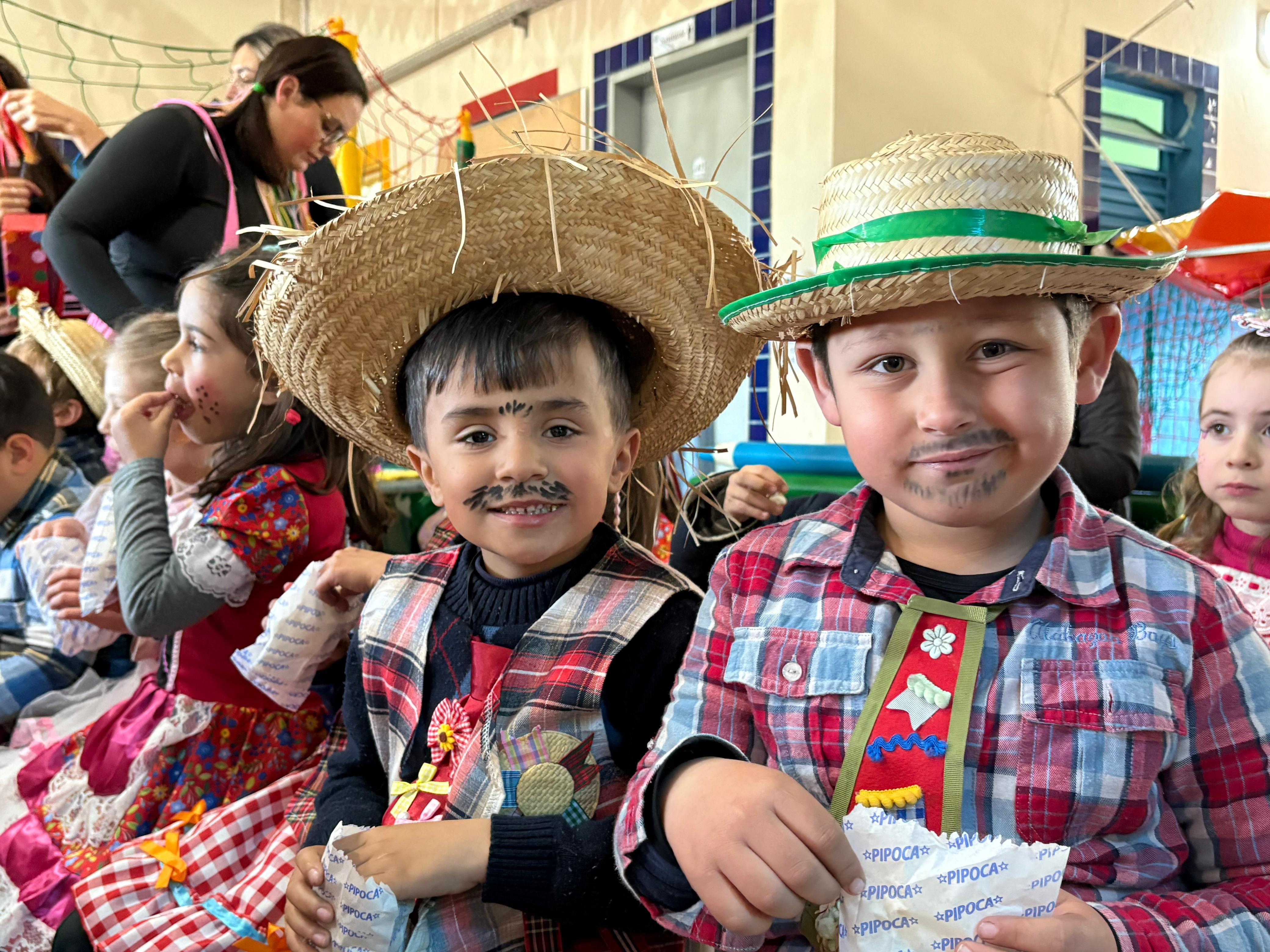 Os alunos realizaram apresentações incríveis, mostrando seu talento e criatividade. Além disso, ao longo do dia, eles puderam saborear deliciosas comidas típicas de festa junina, como pipoca, paçoca e um almoço típico que agradou a todos.