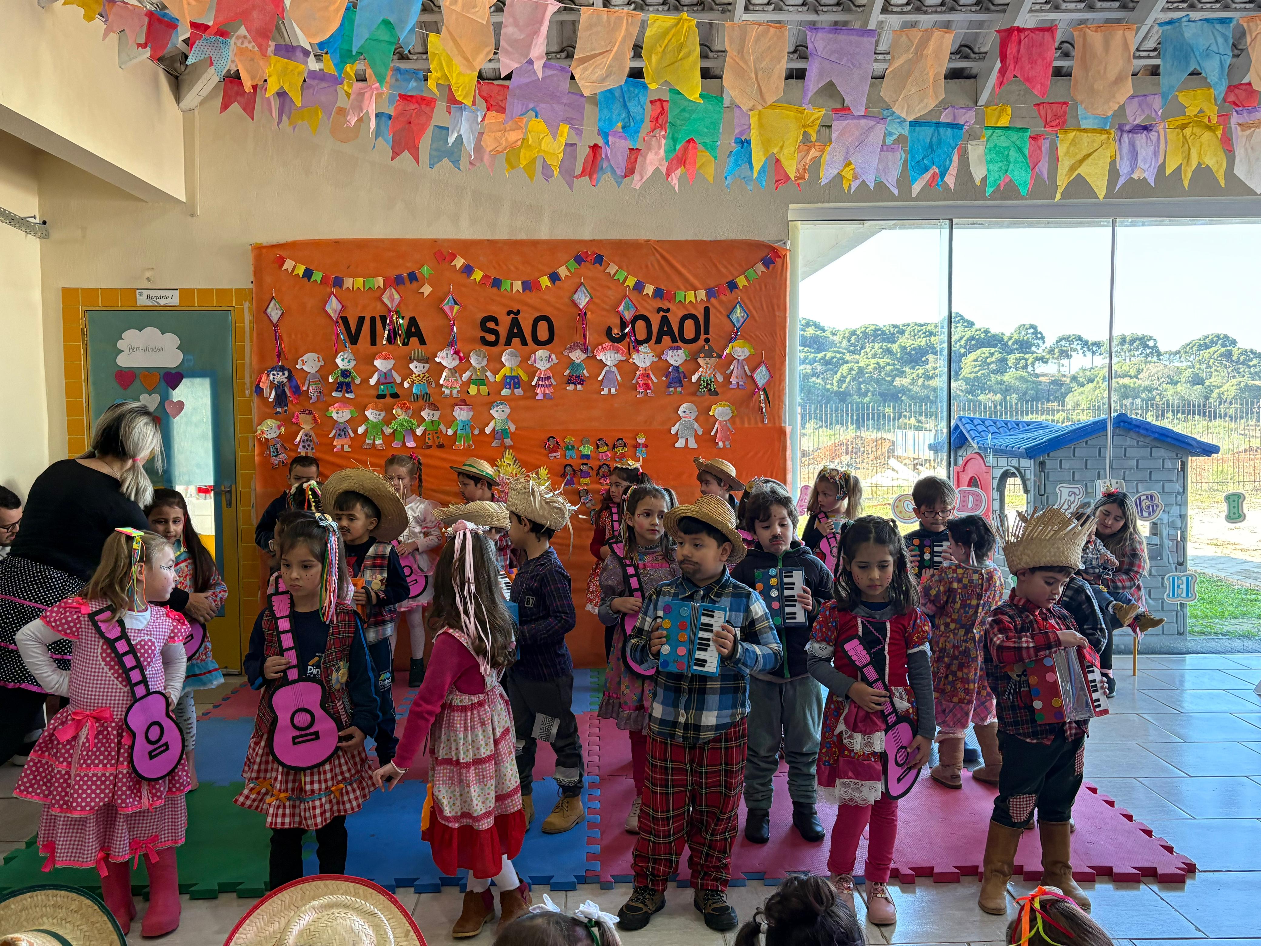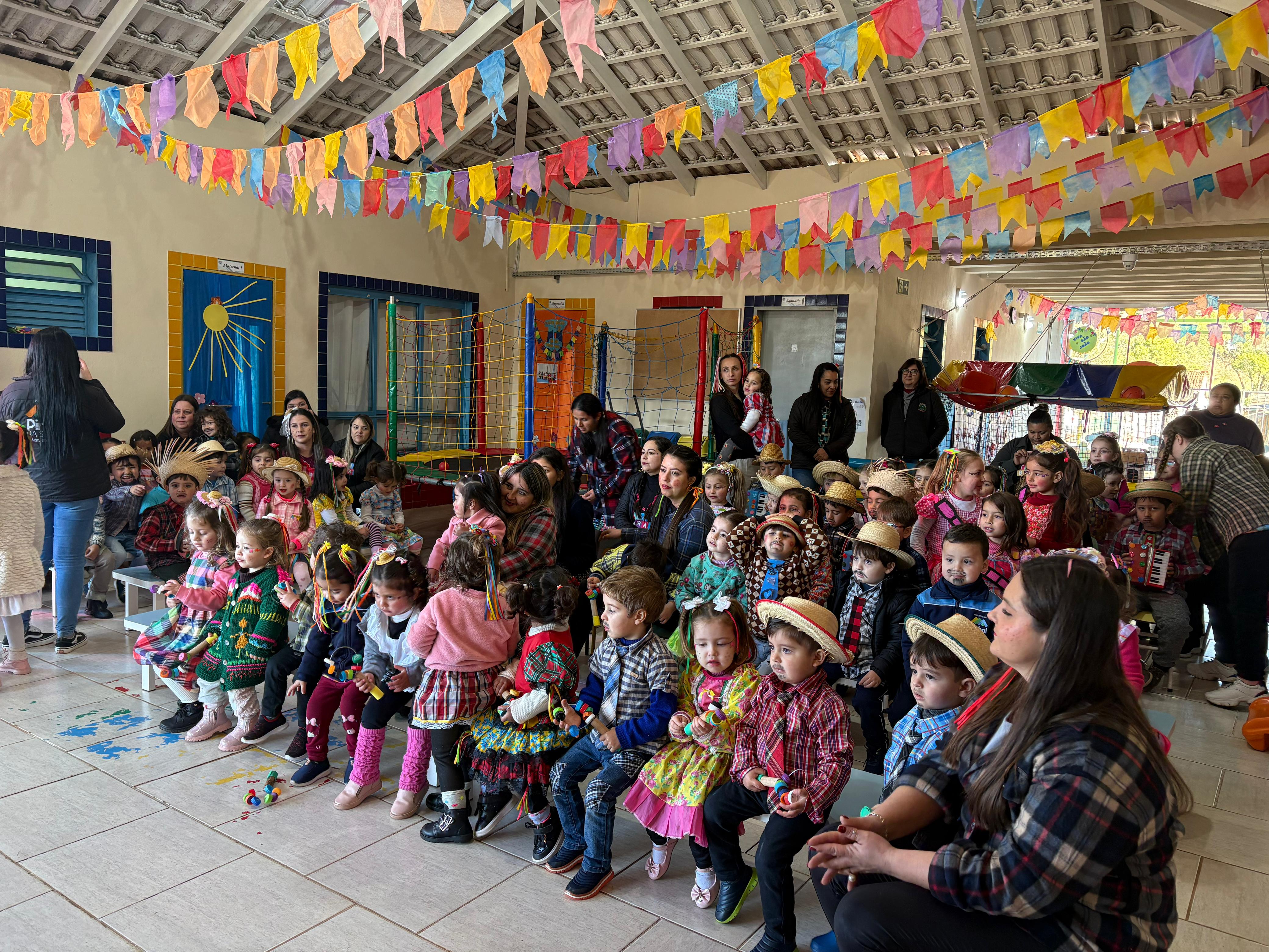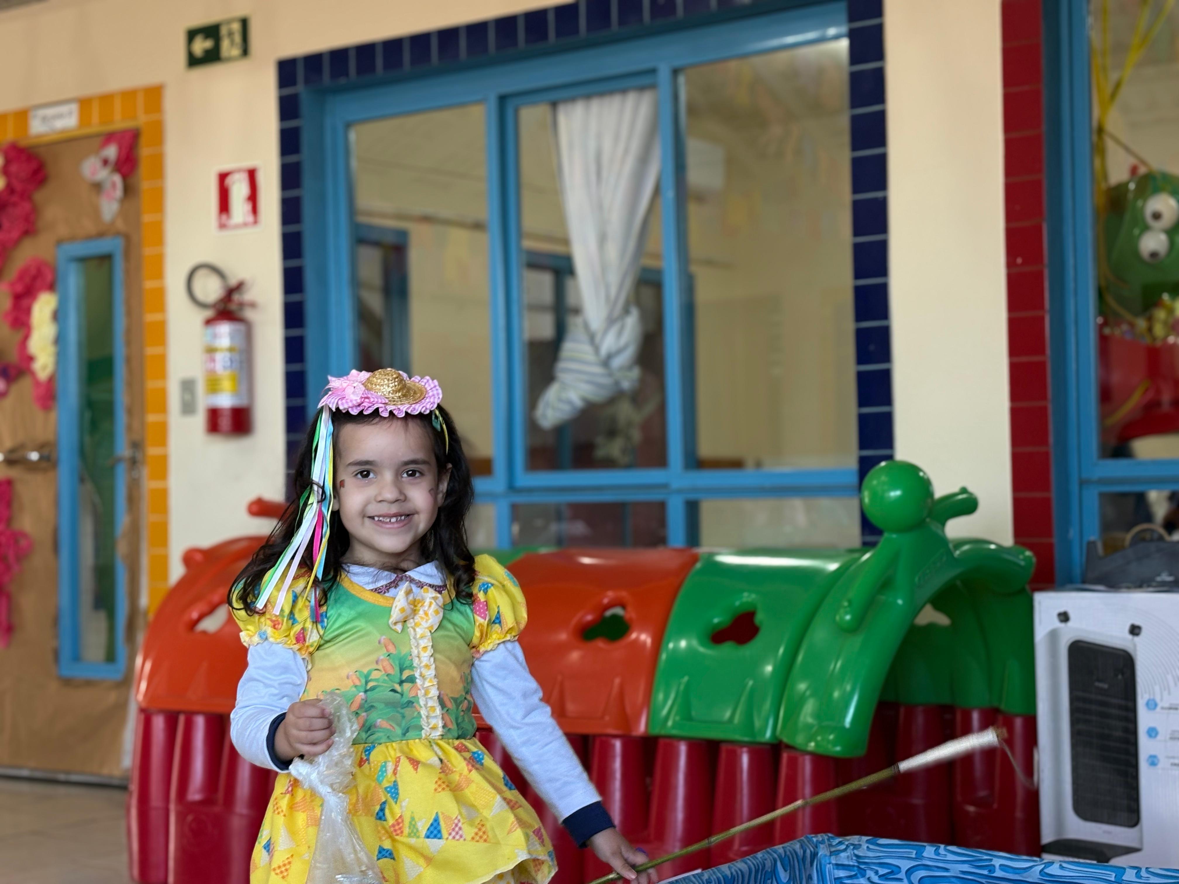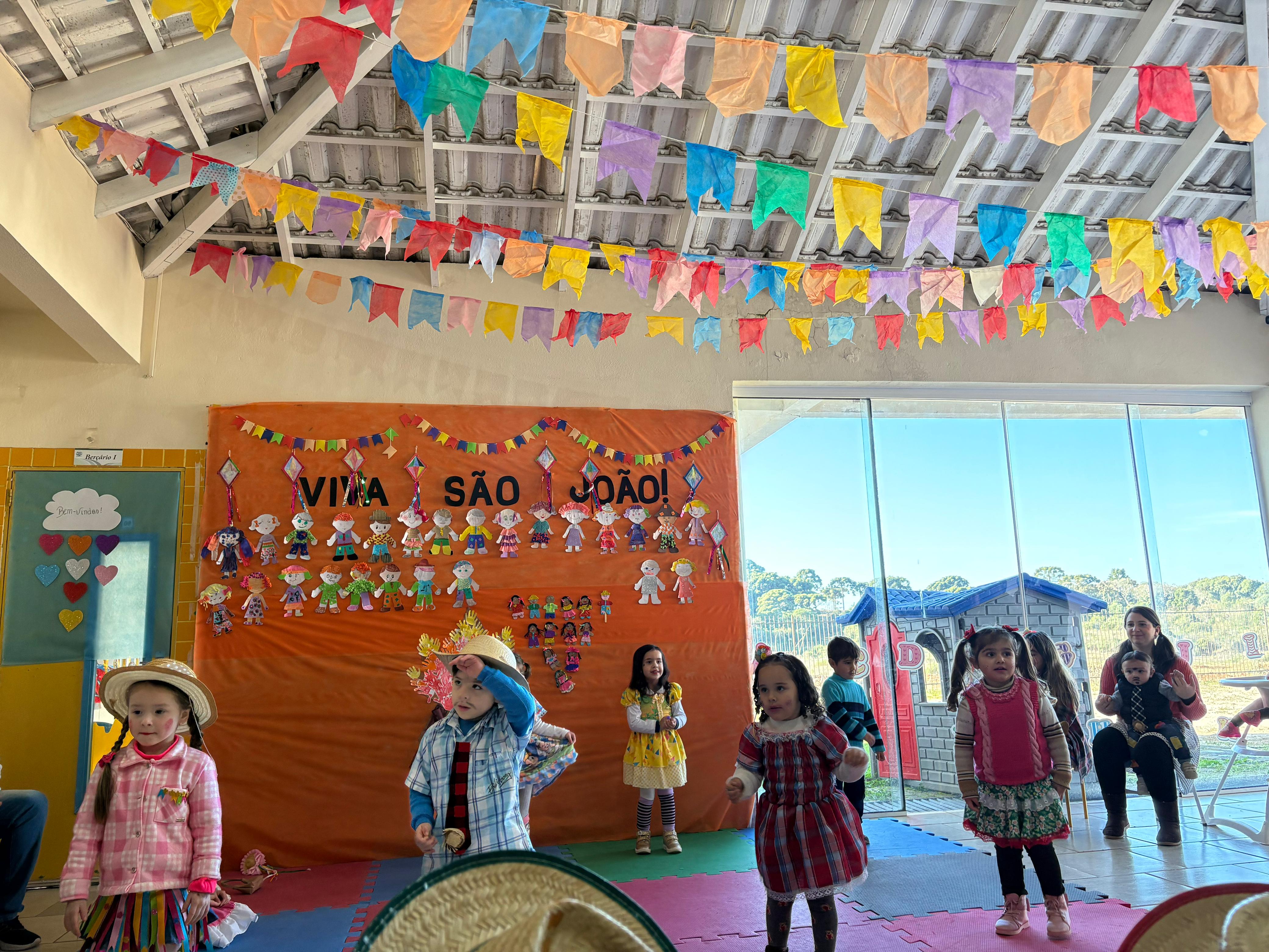 Os alunos realizaram apresentações incríveis, mostrando seu talento e criatividade. Além disso, ao longo do dia, eles puderam saborear deliciosas comidas típicas de festa junina, como pipoca, paçoca e um almoço típico que agradou a todos.