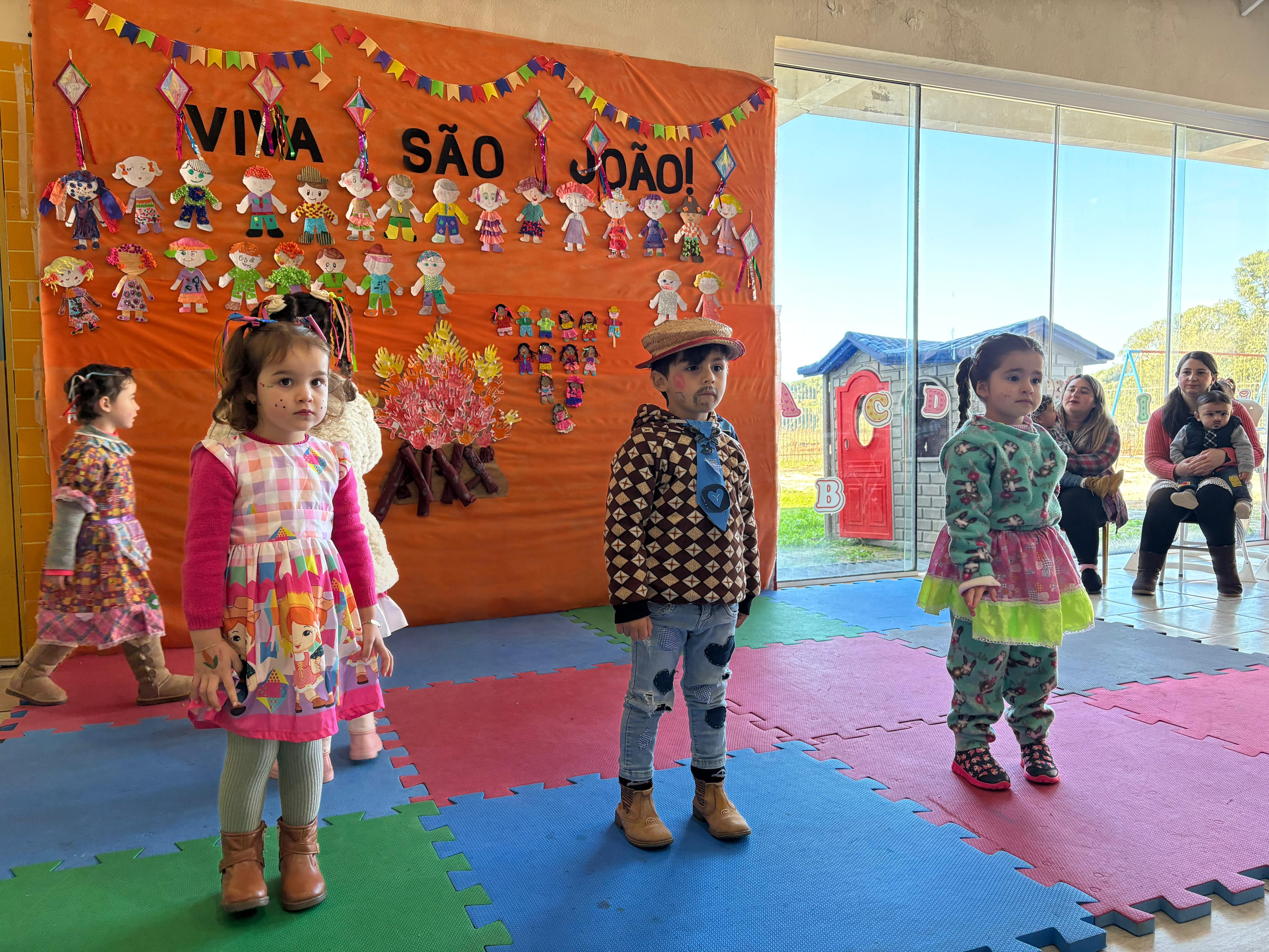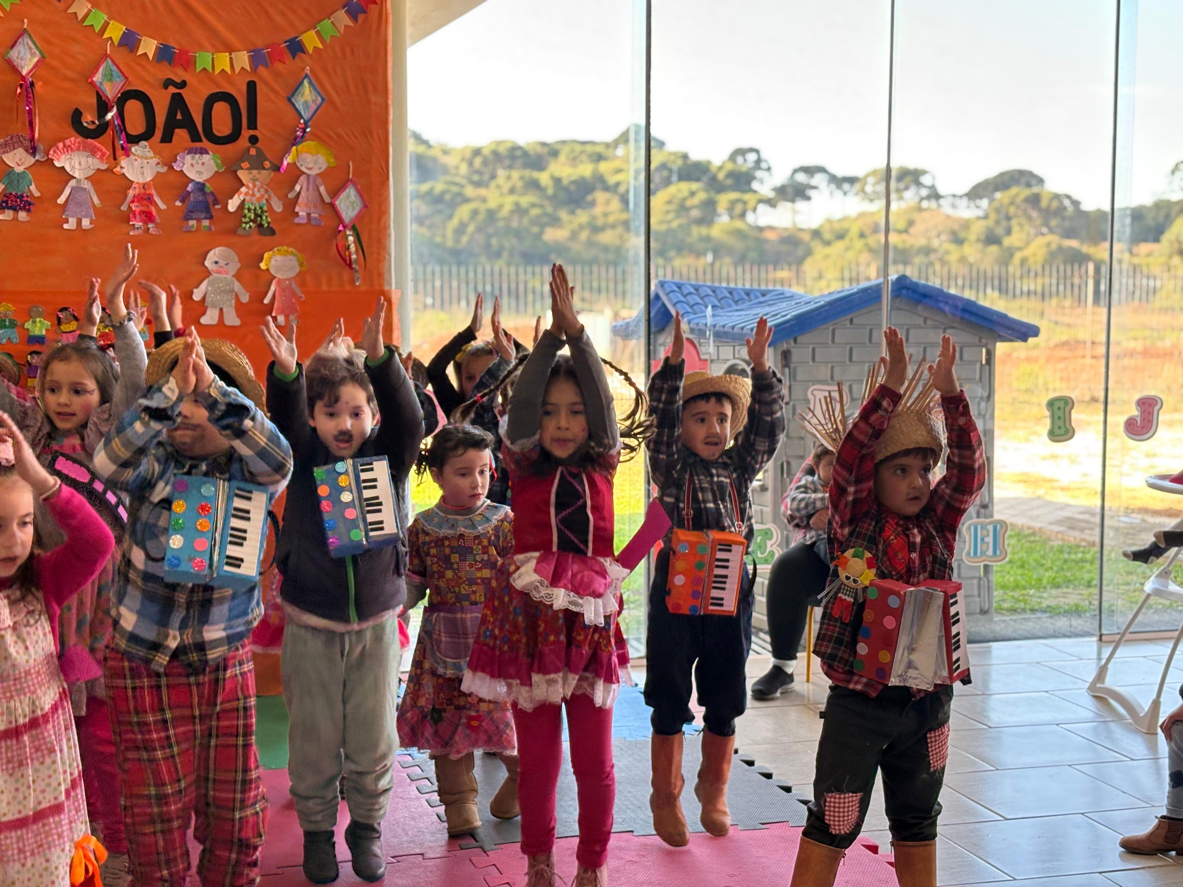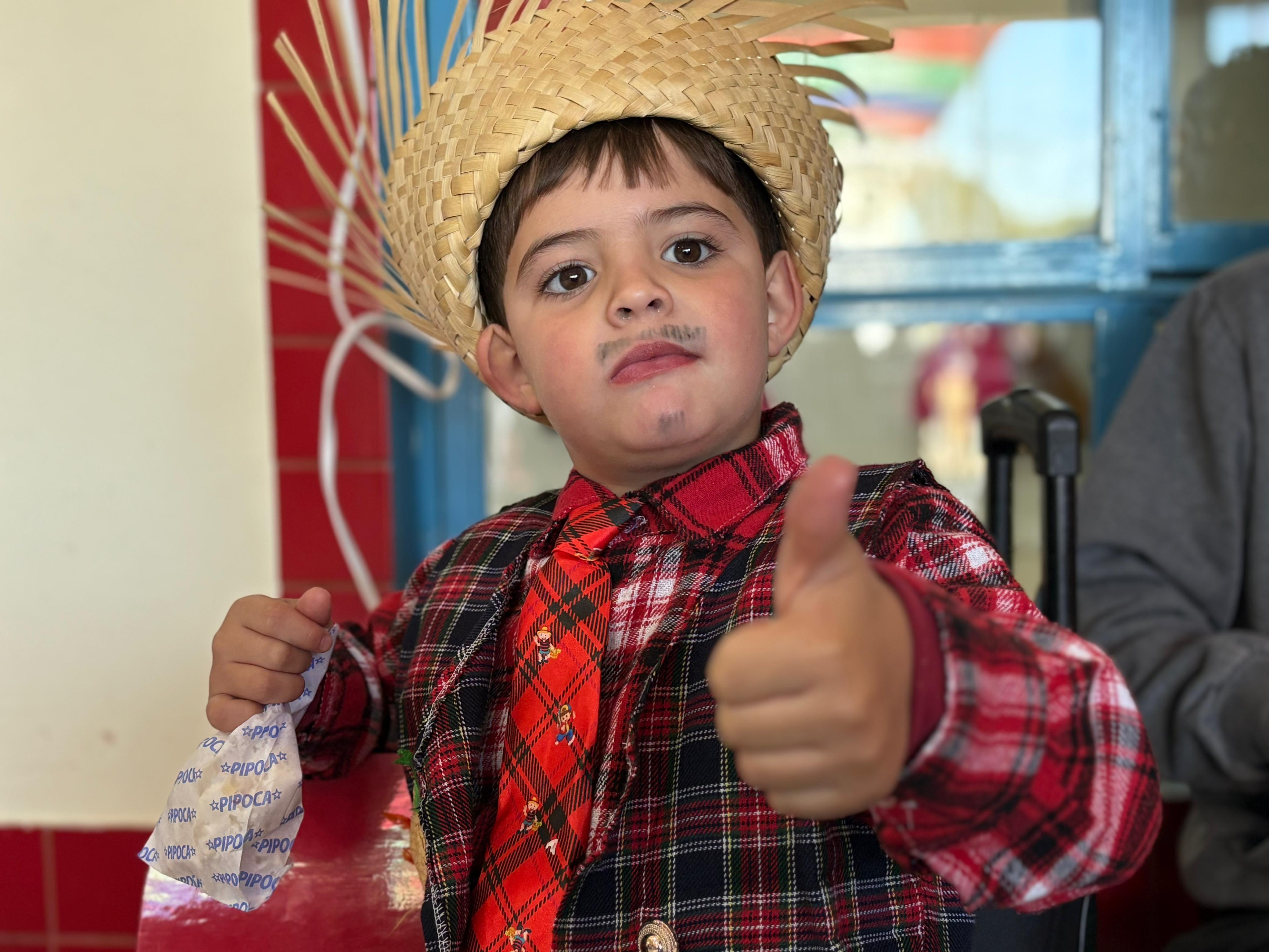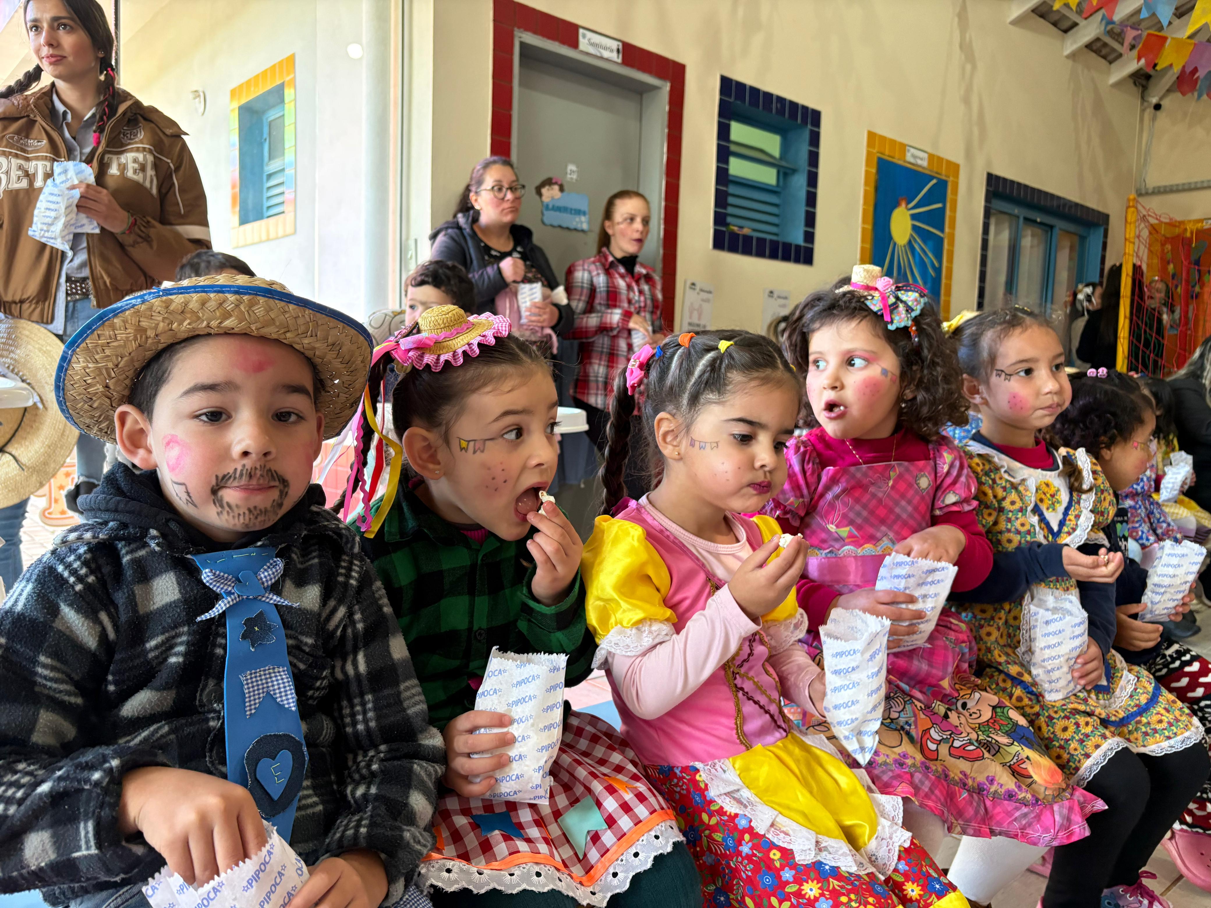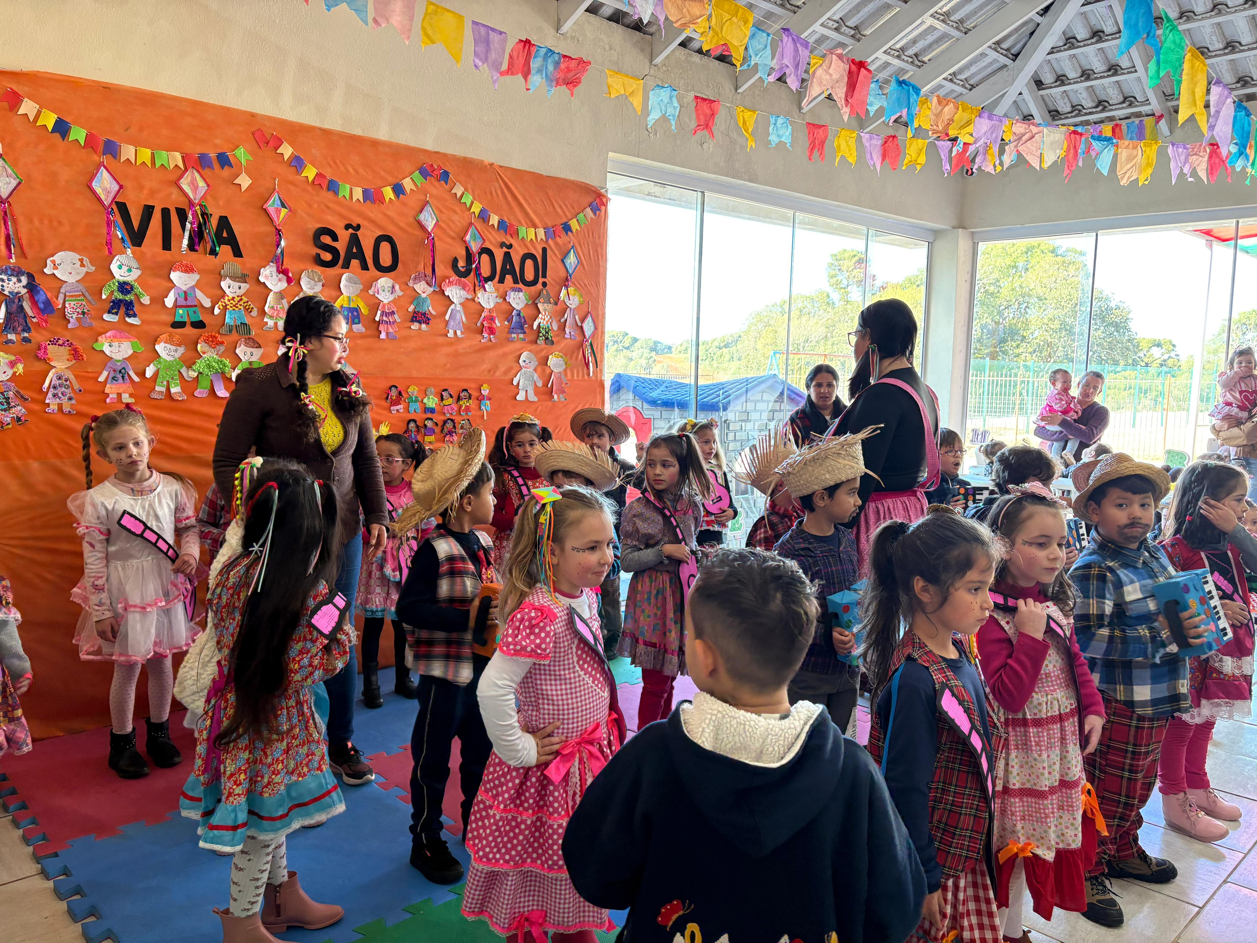 Os alunos realizaram apresentações incríveis, mostrando seu talento e criatividade. Além disso, ao longo do dia, eles puderam saborear deliciosas comidas típicas de festa junina, como pipoca, paçoca e um almoço típico que agradou a todos.