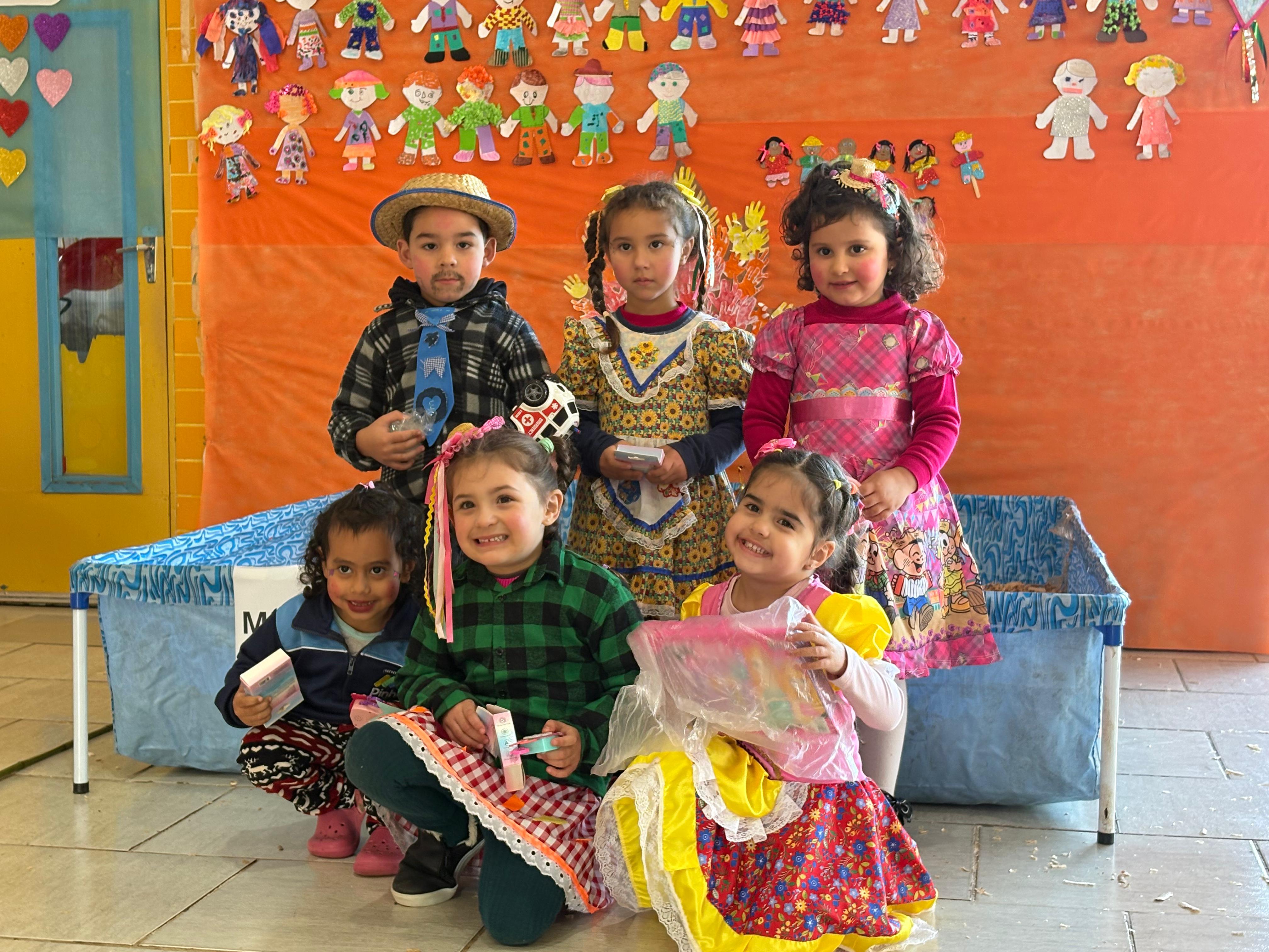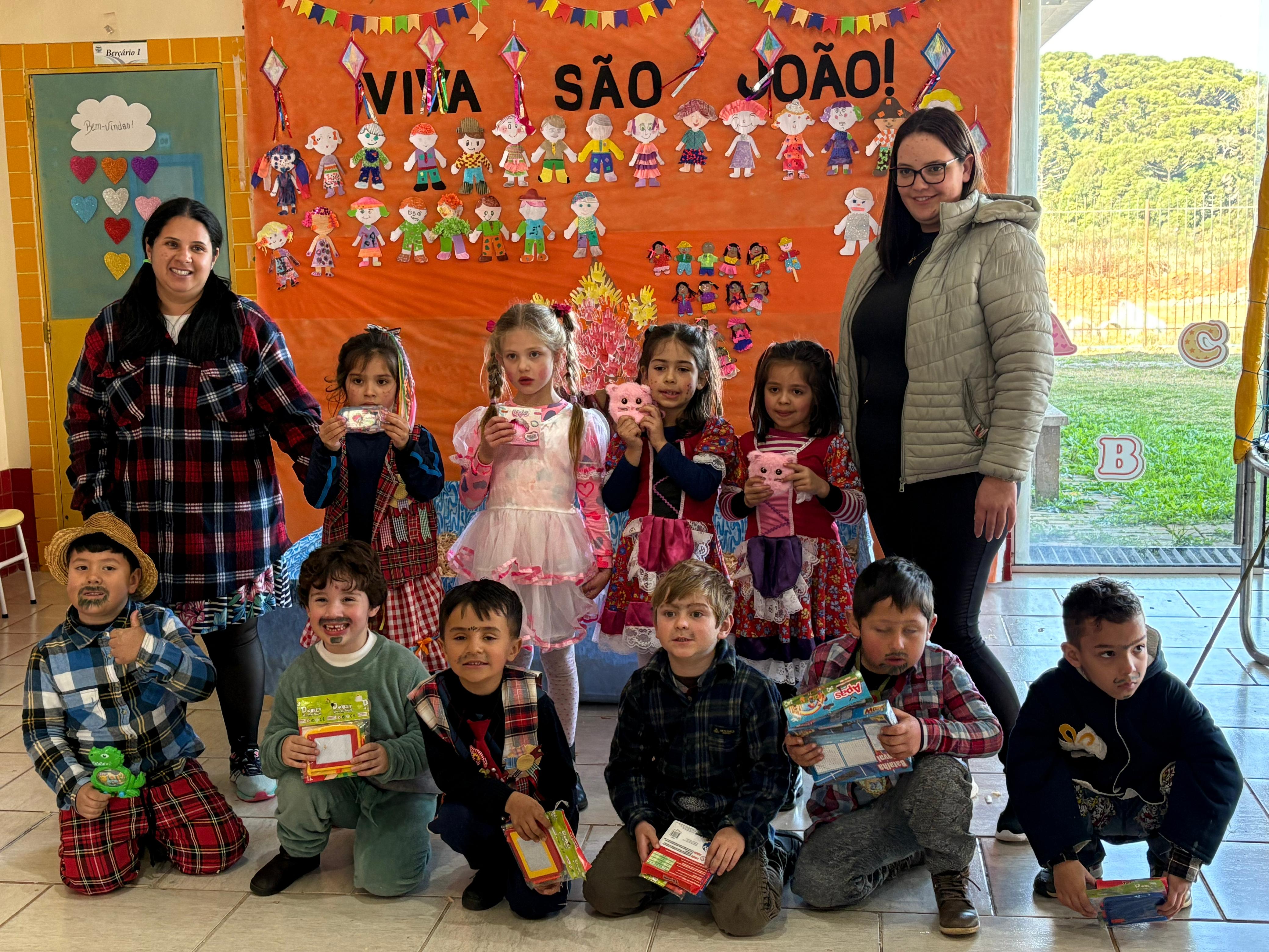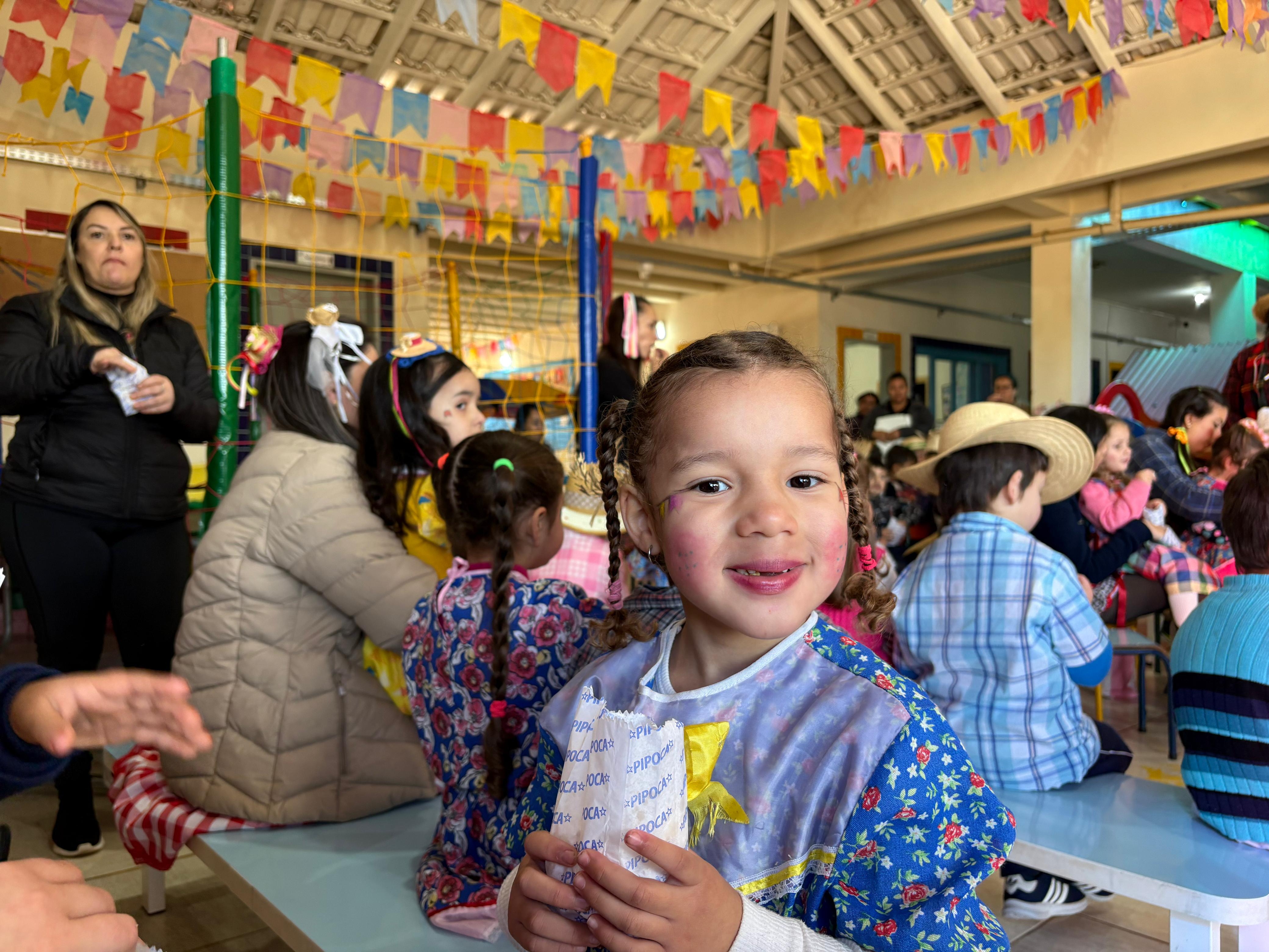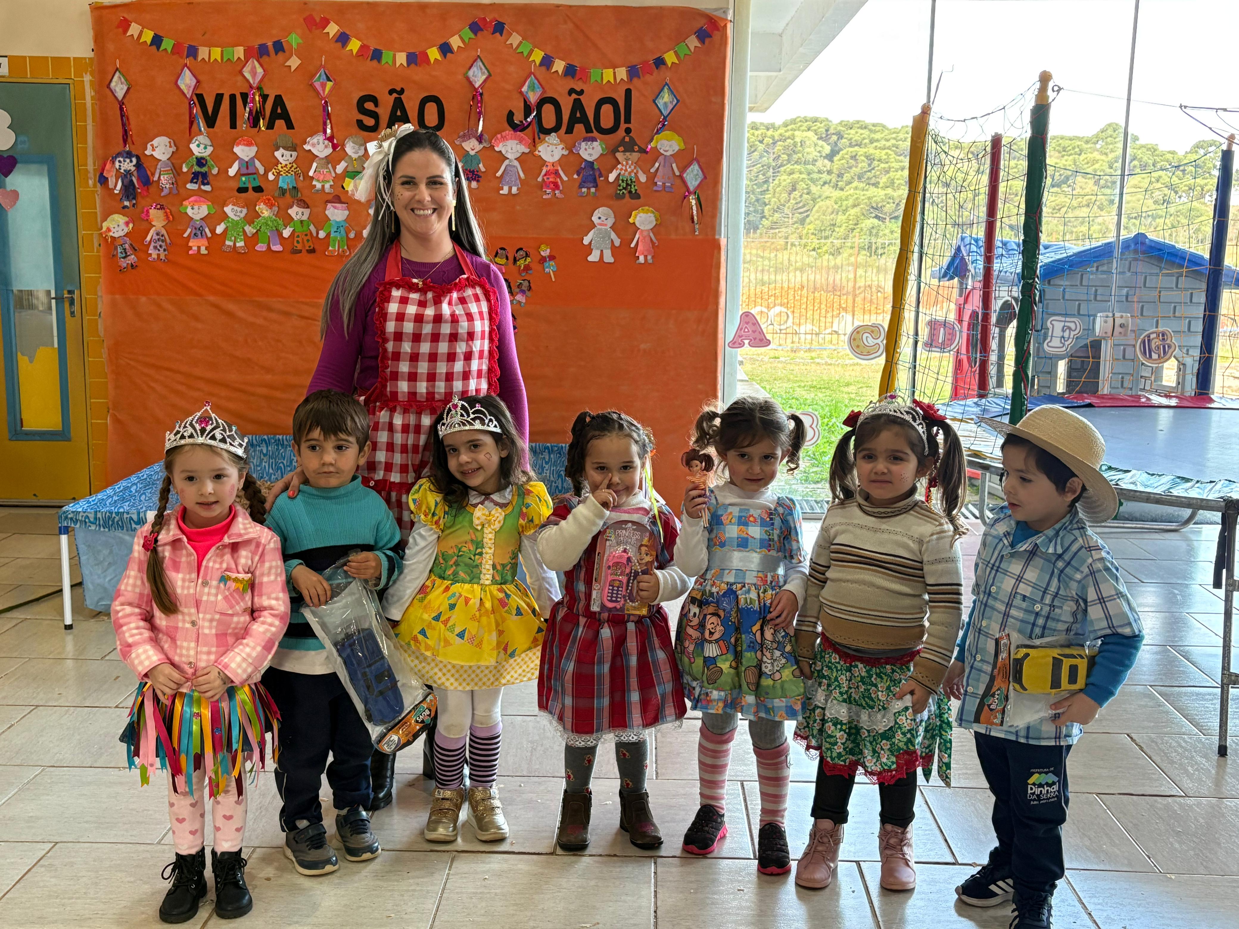 Os alunos realizaram apresentações incríveis, mostrando seu talento e criatividade. Além disso, ao longo do dia, eles puderam saborear deliciosas comidas típicas de festa junina, como pipoca, paçoca e um almoço típico que agradou a todos.