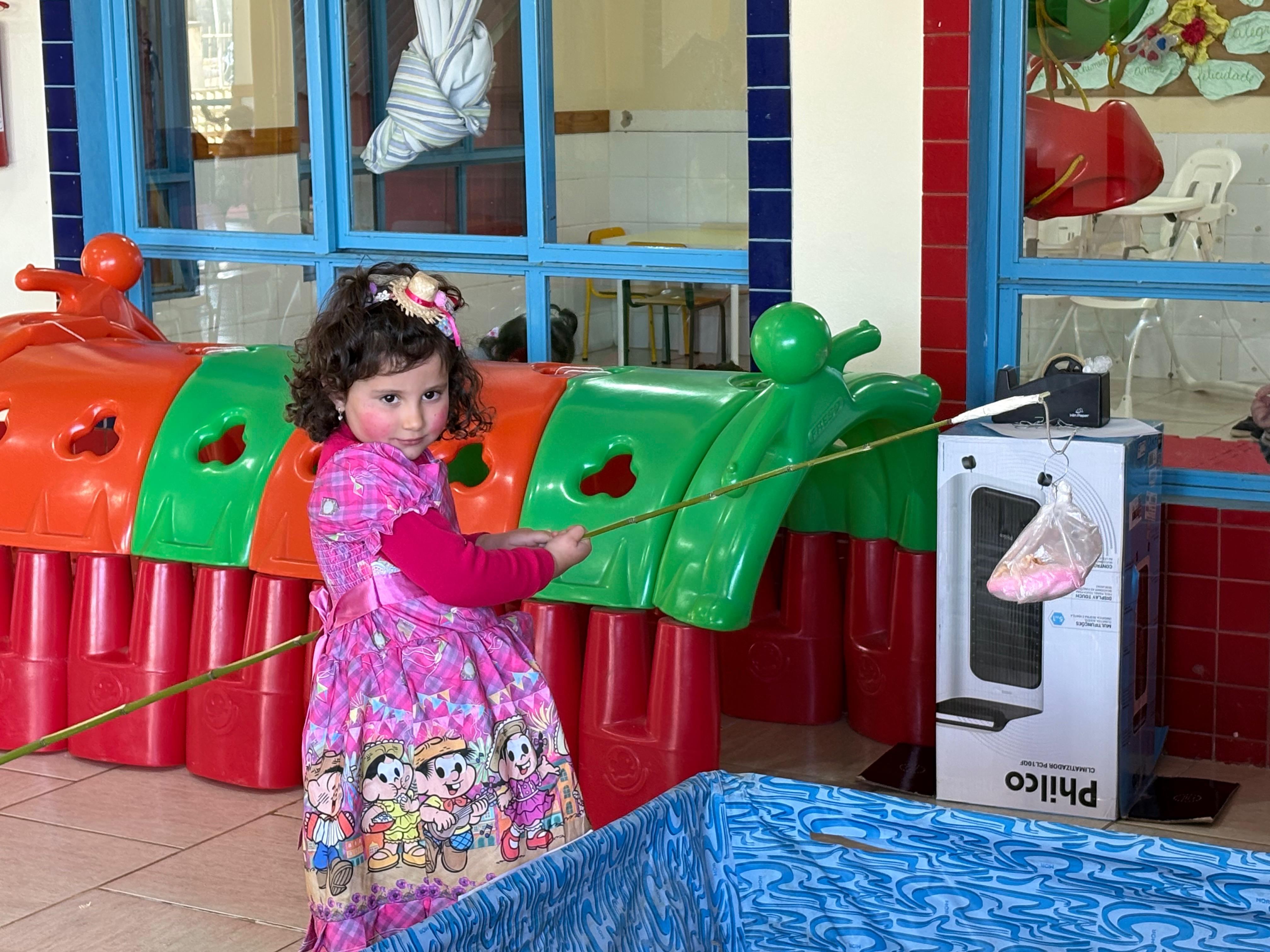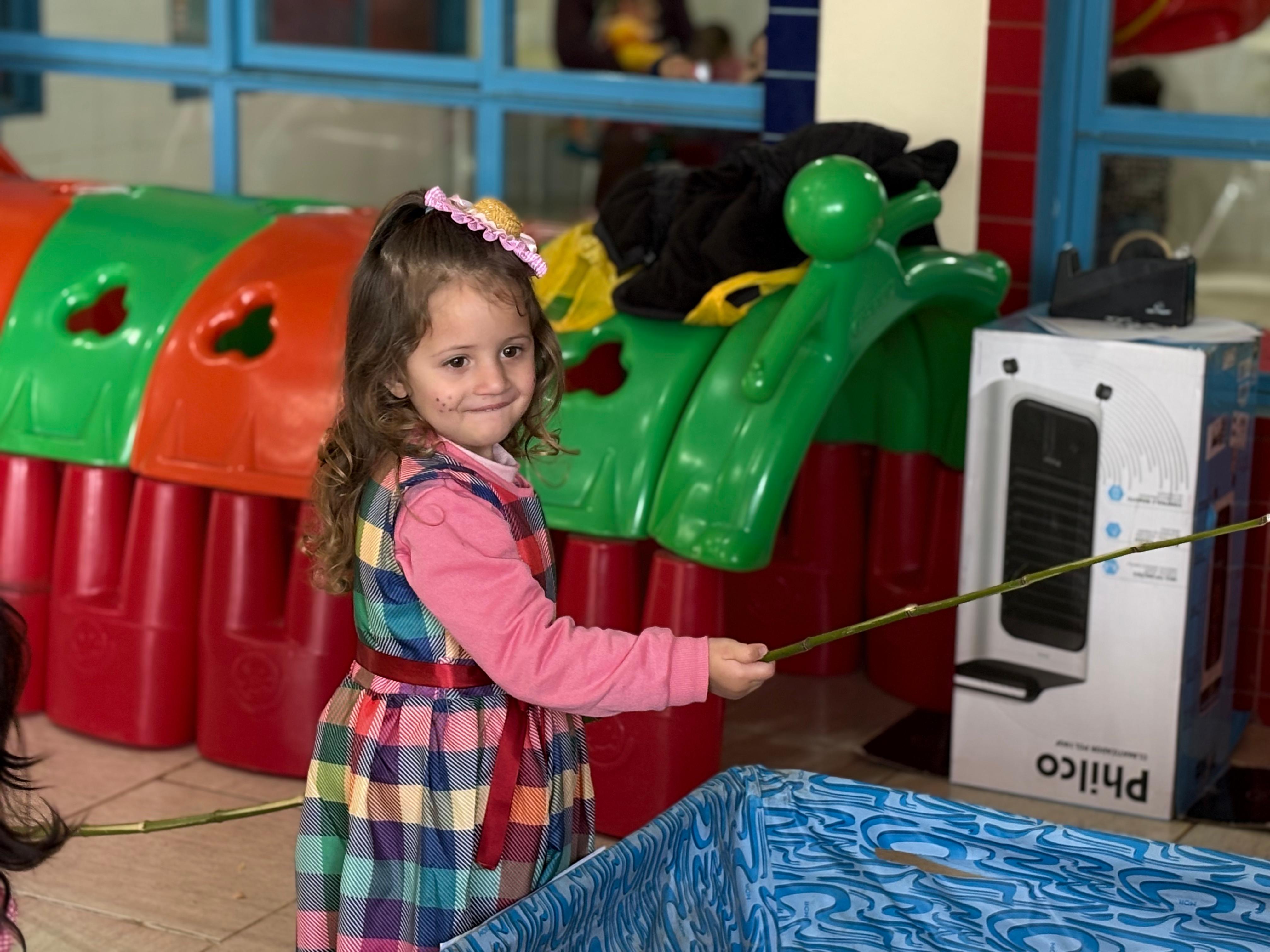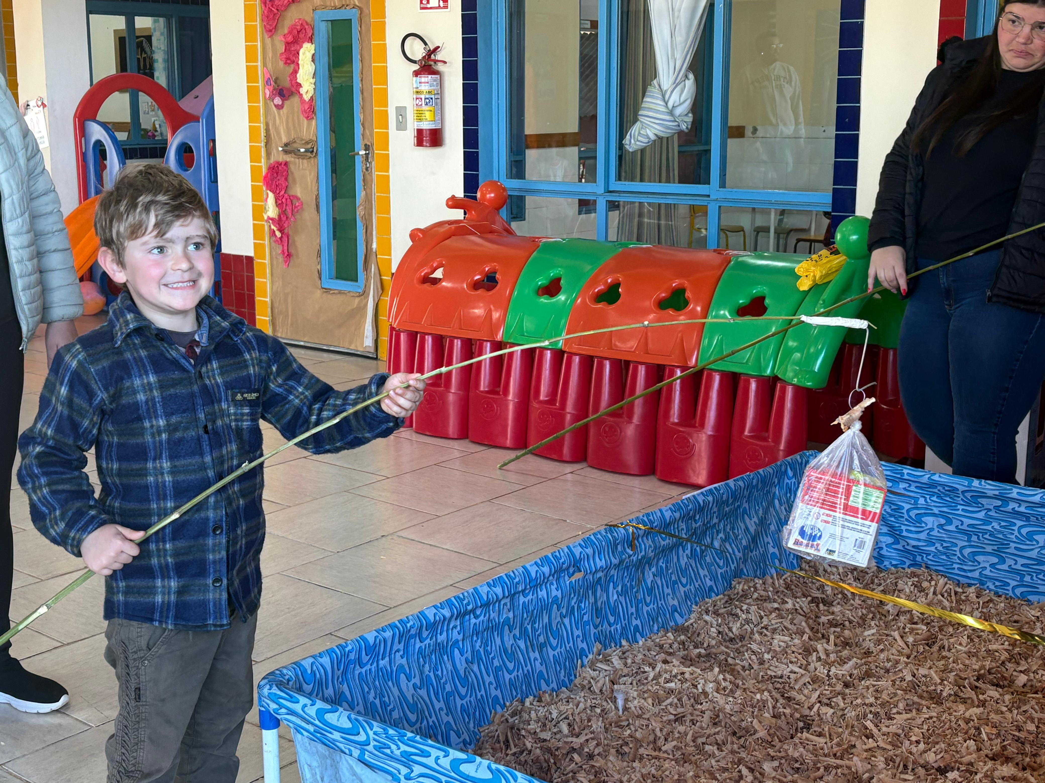 A festa chegou ao fim durante a tarde com as crianças se divertindo na pescaria, onde ganharam brindes e brinquedos. Foi um dia cheio de alegria, diversão e aprendizado para todos os envolvidos.