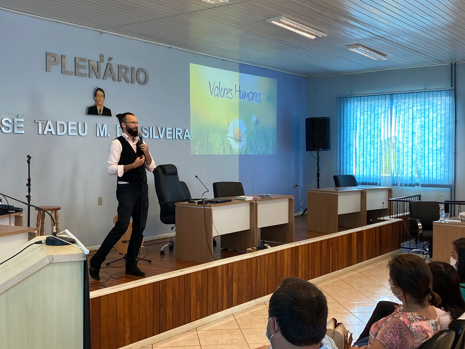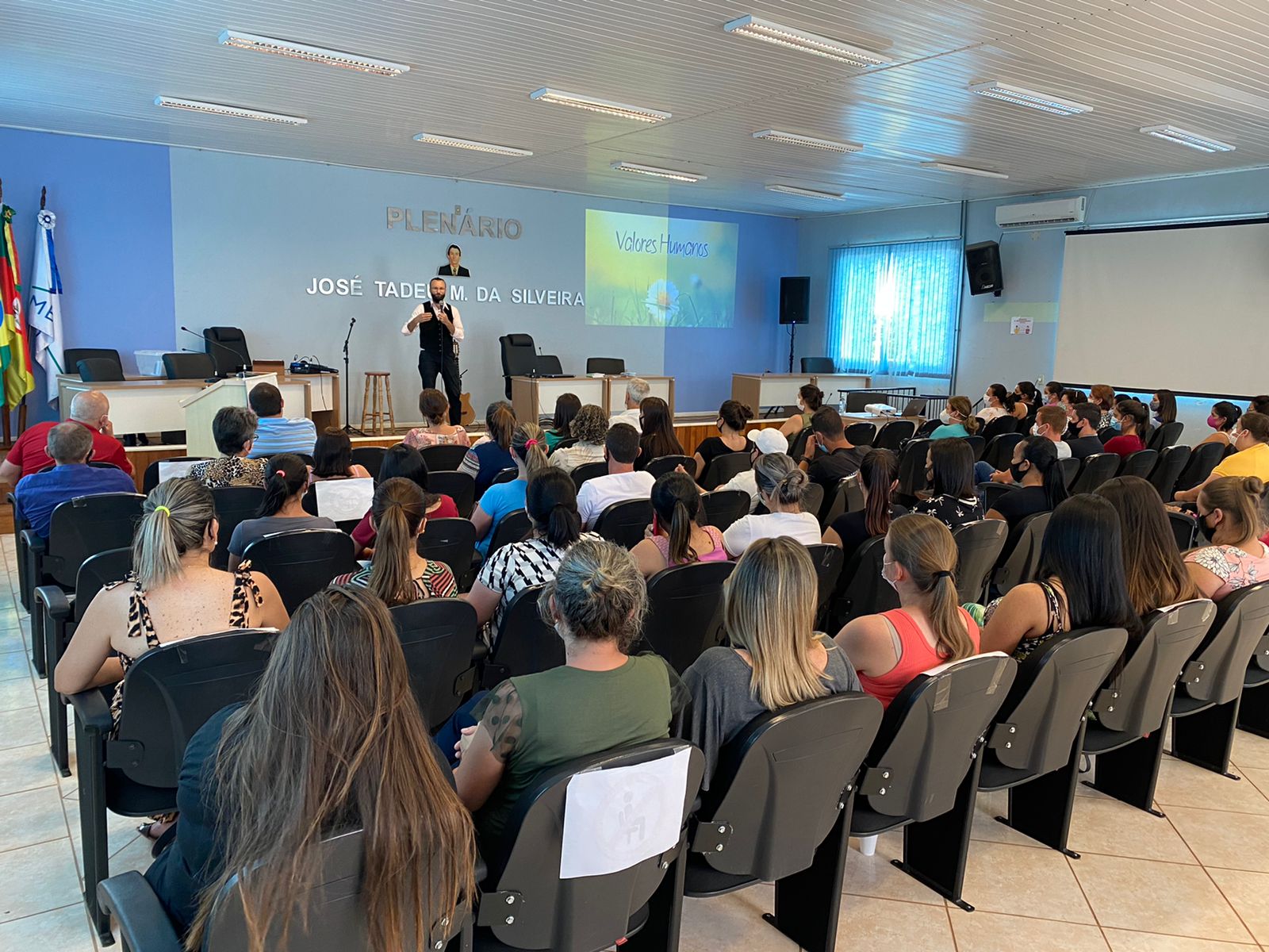Na oportunidade o senhor Osmar Kuhn falou sobre a Implementação e Sensibilização do Programa de Integração Tributária – PIT, Educação Fiscal e Cidadania e destacou as ações do Programa Nota Fiscal Gaúcha, em desenvolvimento nas escolas do município desde o ano de 2019. Na sequência o historiador, mestre e doutorando em educação Rudson Rossato palestrou sobre Gênero, Sexualidade e Educação. A última atividade do dia foi a palestra show Valores Humanos com o sociólogo, mestre e doutorando em teologia, cantor, compositor e escritor Giovanni Mattiello.