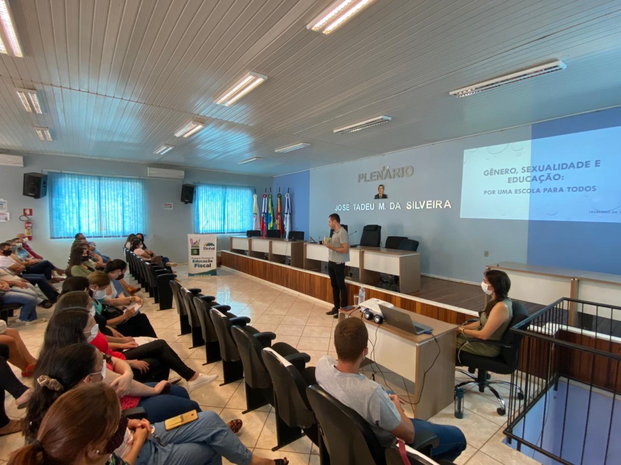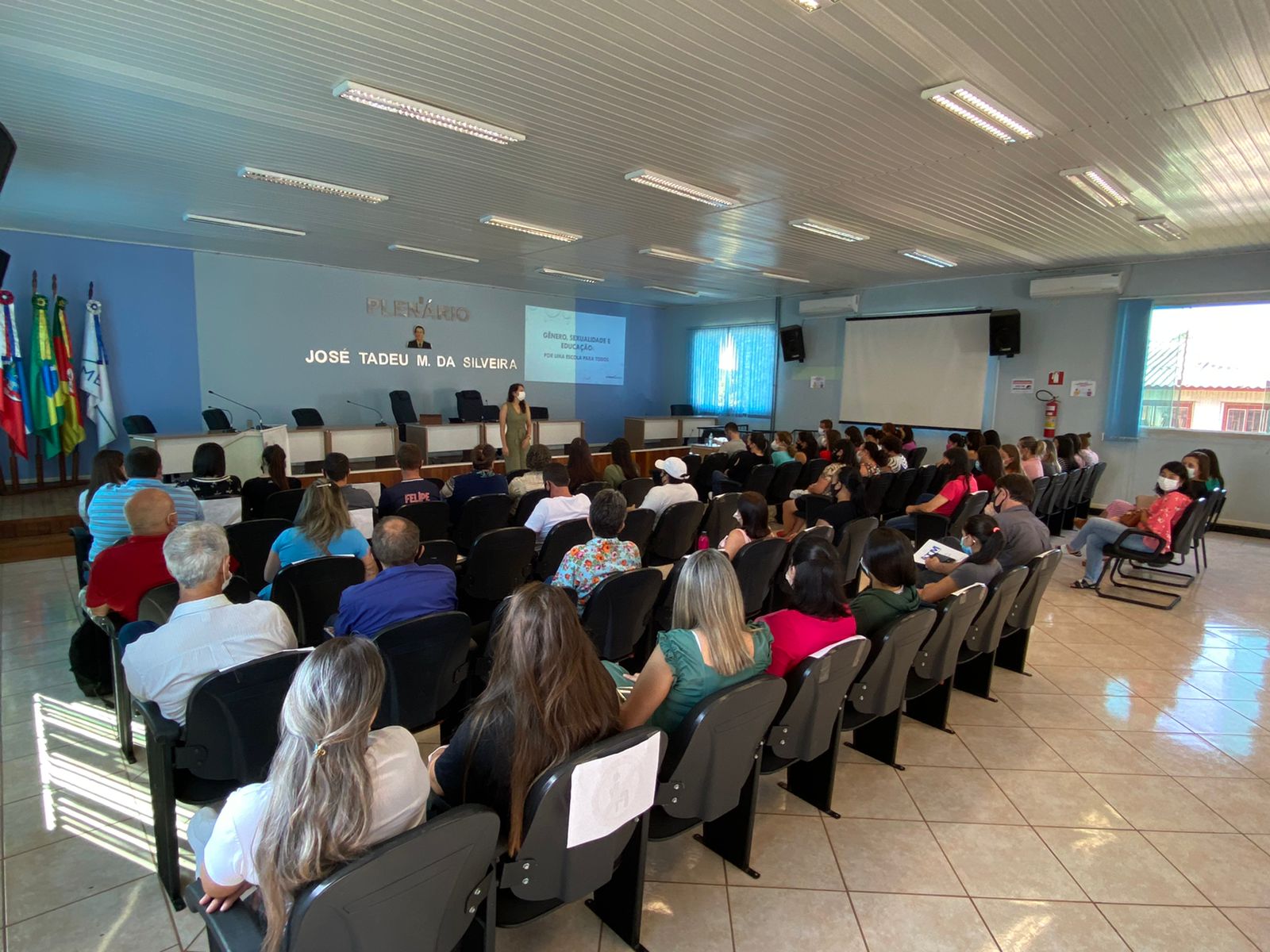 As palestras realizadas na Câmara Municipal de Vereadores ao longo do dia tiveram a participação dos professores e funcionários das escolas EMEI Tia Braia, EMEF Princesa Isabel, EMEB Professor Tadeu Silveira, EEEF Paulo VI, EEEF Sebastião Antunes de Almeida e EEEM São Paulo de Tarso.