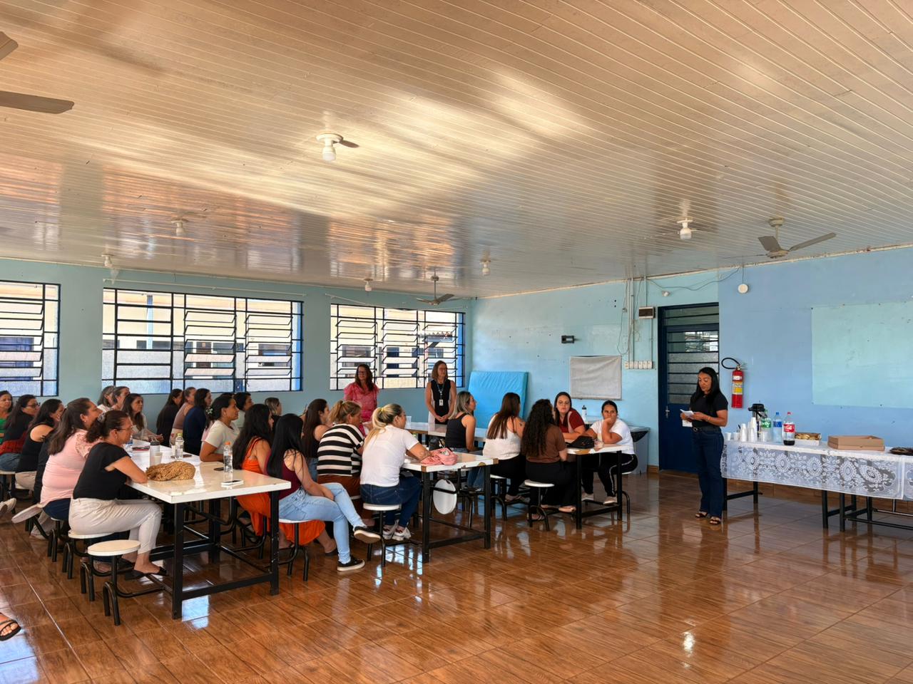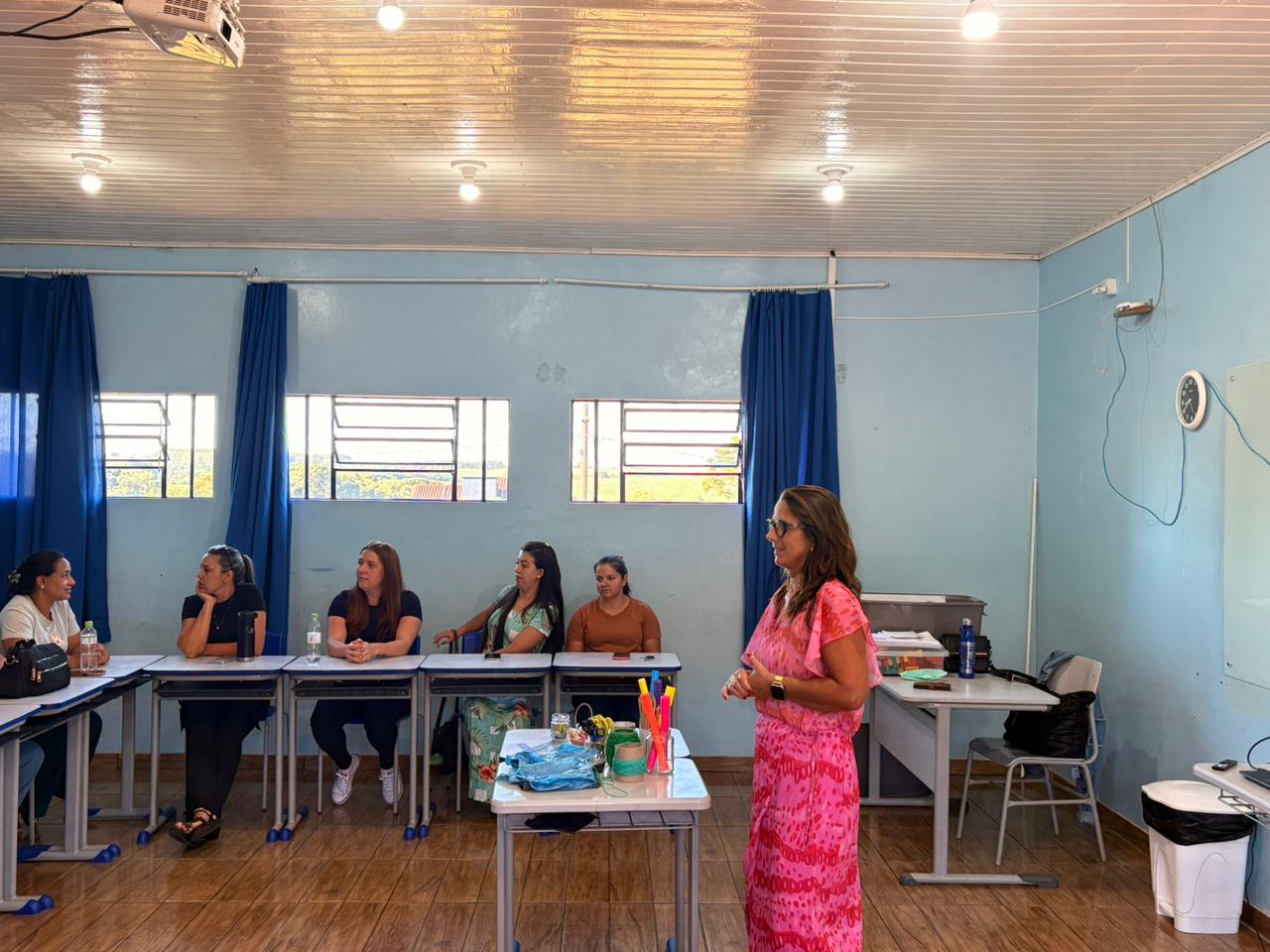 Durante o encontro, professores dos Anos Iniciais e dos Anos Finais participaram da formação com o tema “Competências para a Docência: necessidades e possibilidades para o atual contexto”, que abordou os conhecimentos, habilidades e atitudes essenciais para uma prática pedagógica positiva, interativa e alinhada às demandas atuais.