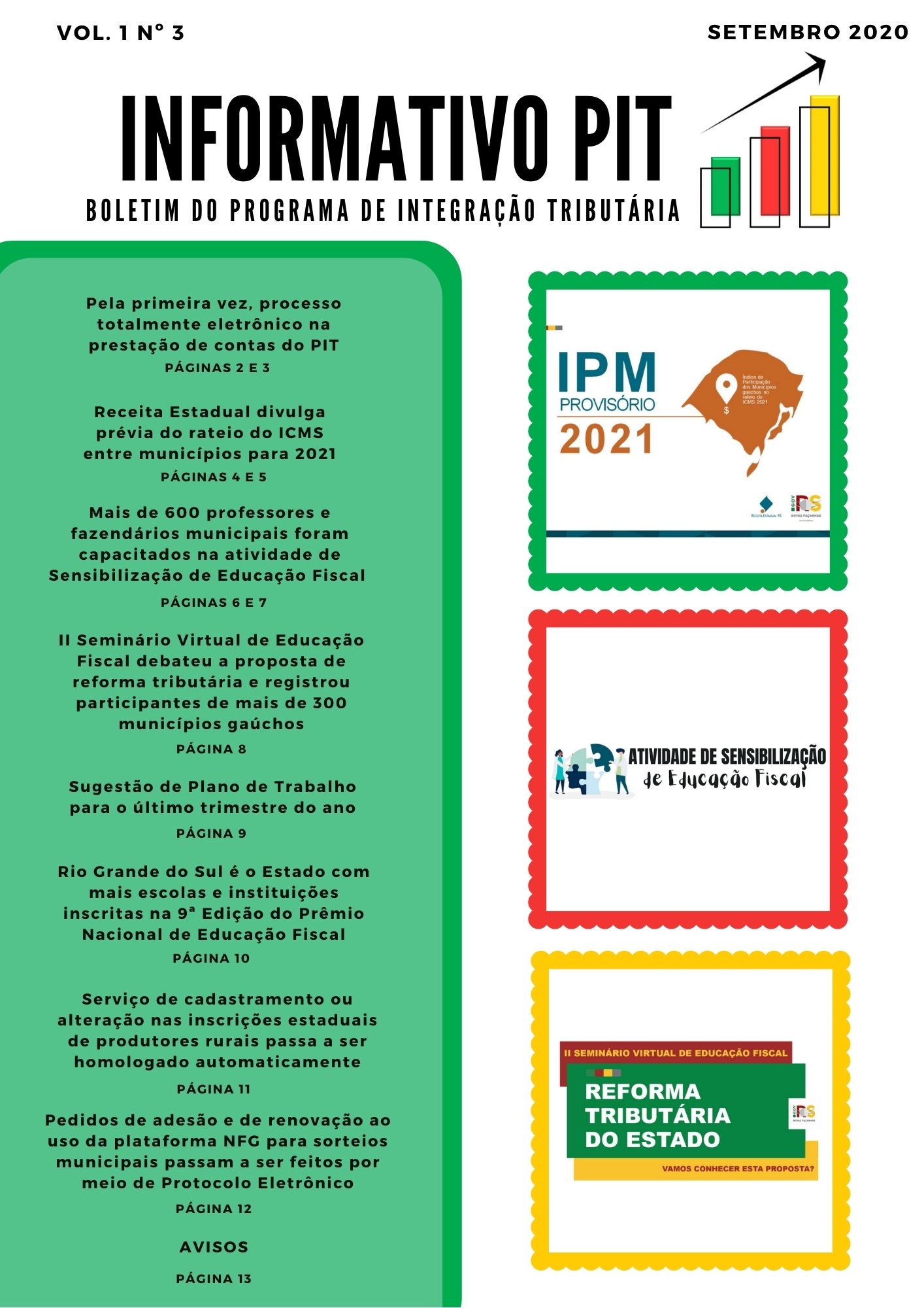 A Secretaria Estadual da Fazenda divulgou o Informativo PIT – nº 3 do mês de setembro de 2020, com o objetivo de tornar públicos programas e atividades que os municípios podem participar, através de ações administrativas internas e externas envolvendo a comunidade.