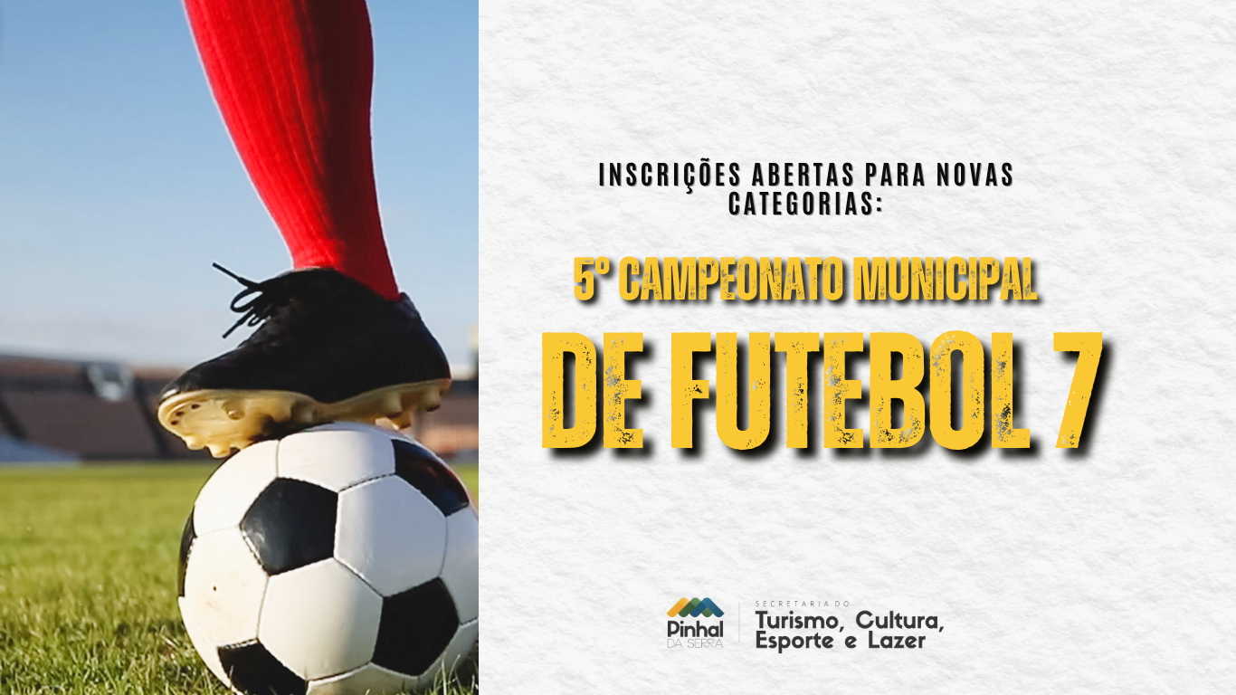 A Secretaria de Turismo, Cultura, Esporte e Lazer informa que o Campeonato Municipal de Futebol 7 contará com a abertura de duas novas categorias: