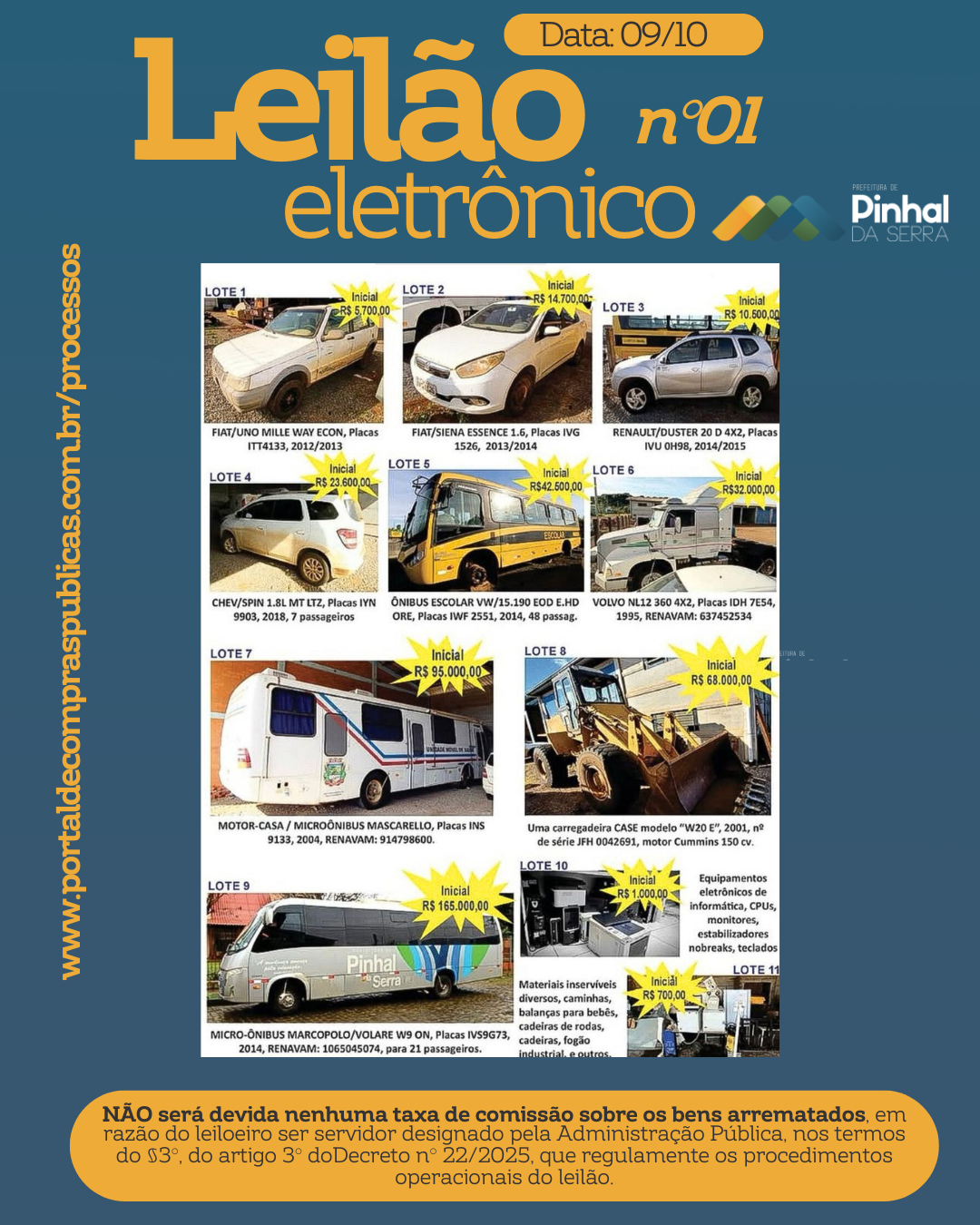 O leilão será realizado através do site do Portal de Compras Públicas.
