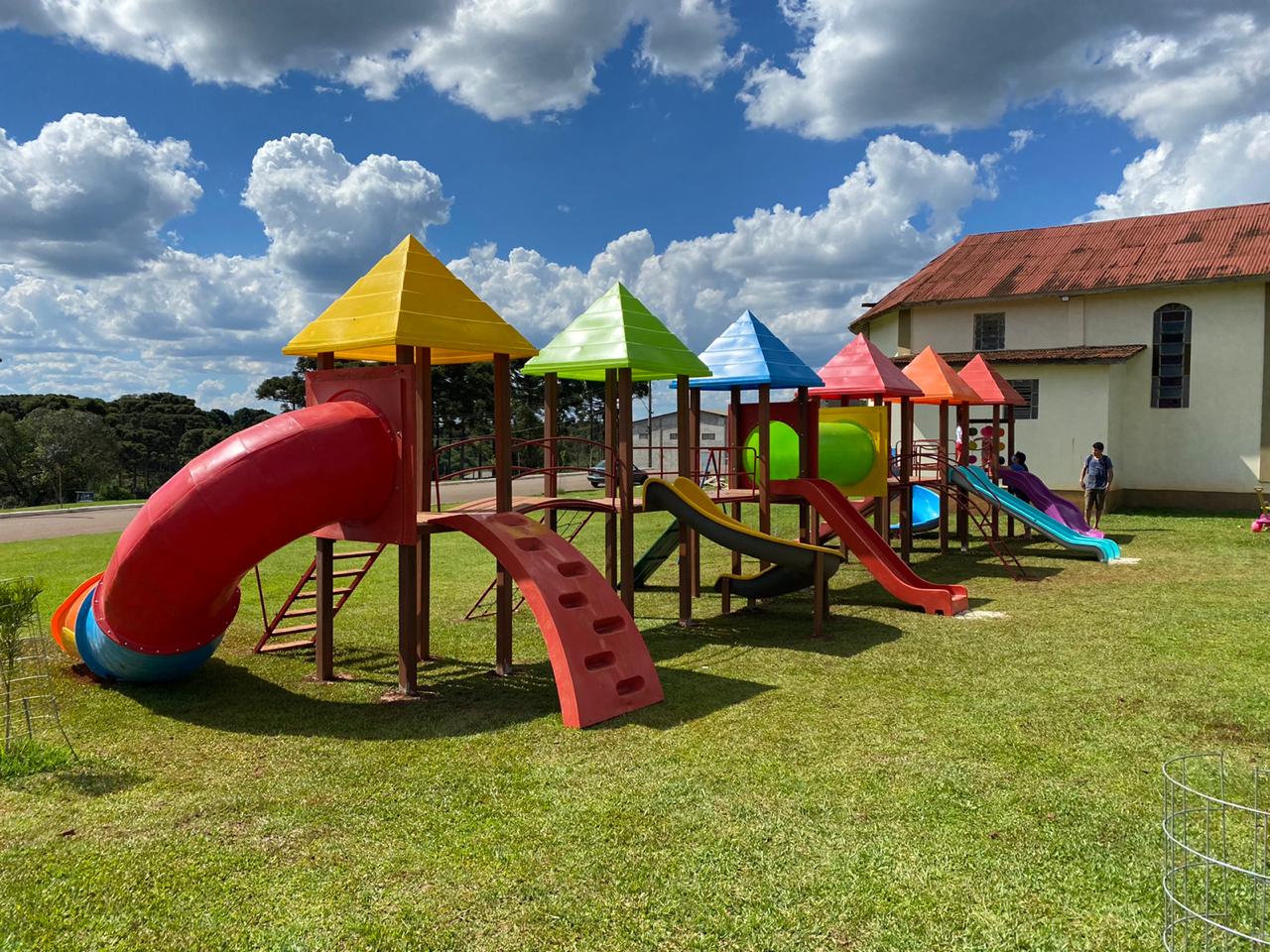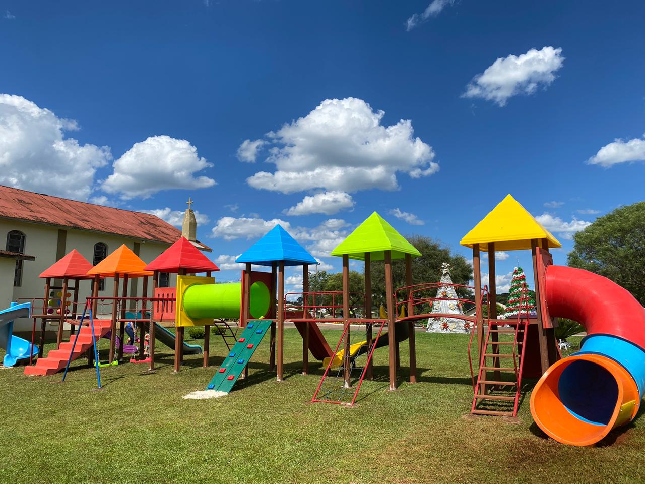 O novo parque infantil conta com diversos brinquedos, como; tobogãs, escorregadores, balanços, parede de escalada, tubo horizontal, jogos interativos e muito mais. A estrutura é toda em madeira plástica, o que garante maior durabilidade, segurança e proteção as crianças.