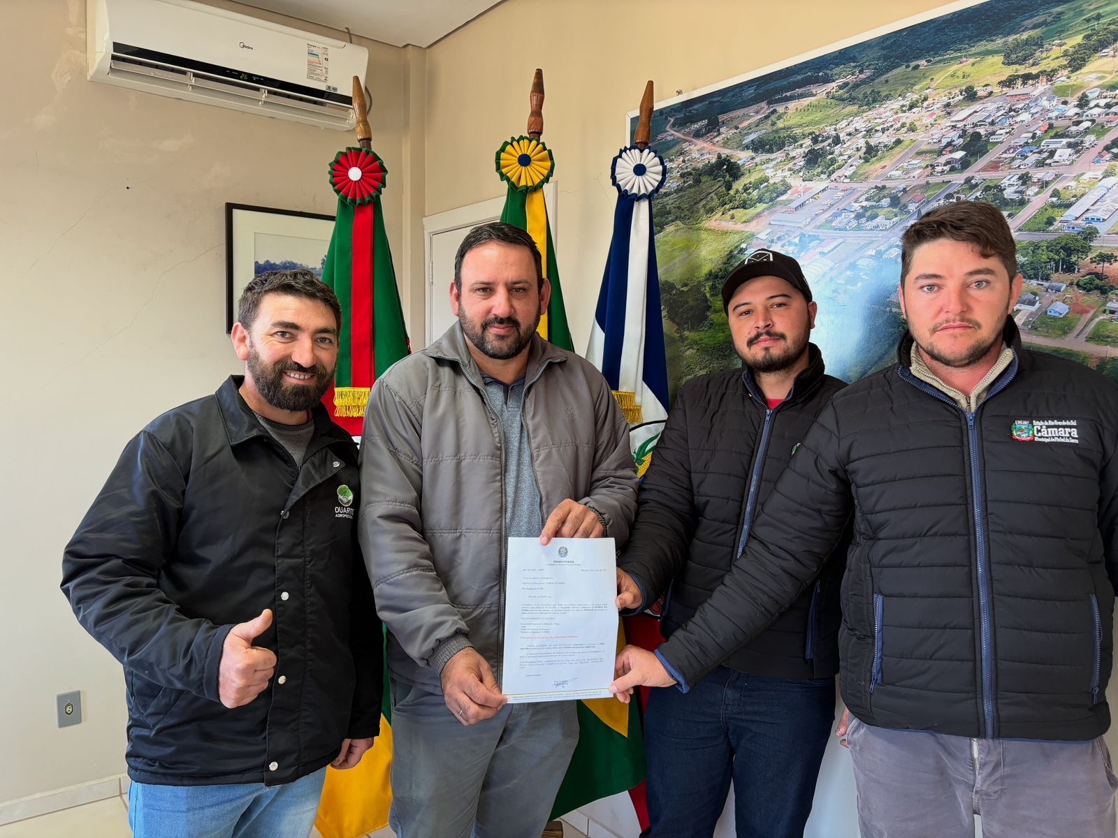 Na manhã desta quarta-feira, o Prefeito Municipal recebeu em seu gabinete o Vereador Lucas Anastácio (PT), o Vereador Marciano Longhi (PT) e o Presidente do Partido dos Trabalhadores, Fabiano Duarte, para a entrega da emenda. O município de Pinhal da Serra foi beneficiado com uma importante emenda parlamentar do Senador Paulo Paim (PT) no valor de R$ 250.000,00 (duzentos e cinquenta mil reais).