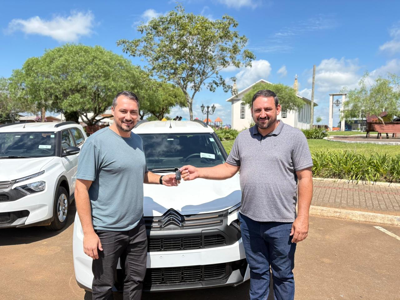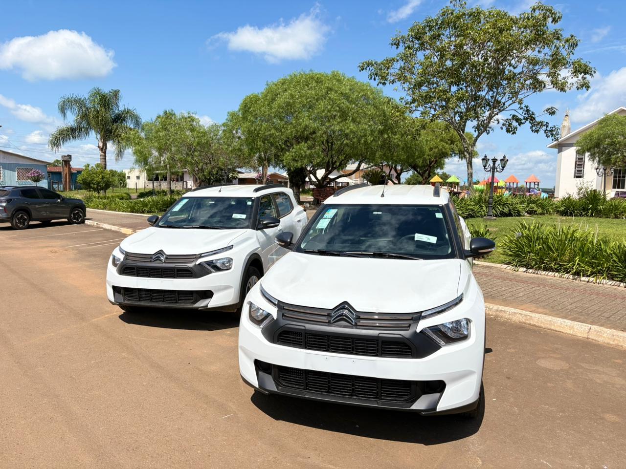 Na manhã de hoje, em frente à Praça Municipal, foram recebidos dois veículos 0 km, modelo Citroën C3 Aircross, com capacidade para sete lugares, adquiridos com recursos próprios do município.