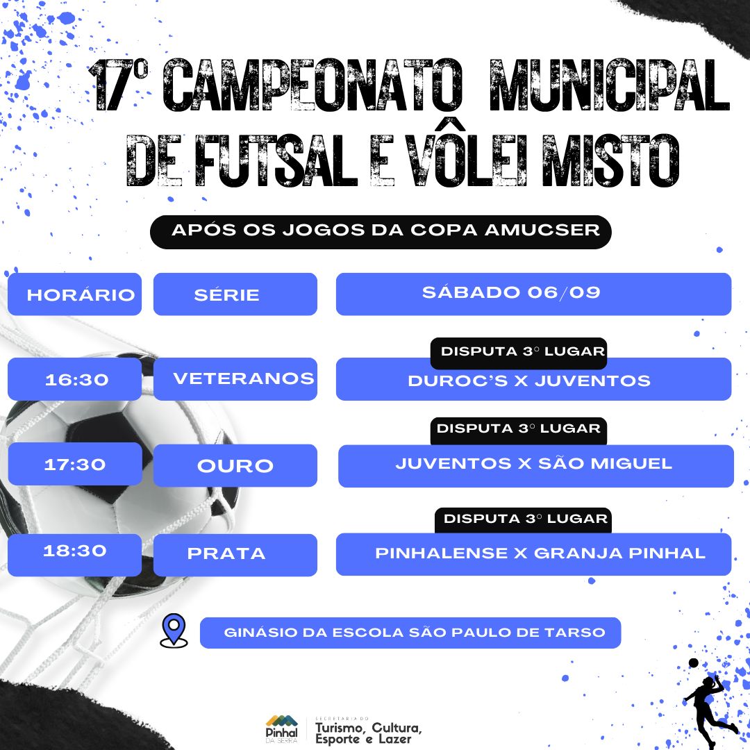 Neste sábado após os jogos da Copa AMUCSER confira a disputa para o terceiro lugar do 17º Campeonato Municipal de Futsal!