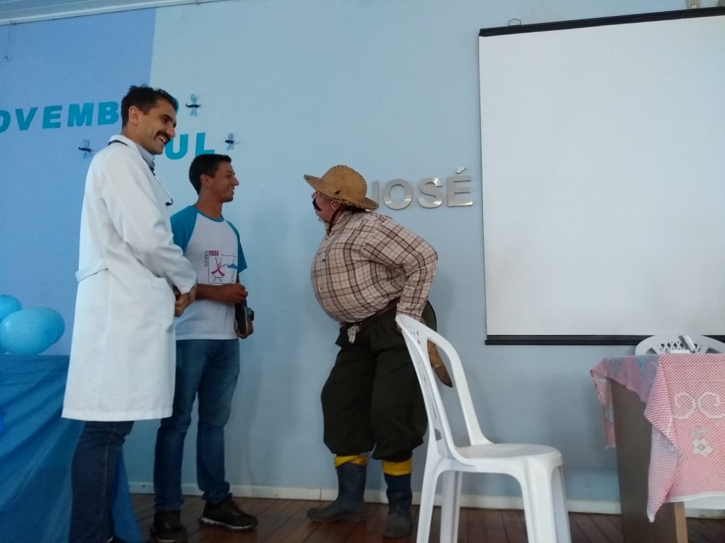 A partir das orientações passadas, alguns profissionais da Secretaria de Saúde prepararam um divertido teatro para descontrair e passar a mensagem da importância do homem cuidar de sua saúde.