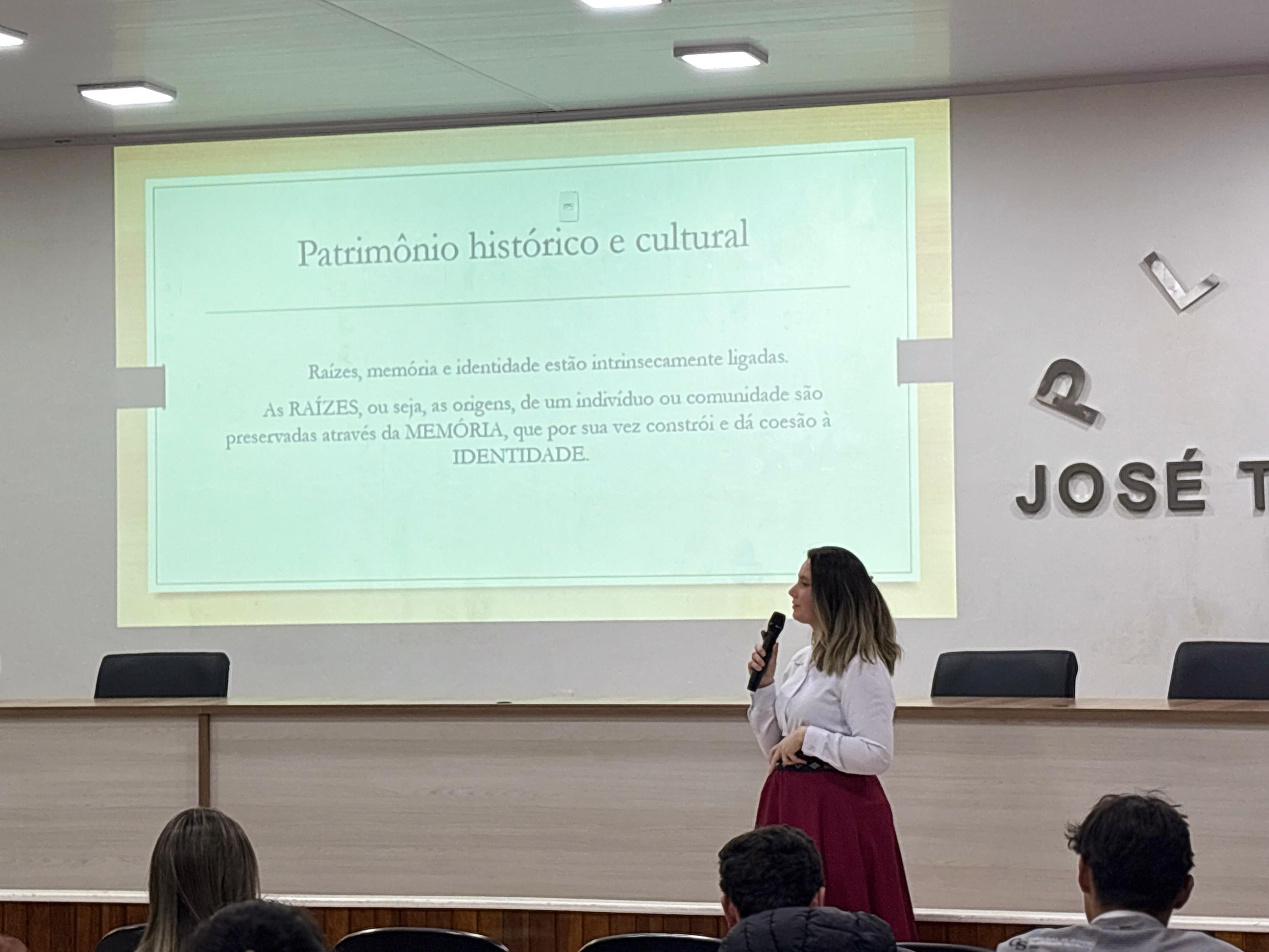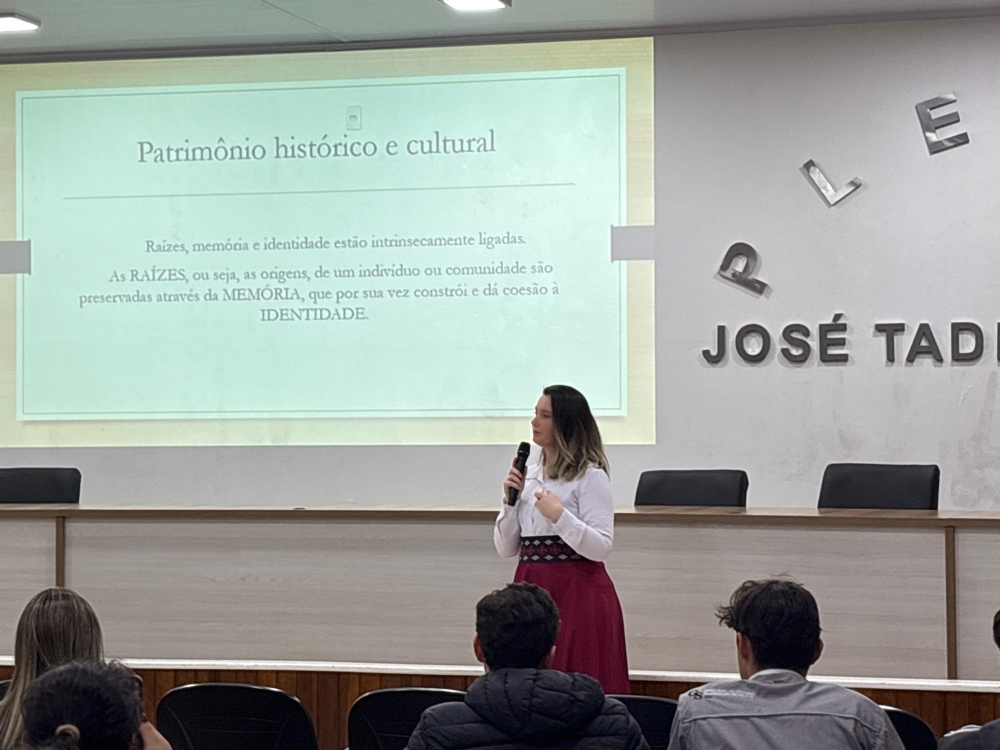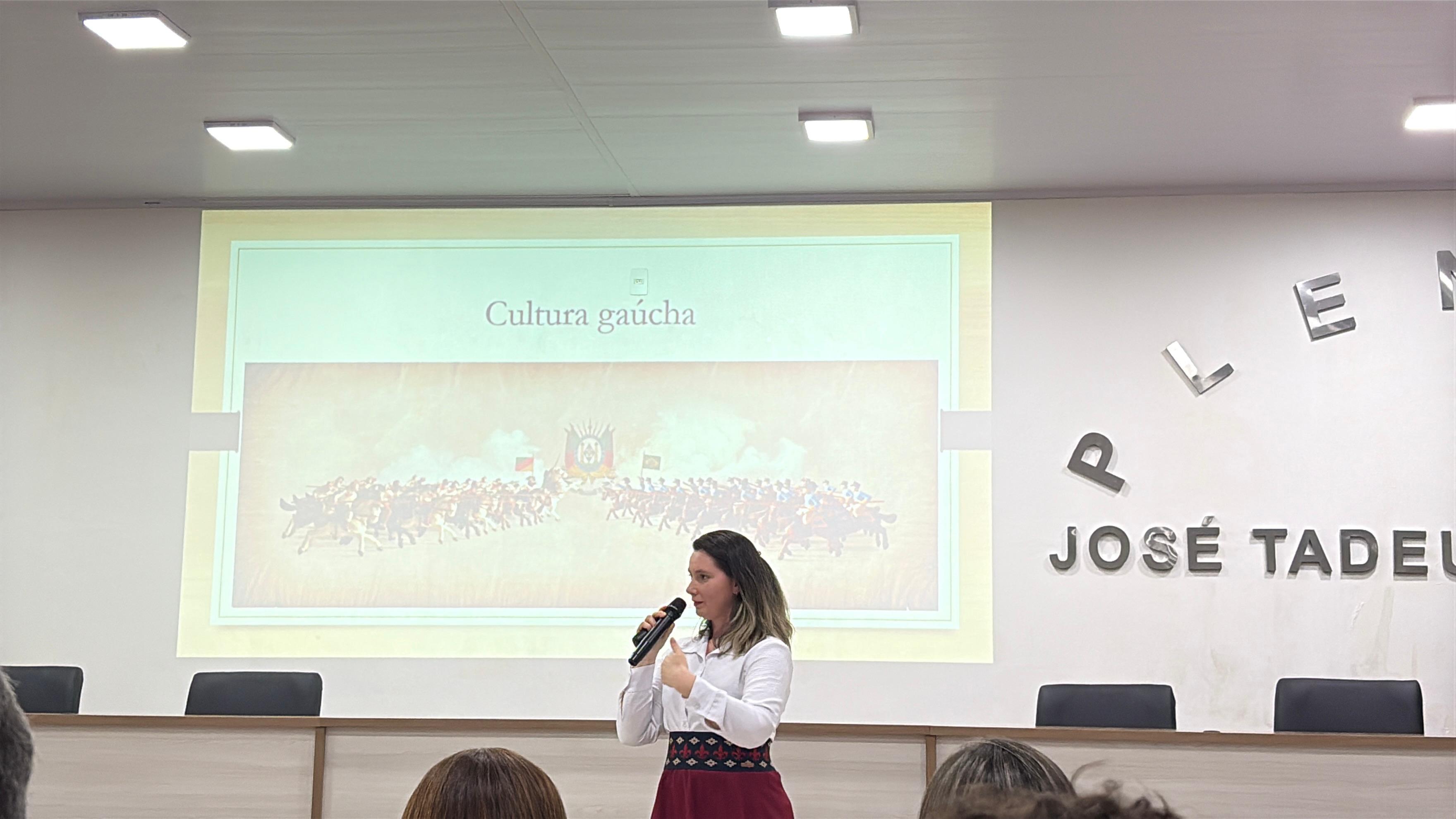 A palestra teve como tema a importância da cultura gaúcha e do patrimônio histórico e cultural do povo riograndense, exaltando a cultura e a tradição do Rio Grande do Sul. A professora Elisandra destacou como os costumes são passados de geração em geração, como o chimarrão, o churrasco, o tiro de laço e o baile gaúcho.