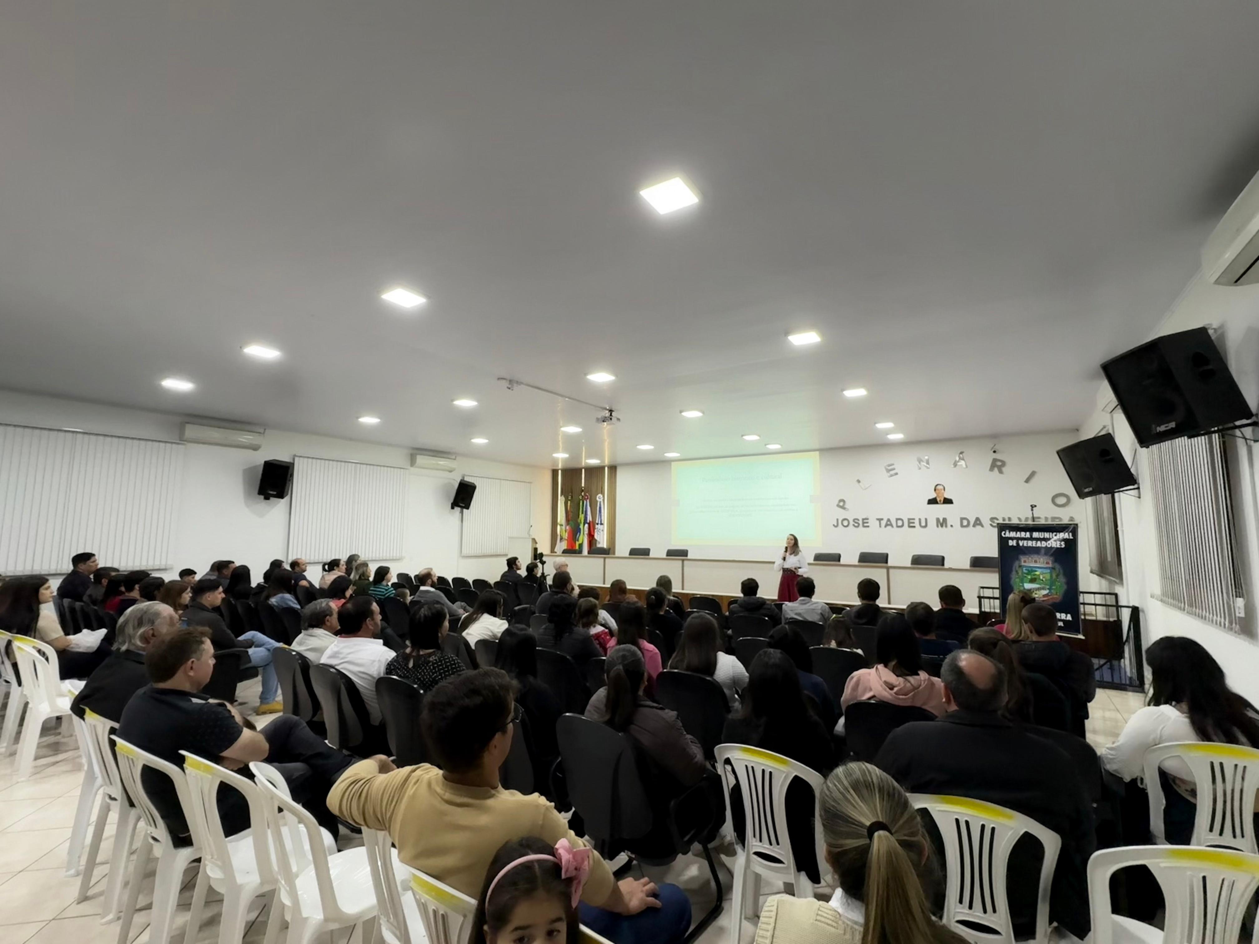 Na noite desta terça-feira, a Câmara de Vereadores de Pinhal da Serra foi palco para uma palestra ministrada pela professora Elisandra Carvalho Giordano. O evento contou com a presença de autoridades municipais, incluindo secretários, vereadores e o Prefeito Municipal, José Robison Rodrigues Duarte.